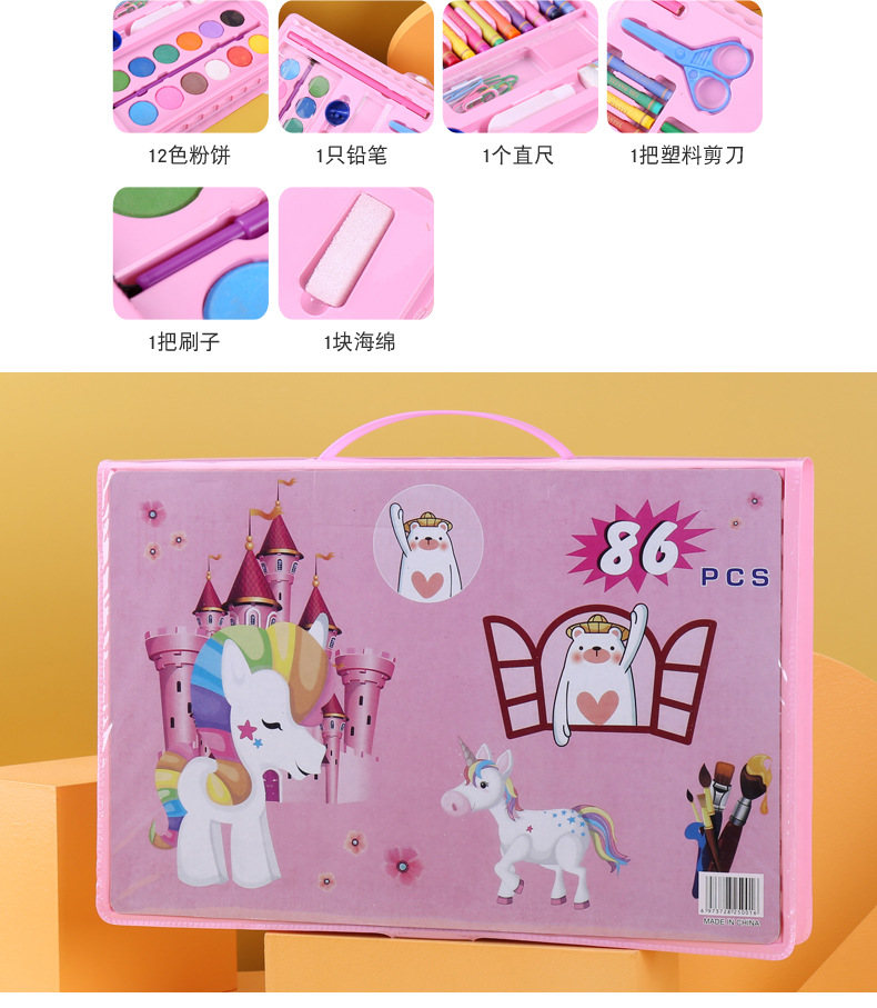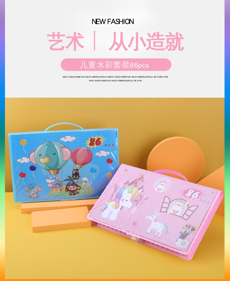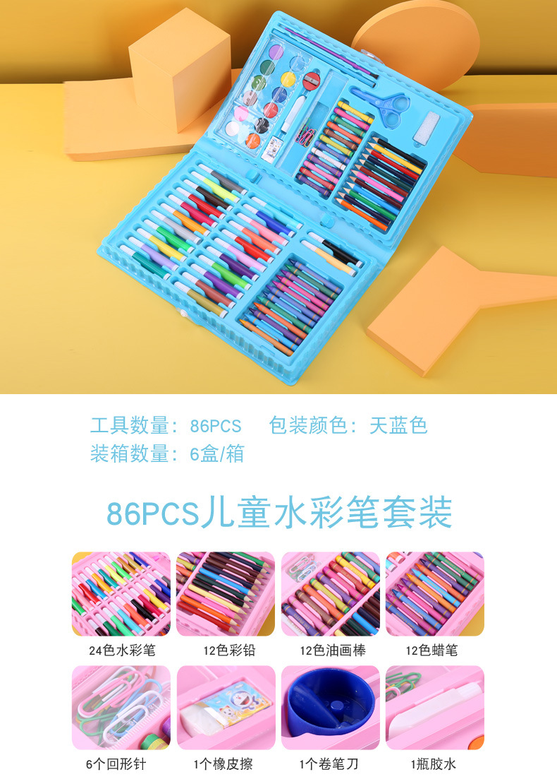 86 piezas traje de pintura para niños acuarela pluma crayón color pintura cepillo regalo portátil caja de color caja de regalo al por mayor
