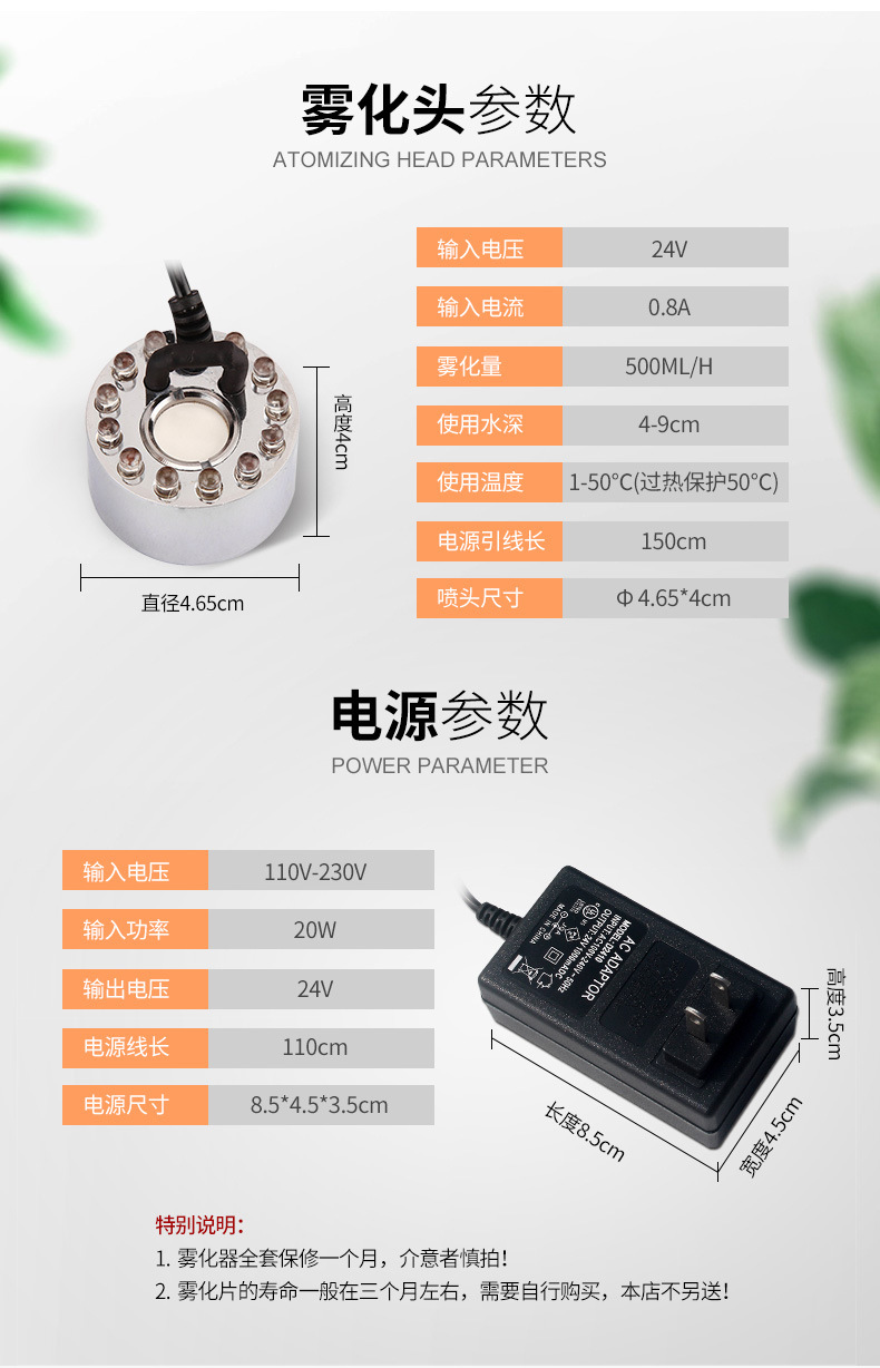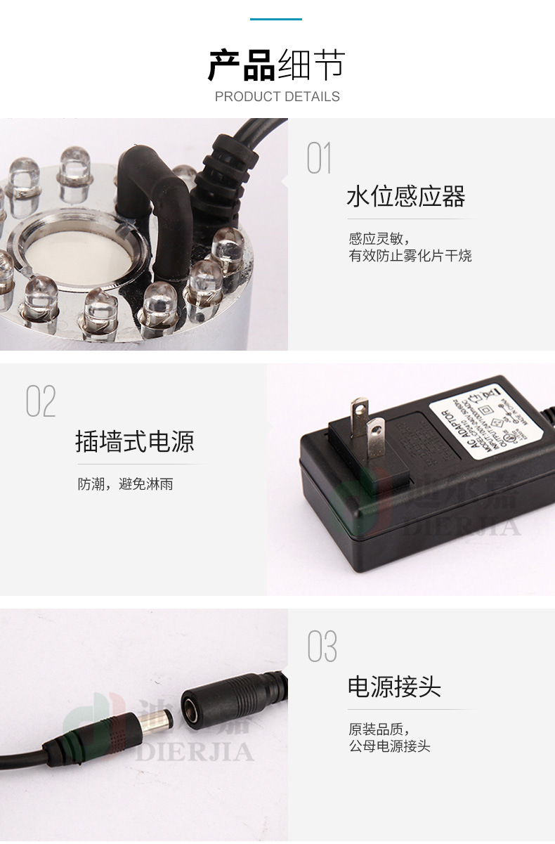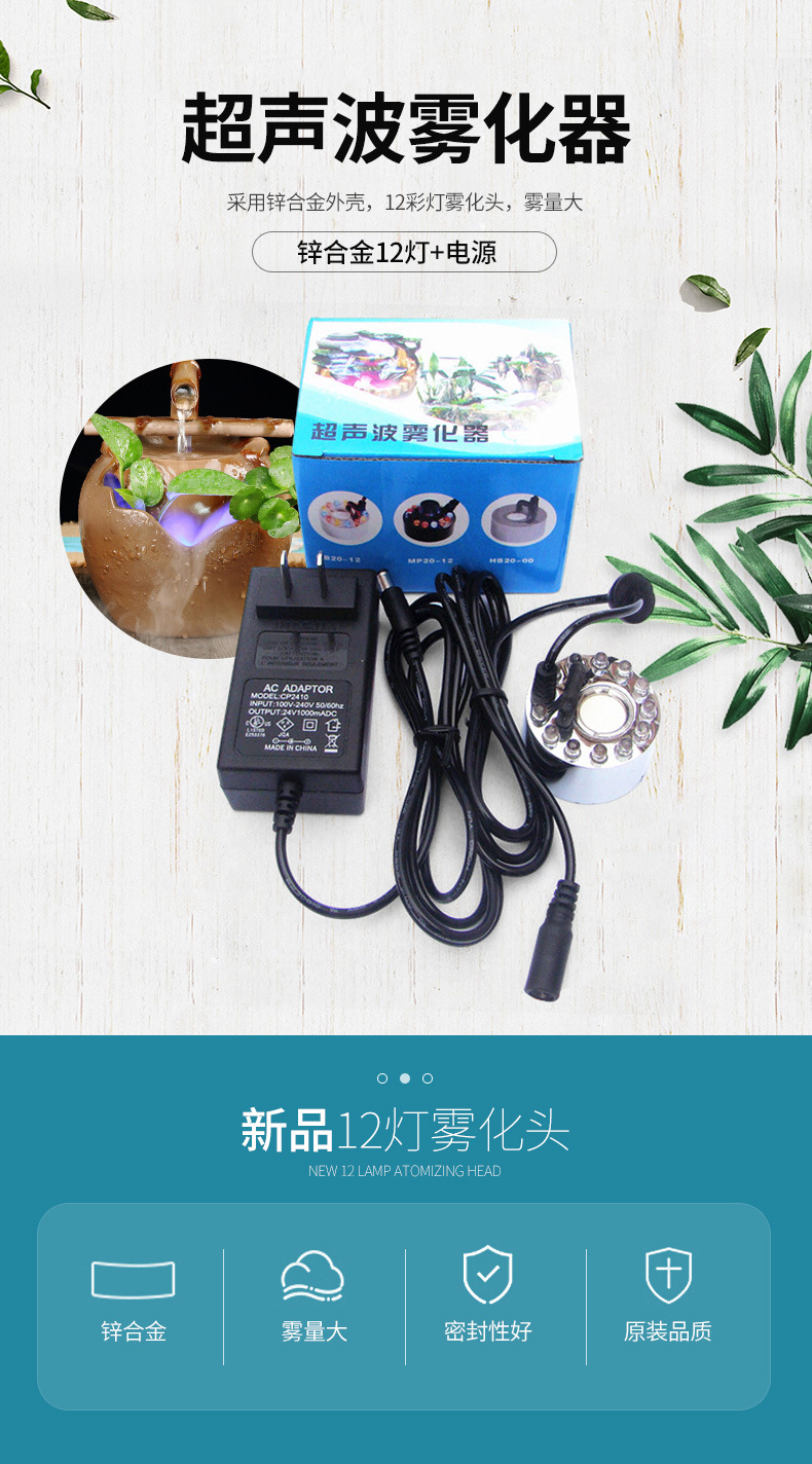 Cabeza de atomización gran volumen niebla atomizador humidificador aromaterapia oxígeno bar 20mm colorido 12 luces waterscape atomización bonsai Accesorios