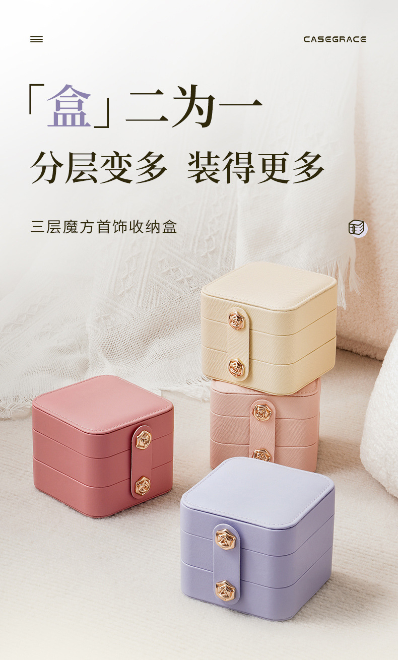 Suministro directo transfronterizo Caja de almacenamiento de joyería portátil de tres capas de Amazon Pendientes de gran capacidad Collar Anillo Caja de joyería para niños