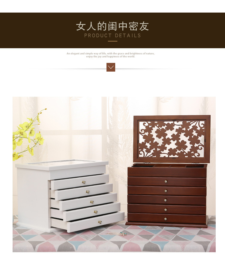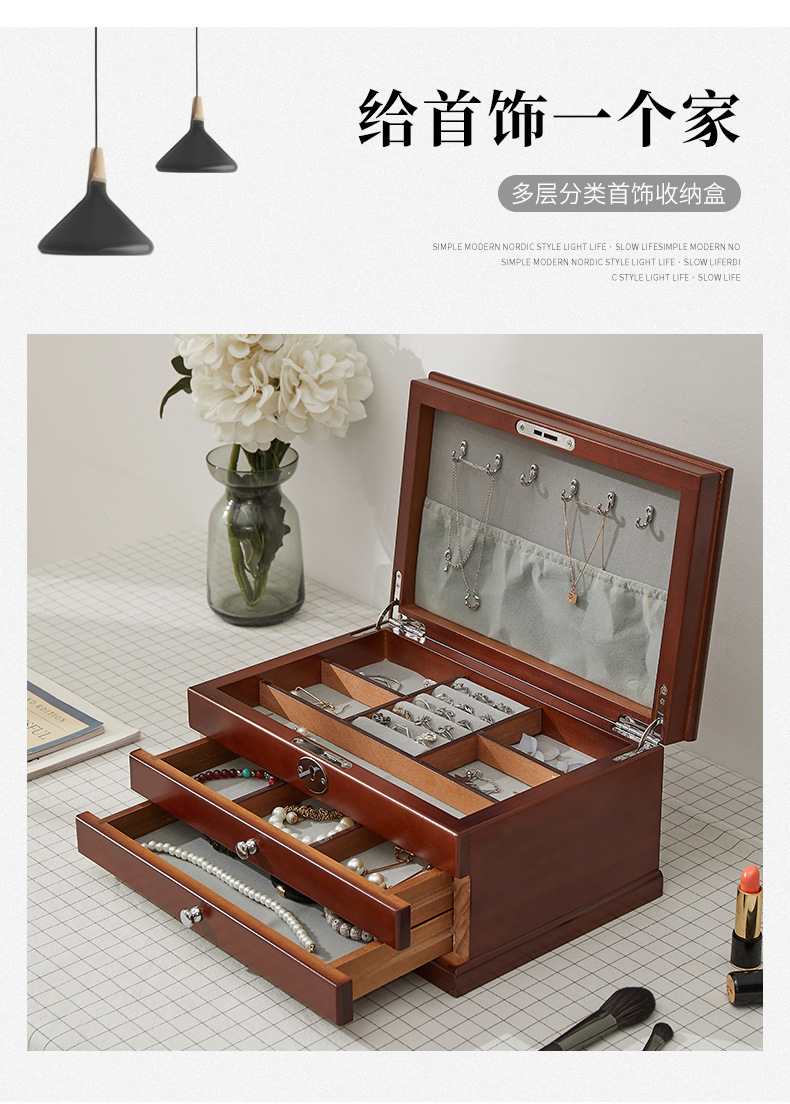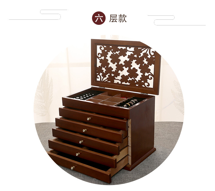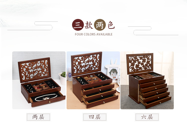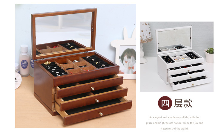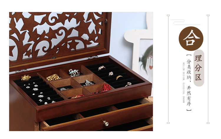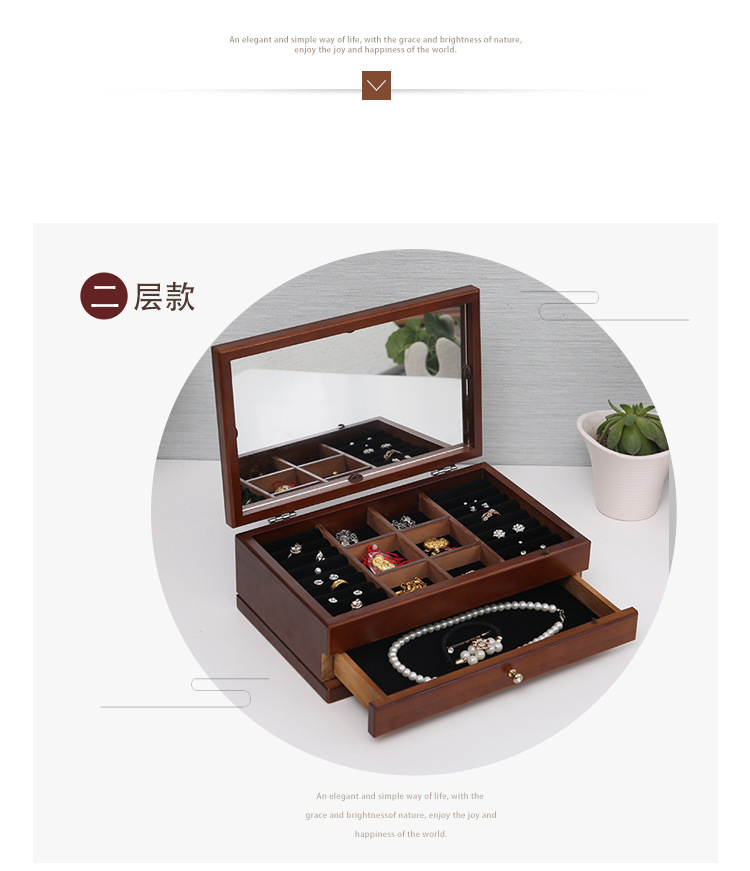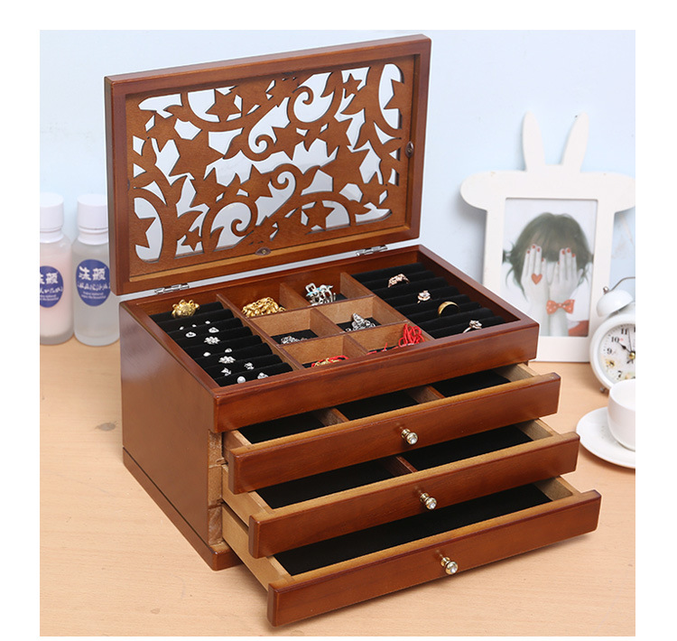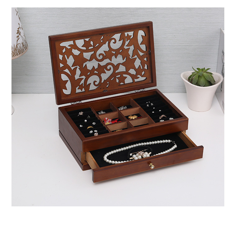 Fábrica transfronteriza caja de joyería de madera pendientes collar caja de almacenamiento caja de joyería de madera maciza vintage caja de anillo de joyería