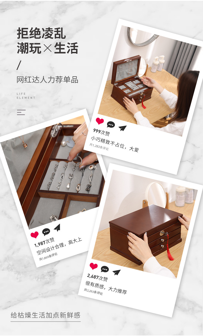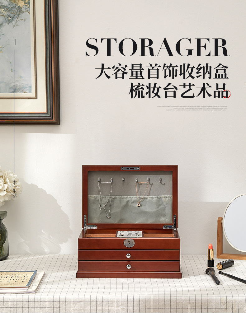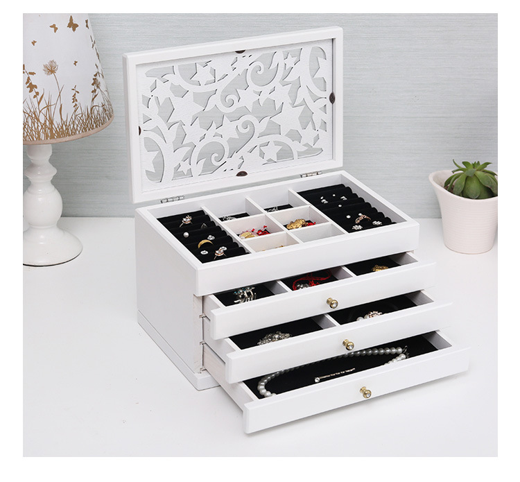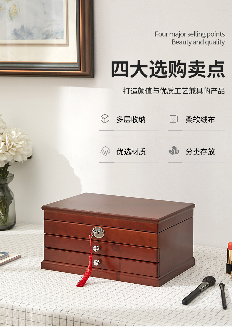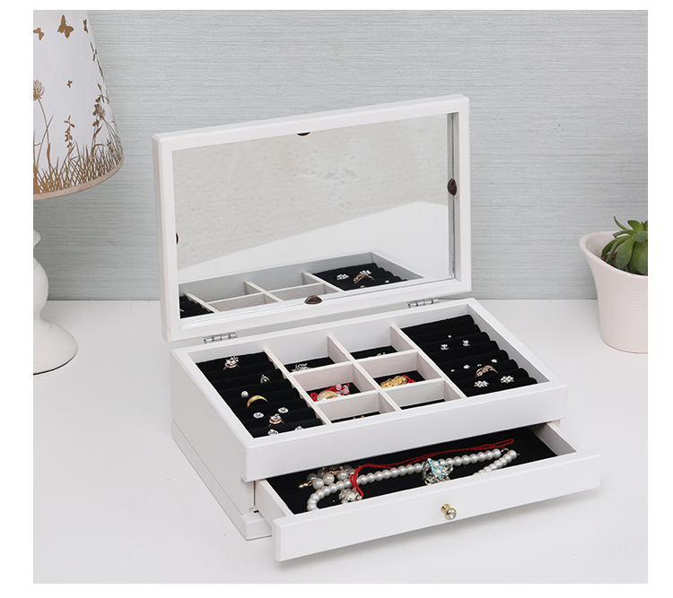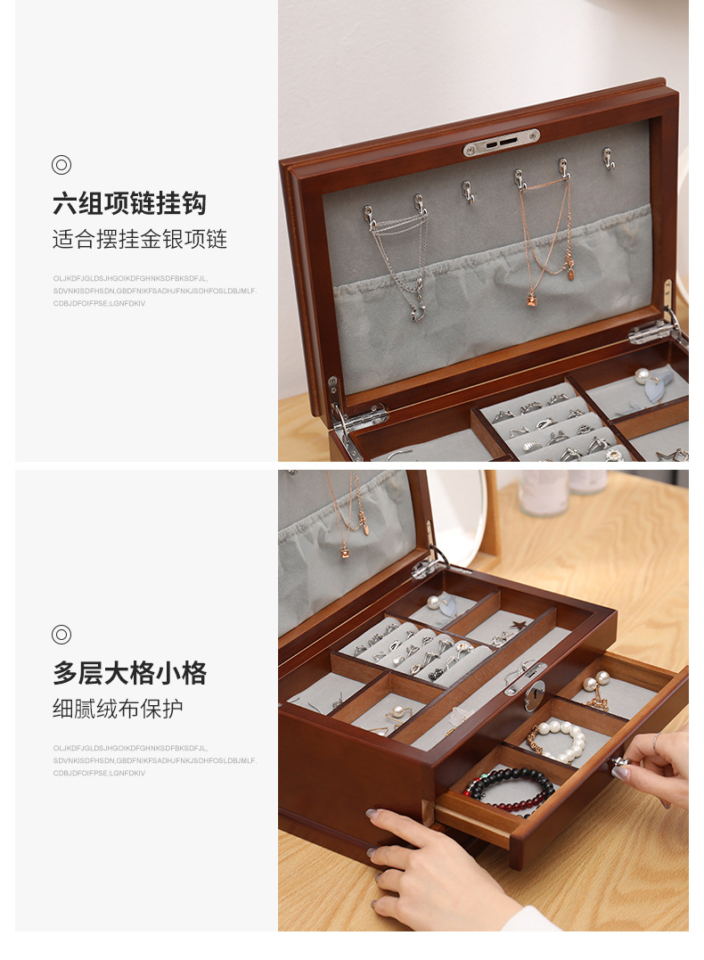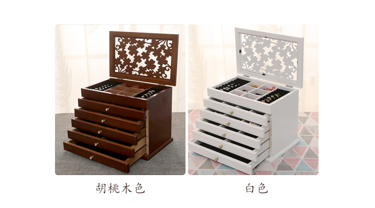 Fábrica transfronteriza caja de joyería de madera pendientes collar caja de almacenamiento caja de joyería de madera maciza vintage caja de anillo de joyería