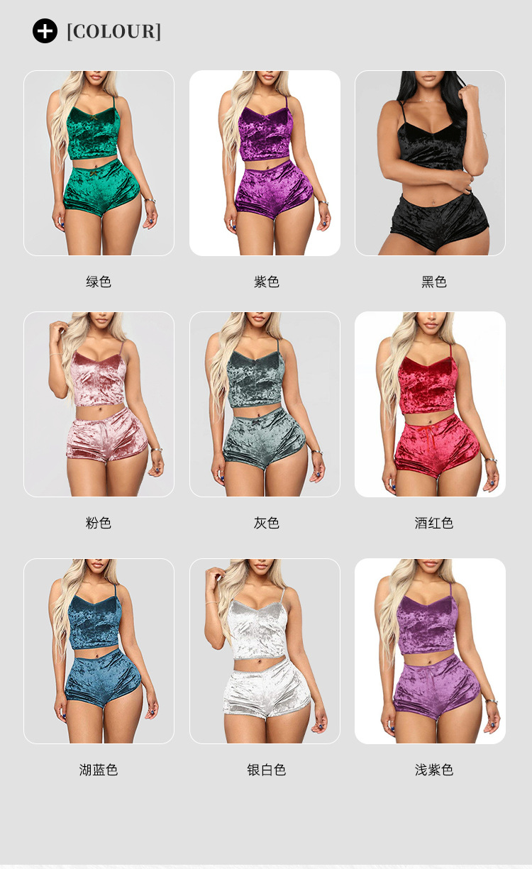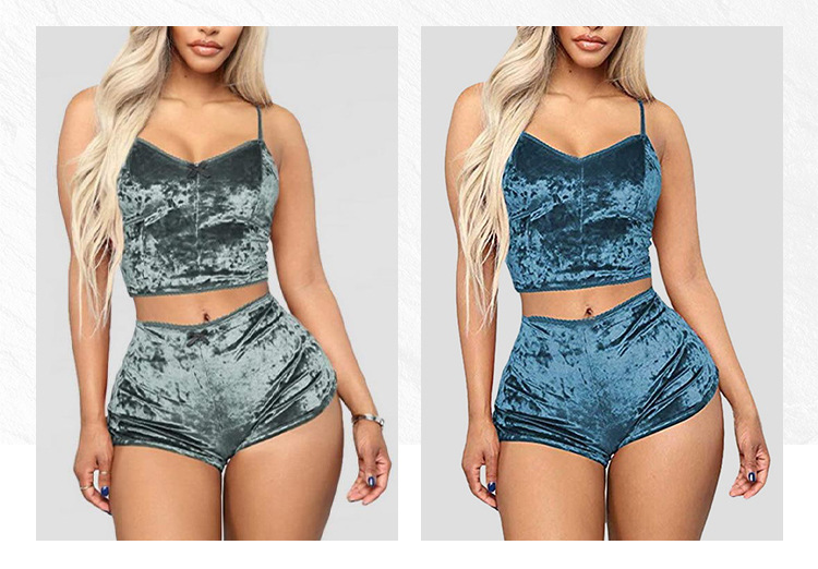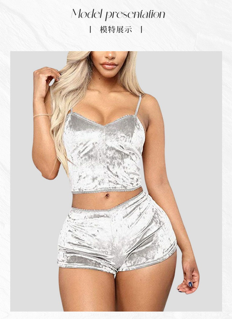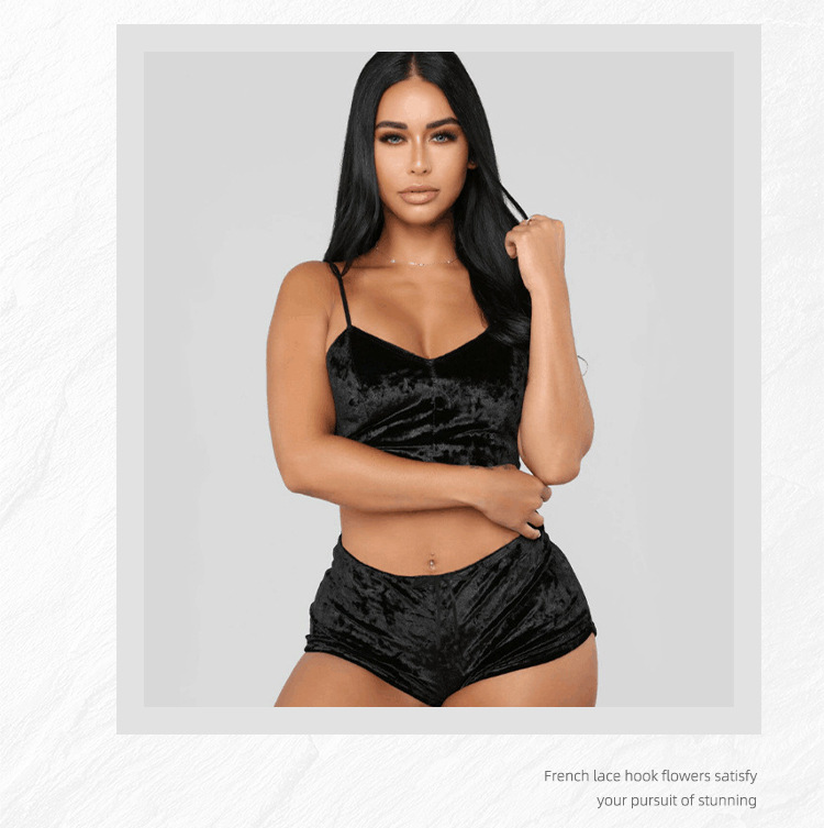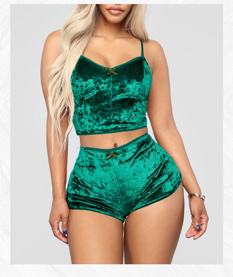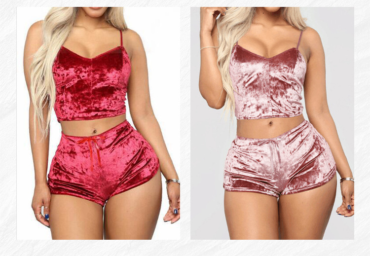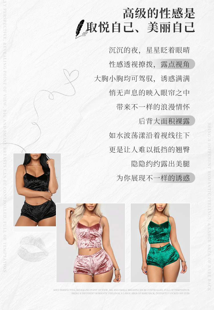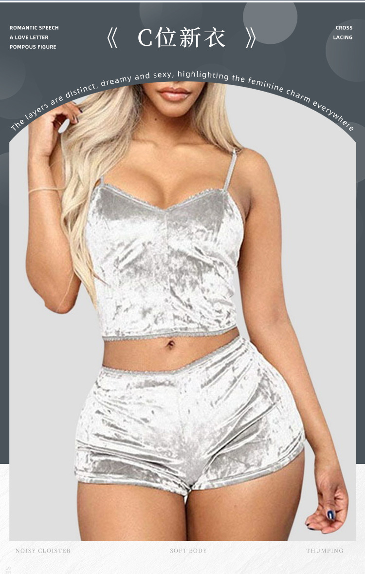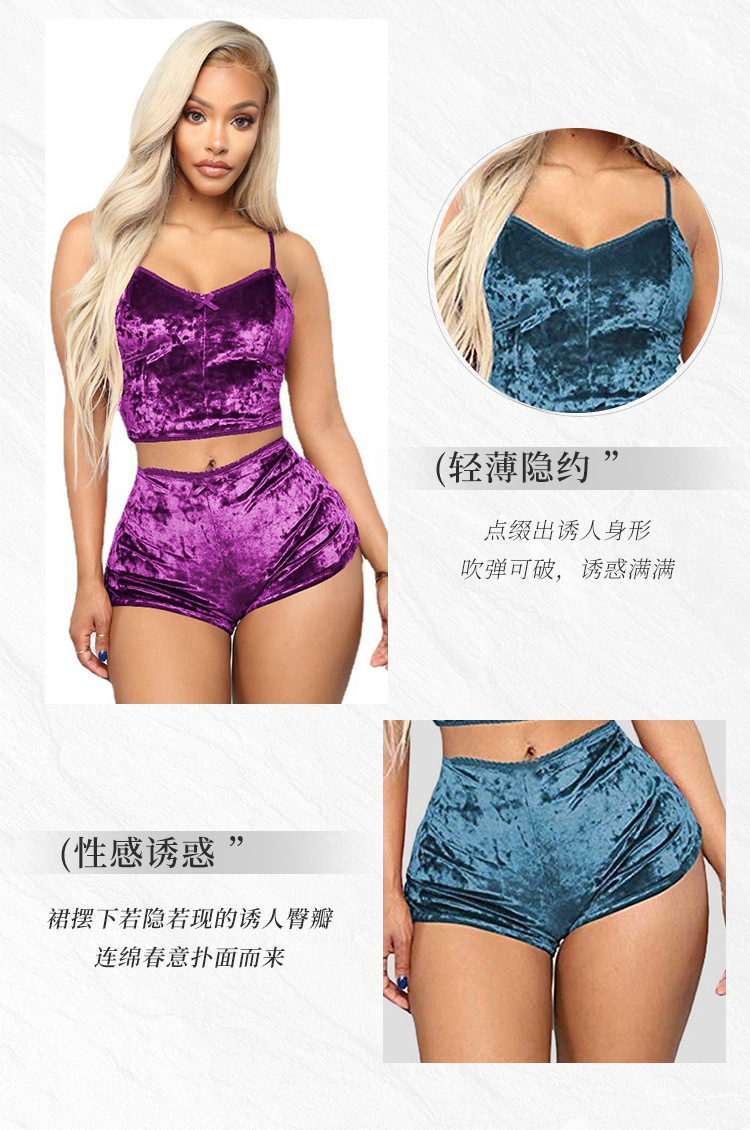 Comercio exterior transfronterizo sexy Lencería europea y americana terciopelo dorado sexy pantalones cortos de la Liga de las mujeres pijamas conjunto de dos piezas T1797