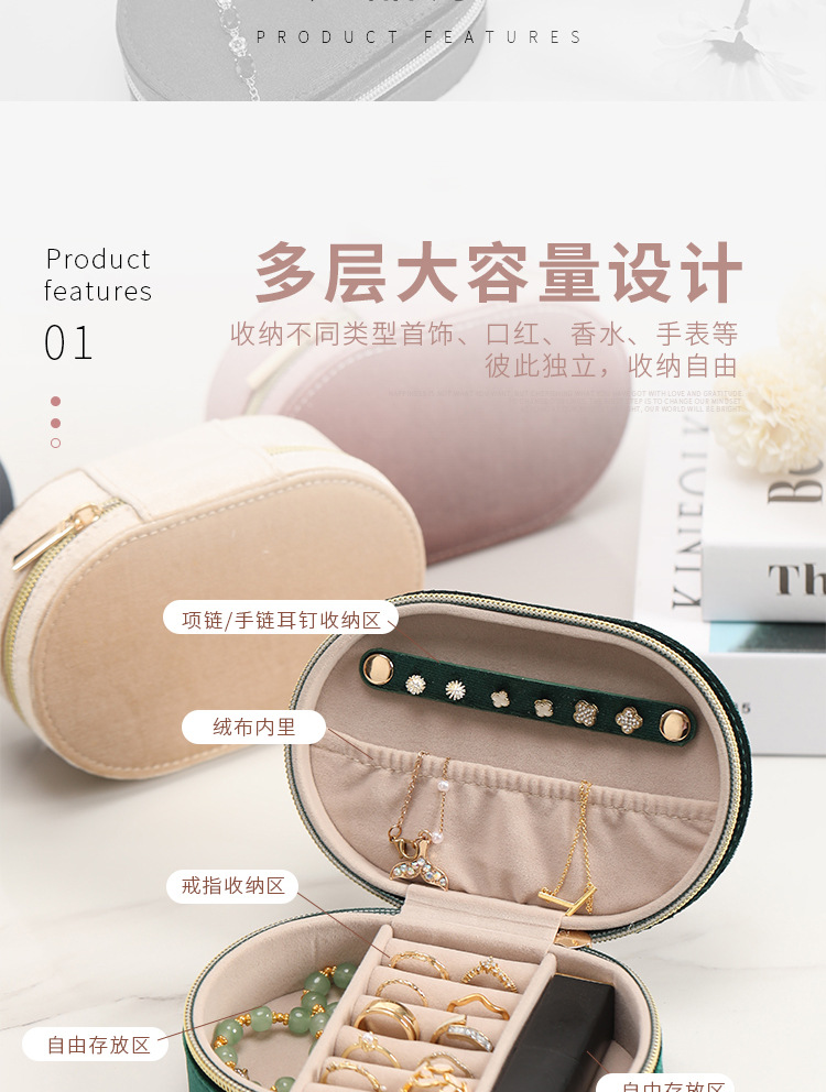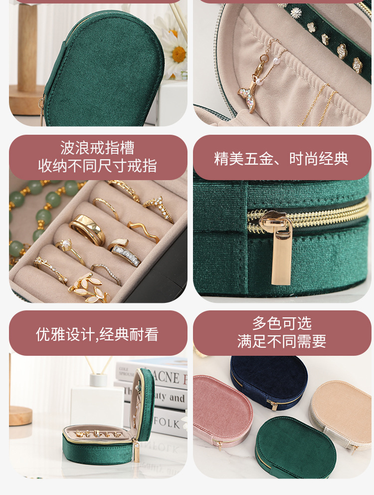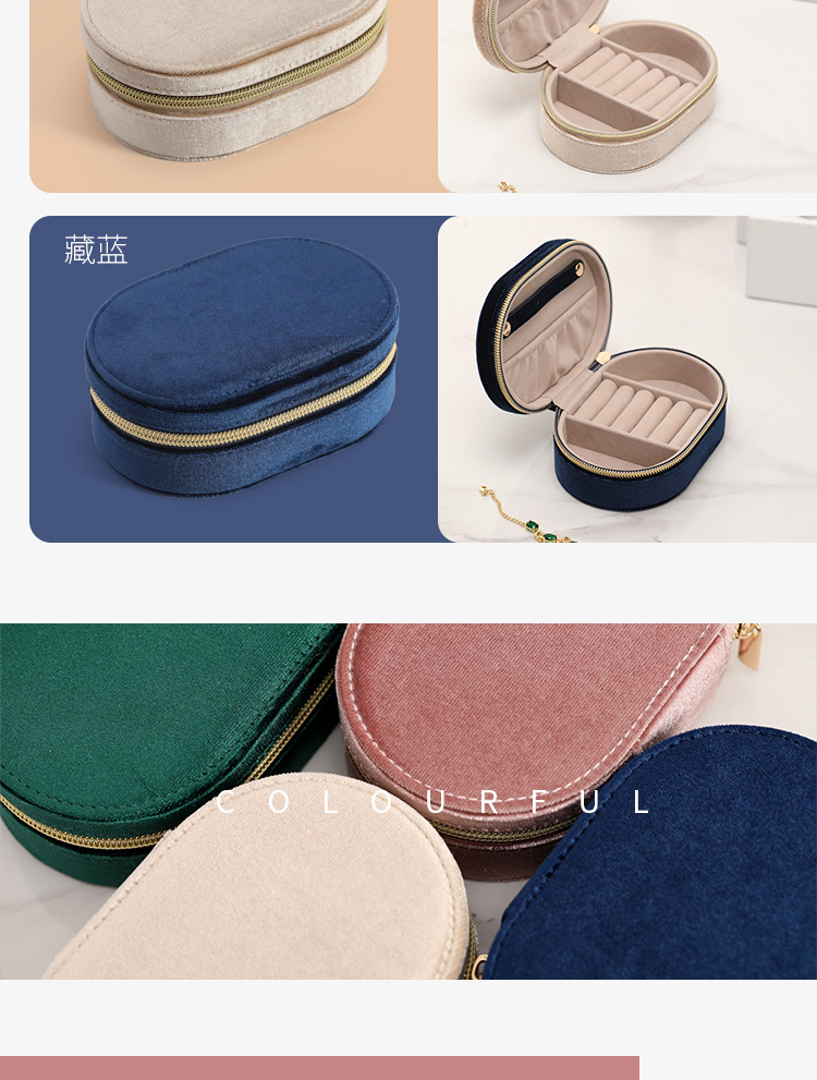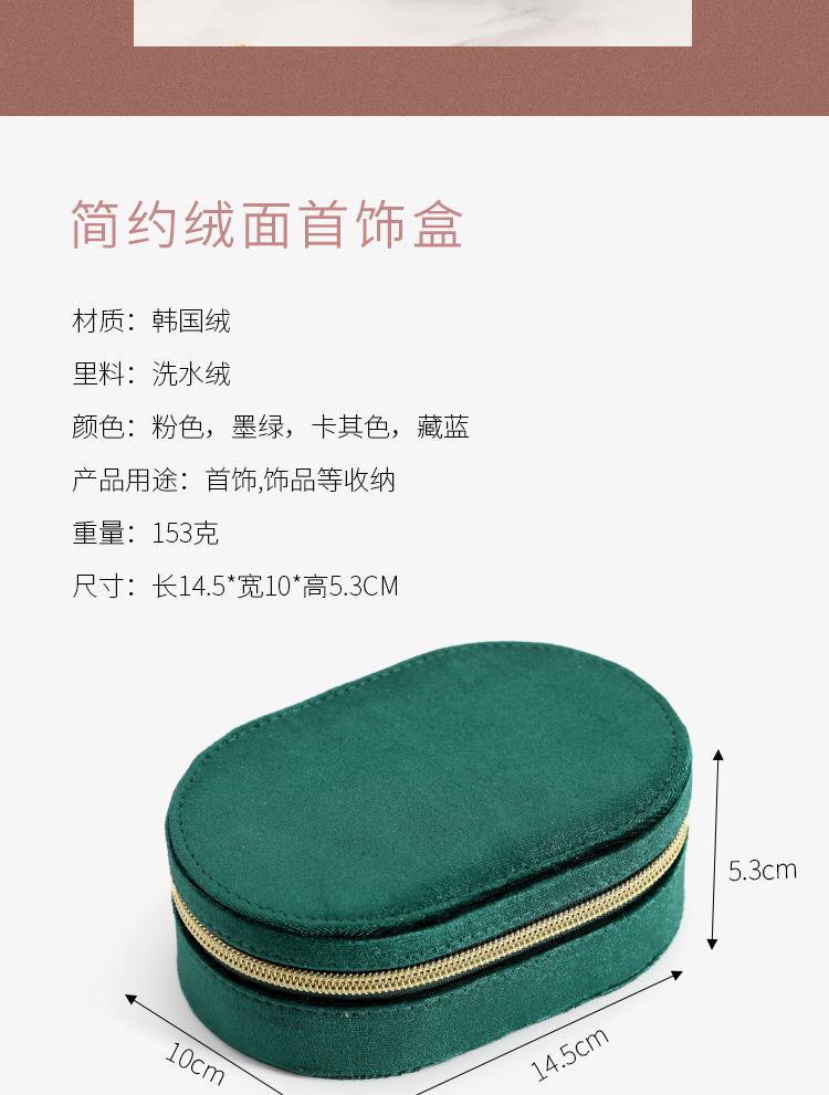 Caja de joyería transfronteriza de una sola capa Flip franela caja de joyería ovalada simple caja de almacenamiento de anillo de collar de joyería en stock