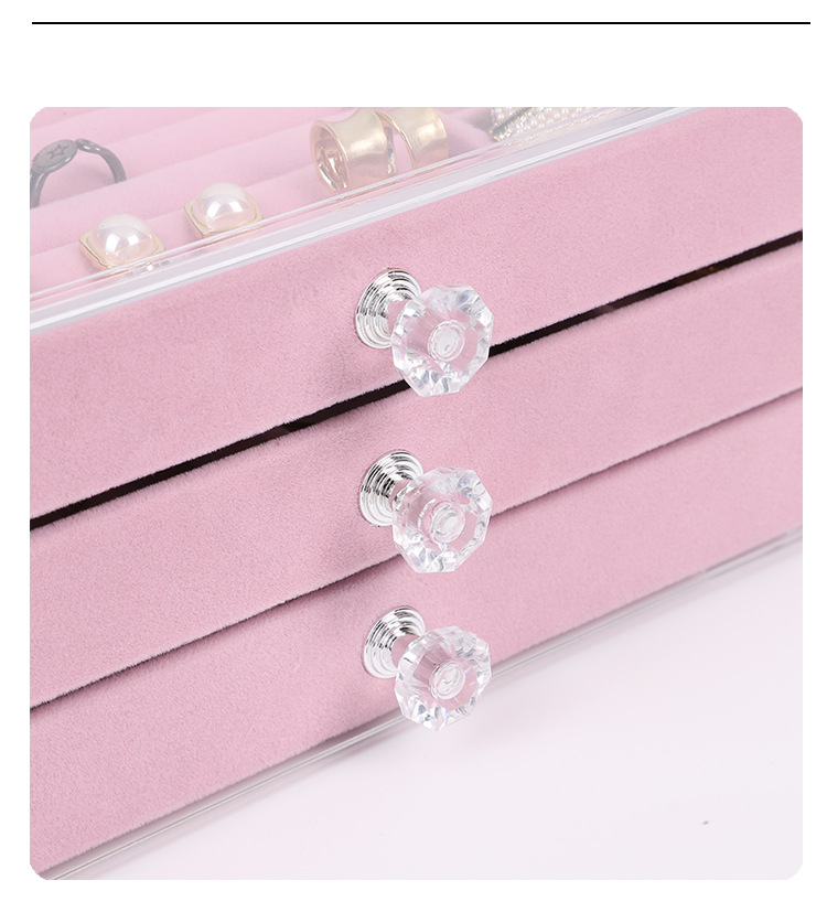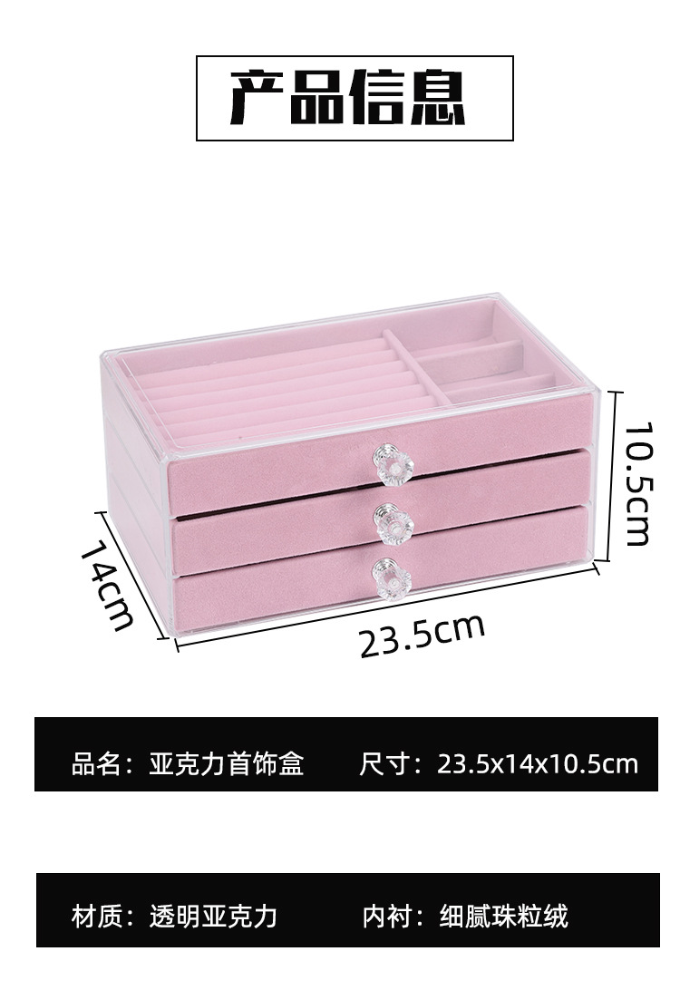 Joyero de acrílico con almacenamiento de tres niveles tipo cajón para anillos, accesorios para el cabello, pulseras y caja de terciopelo para guardar joyas.