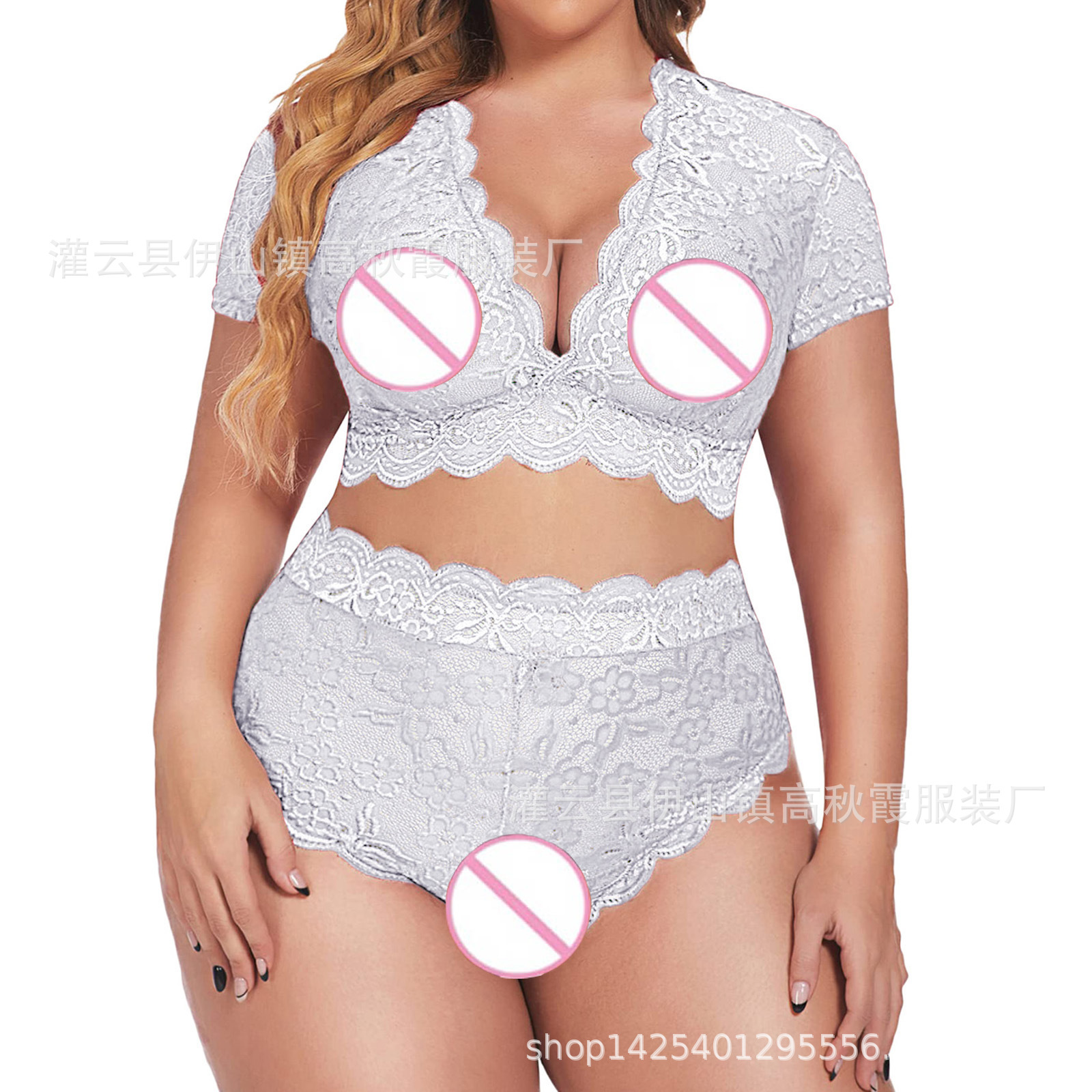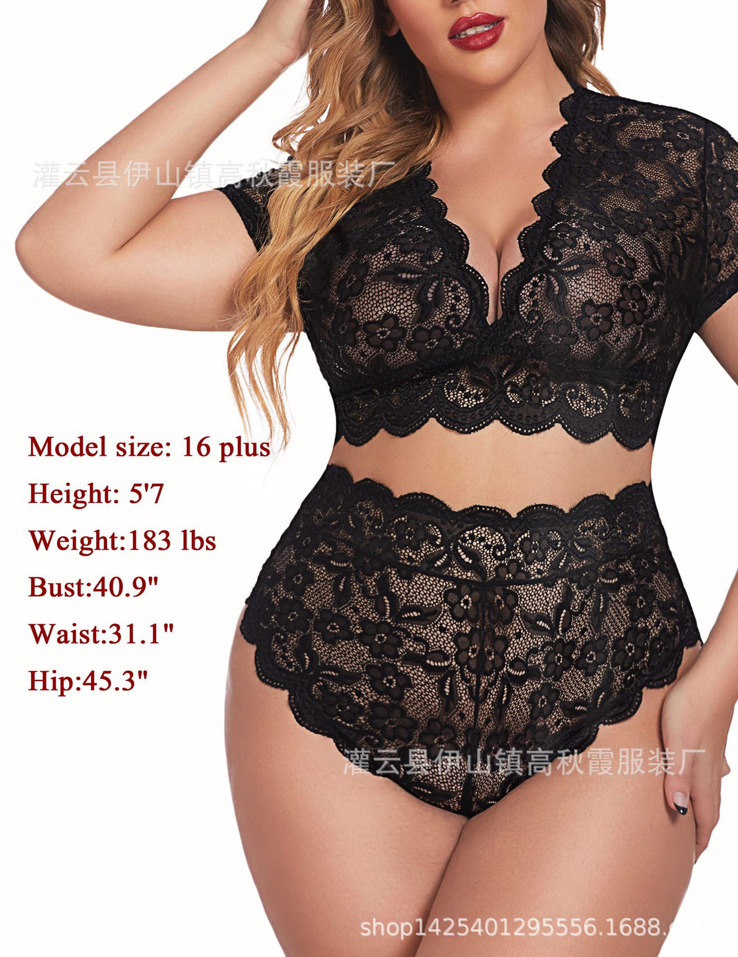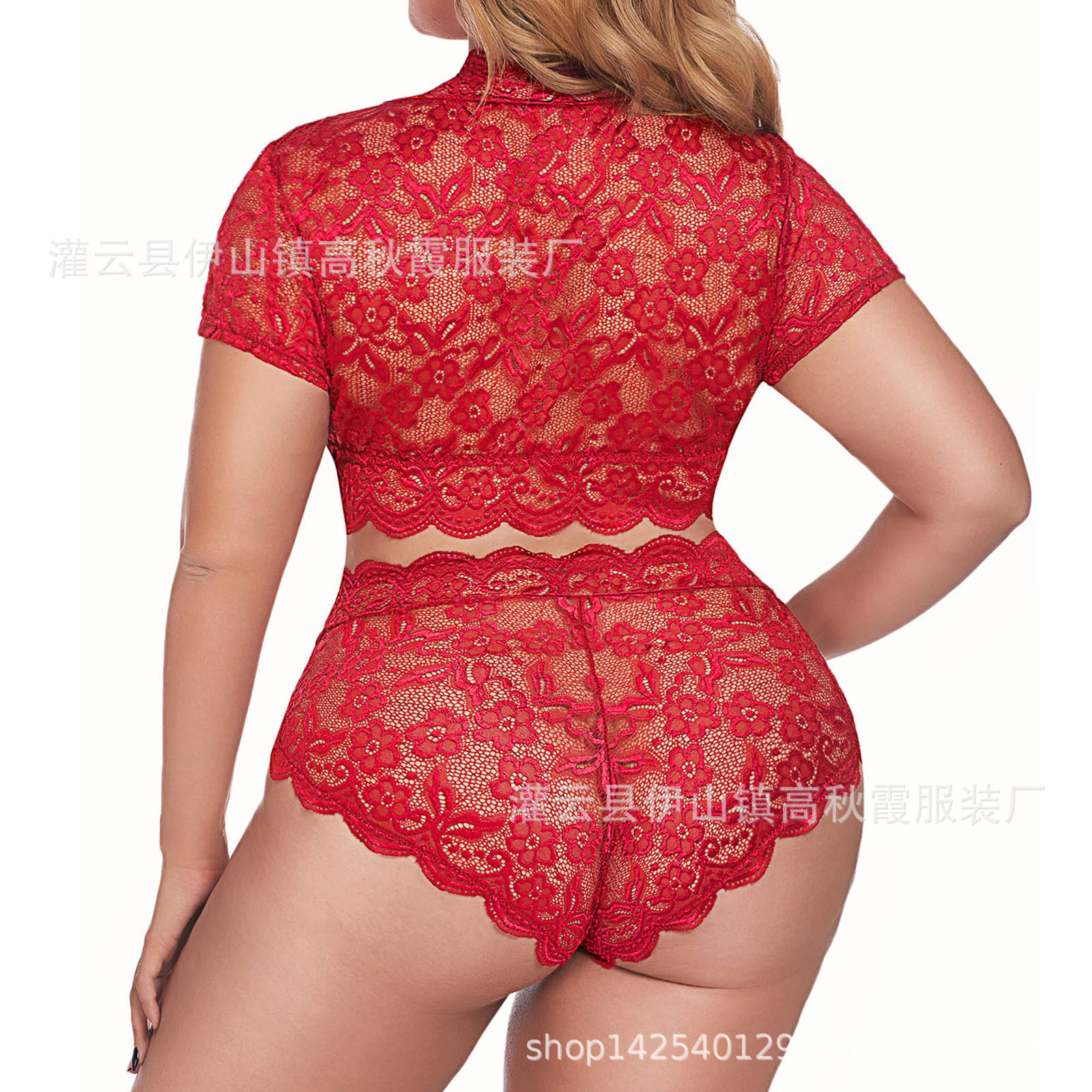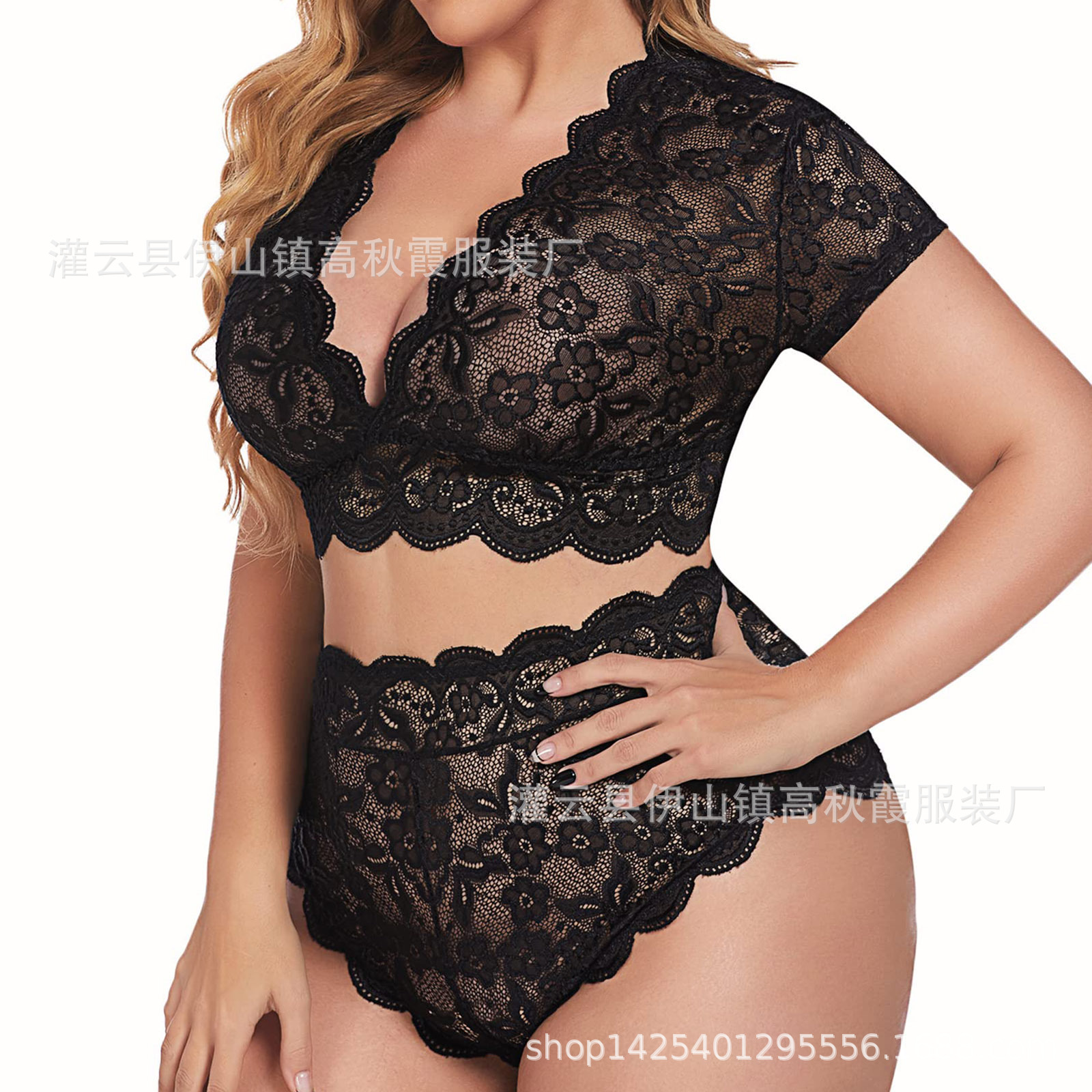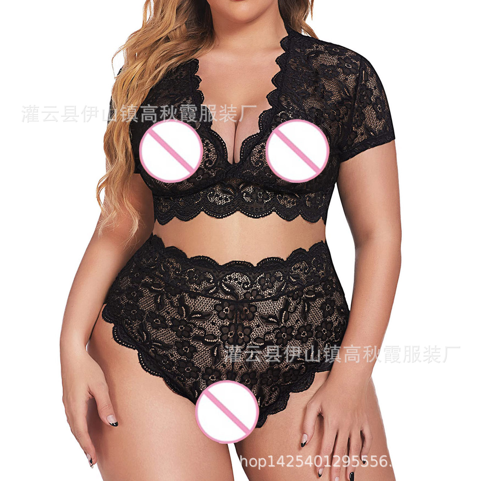 Lencería sexy europea y americana más tamaño seductora hendidura lateral correa de encaje camisón transparente pijamas divertidos