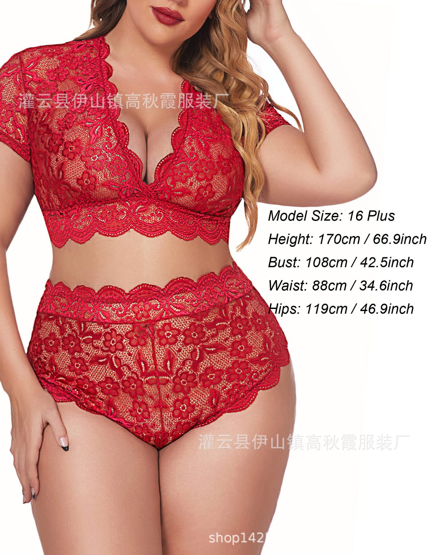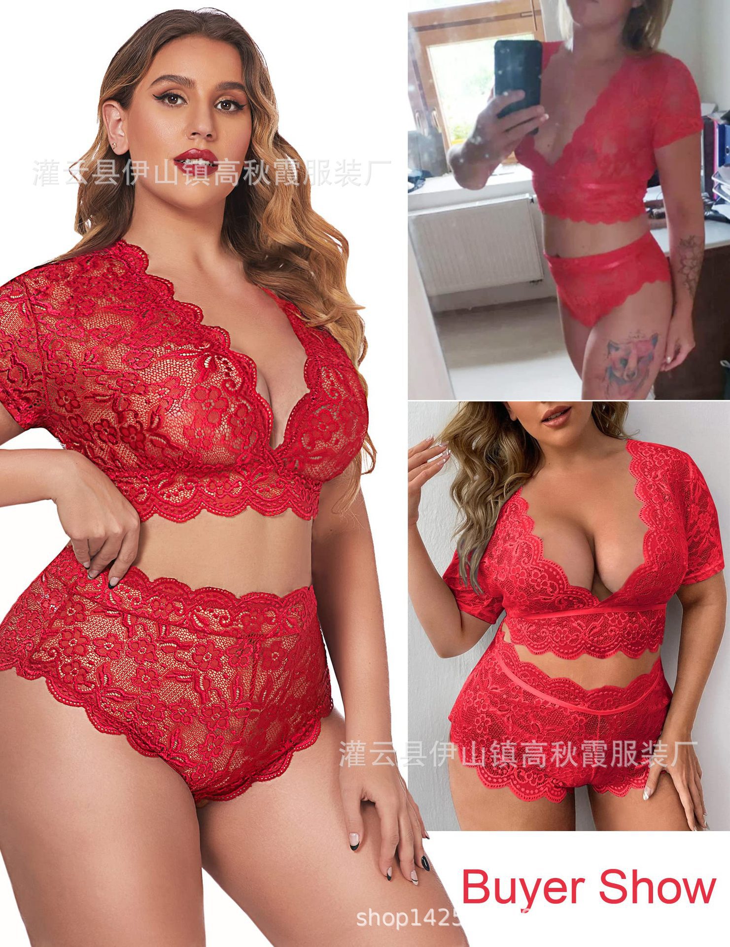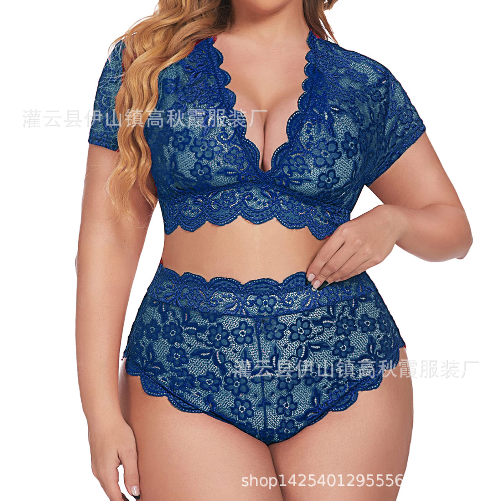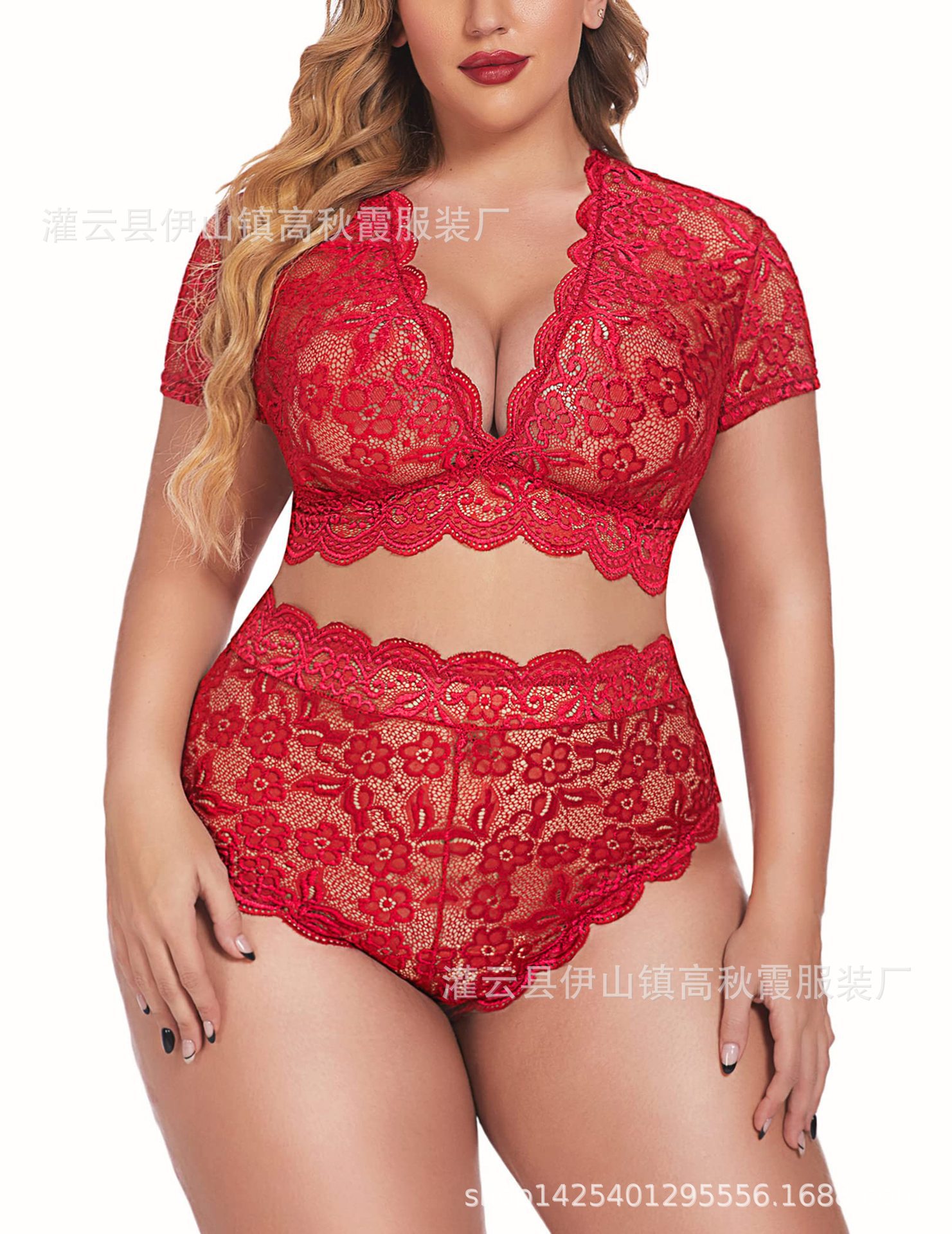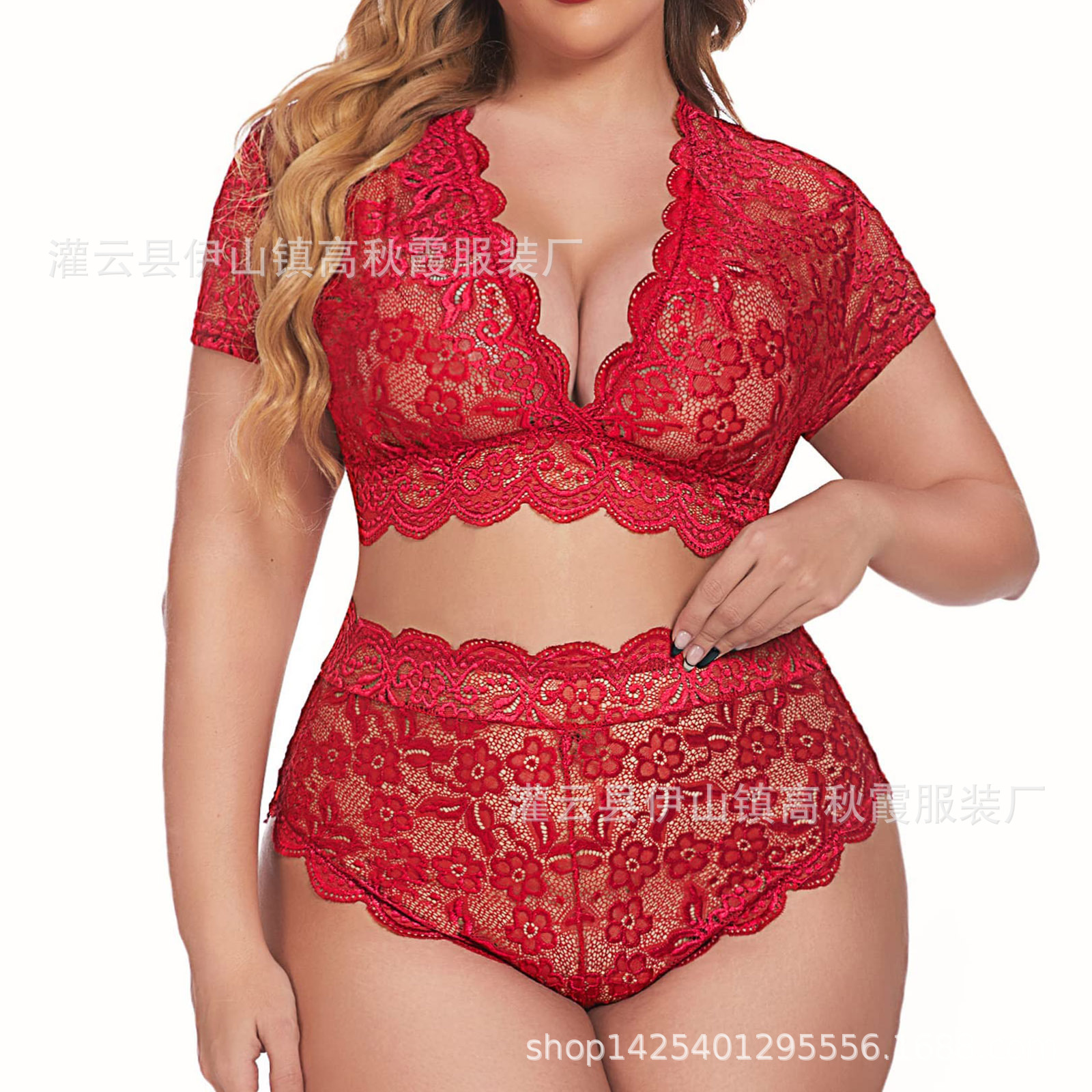 Lencería sexy europea y americana más tamaño seductora hendidura lateral correa de encaje camisón transparente pijamas divertidos