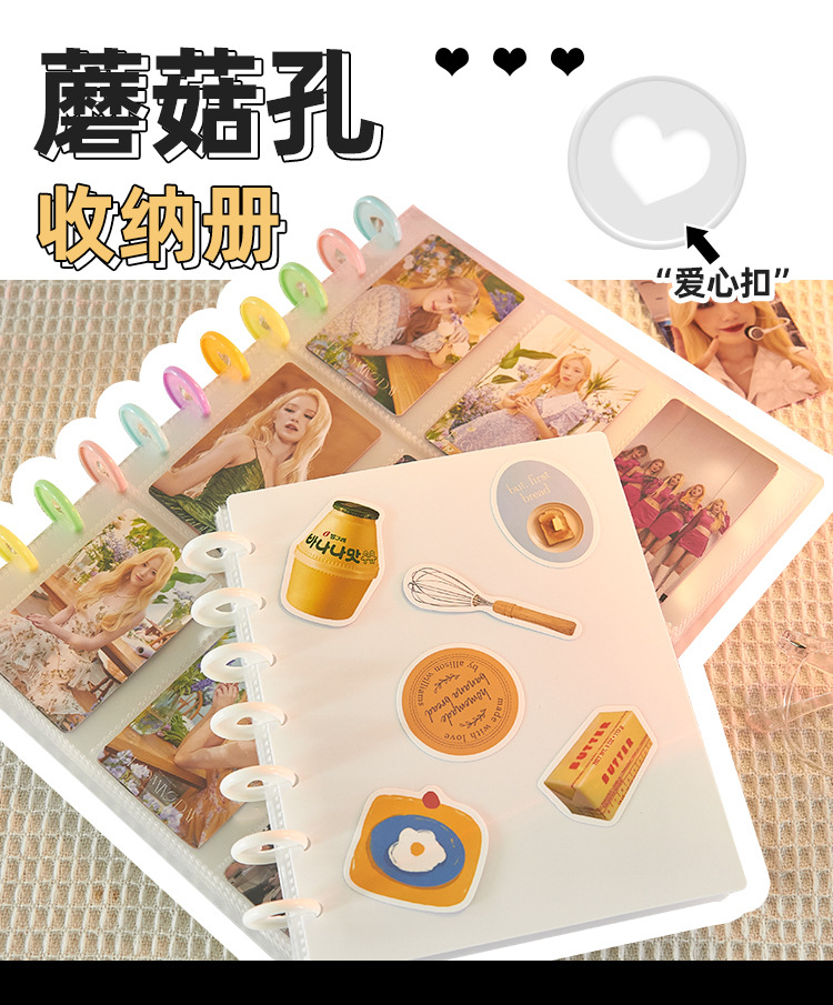 Libro de tarjeta de hebilla de setas coloridas Libro de 3 pulgadas de cuatro cuadrículas Álbum Polaroid álbum aidou transparente tarjeta pequeña libro de almacenamiento de persecución de estrellas