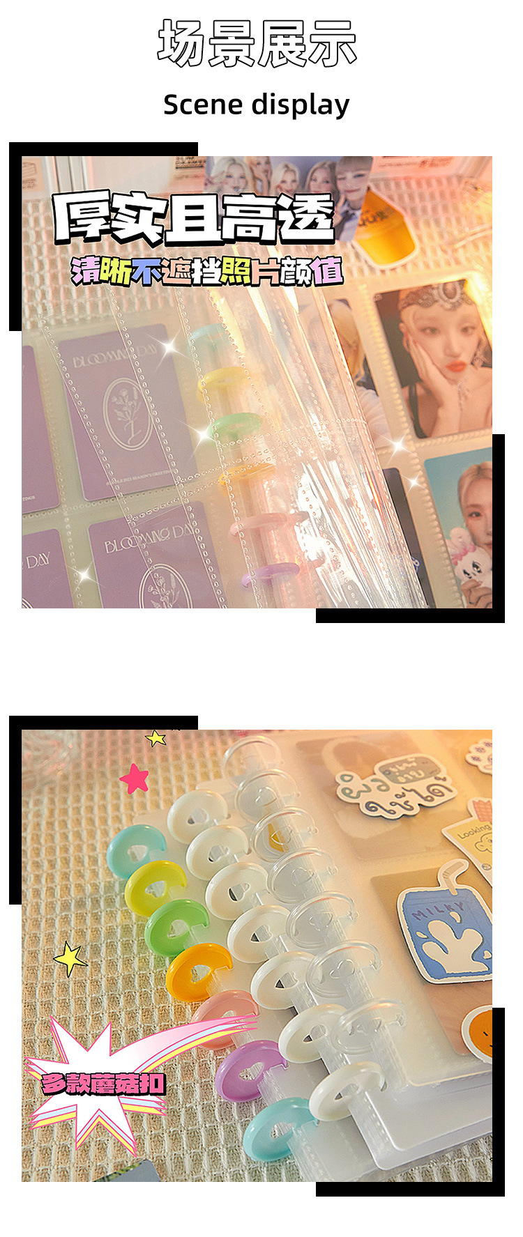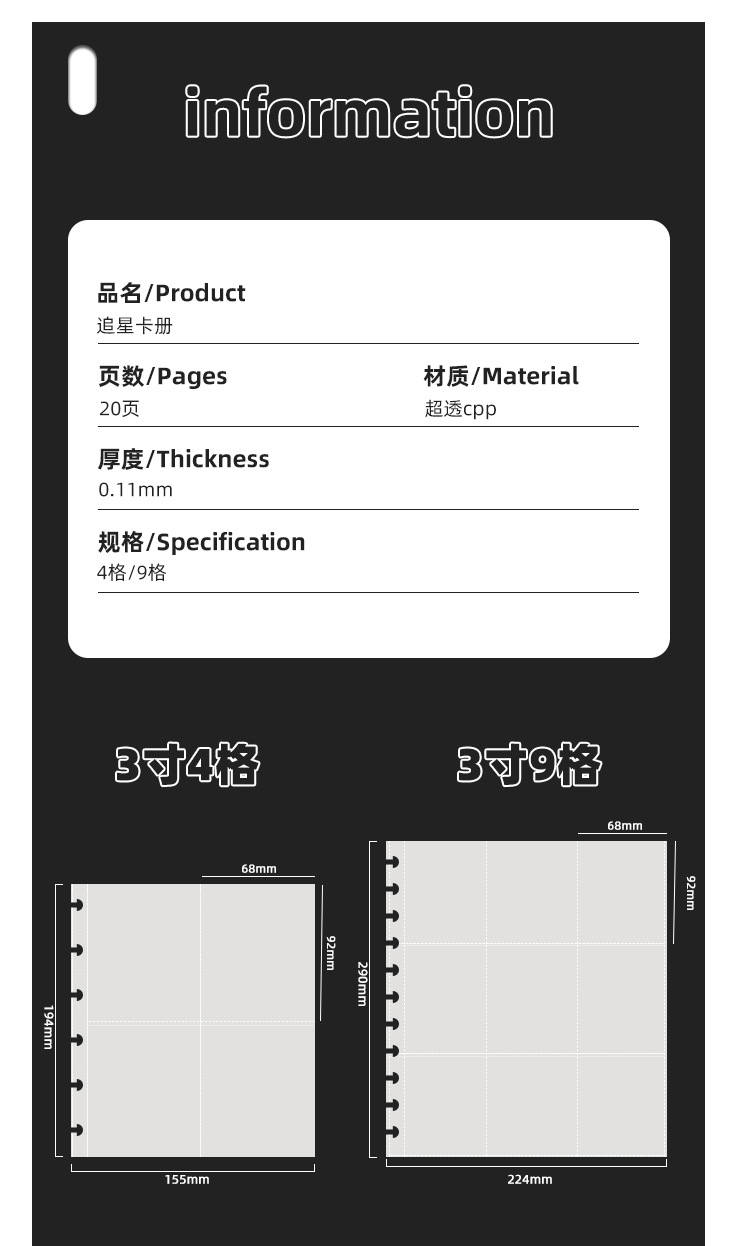 | Colores de la cubierta | Pequeño color a través-20 páginas 3 pulgadas,Pequeño blanco-20 páginas 3 pulgadas,Pequeño rosa-20 páginas 3 pulgadas,Pequeño puro transparente-20 páginas 3 pulgadas,Pequeño negro-20 páginas 3 pulgadas,Página interior de la hebilla de hongo [20 hojas] |