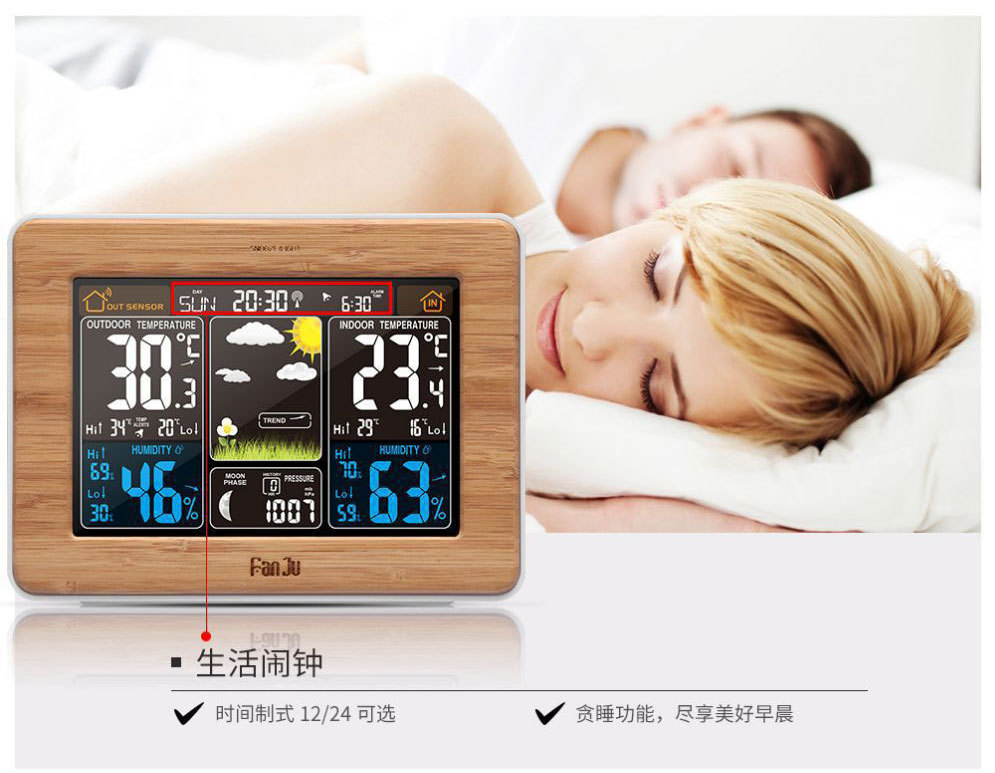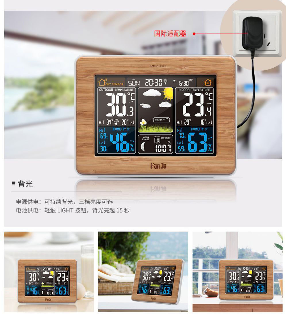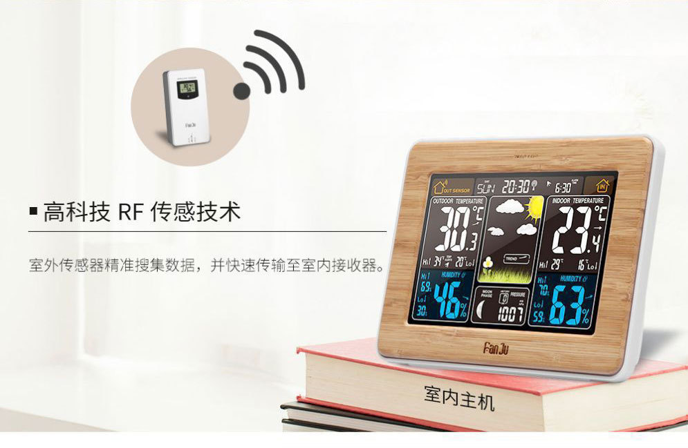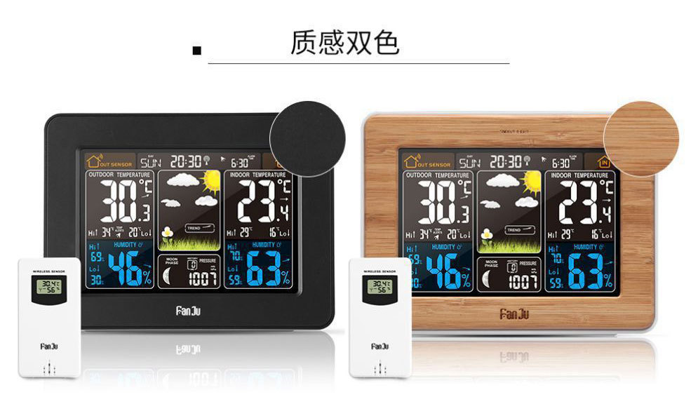 Color pantalla pronóstico del tiempo reloj 3365 negro onda eléctrica reloj despertador electrónico multifuncional RF inalámbrico reloj del tiempo calendario