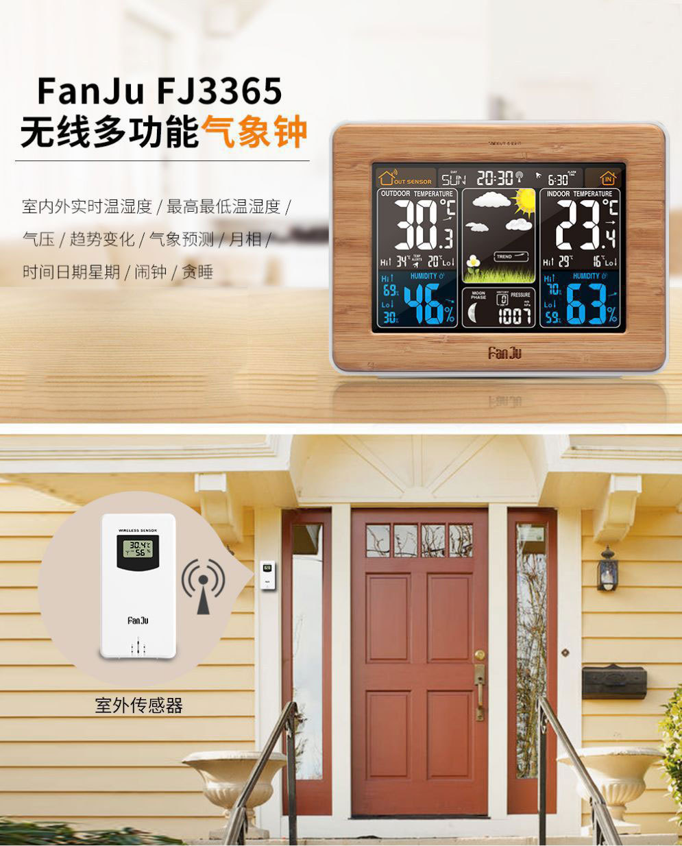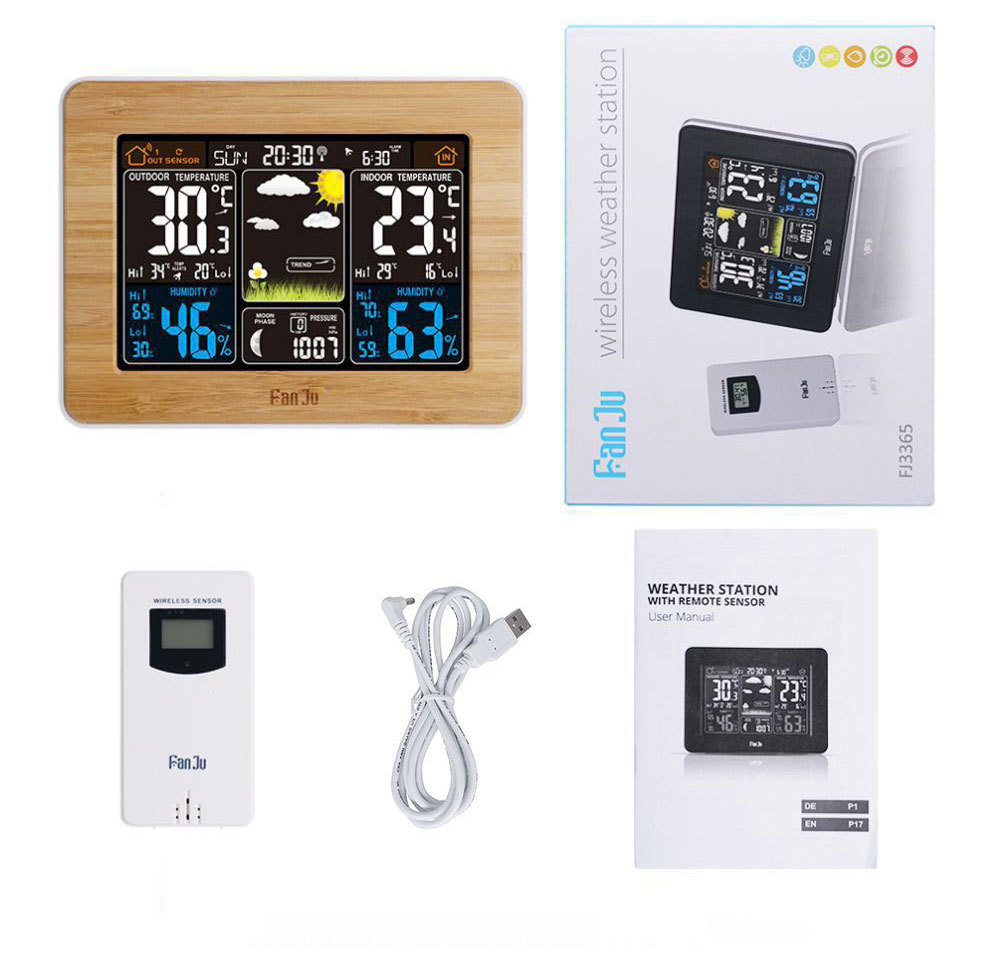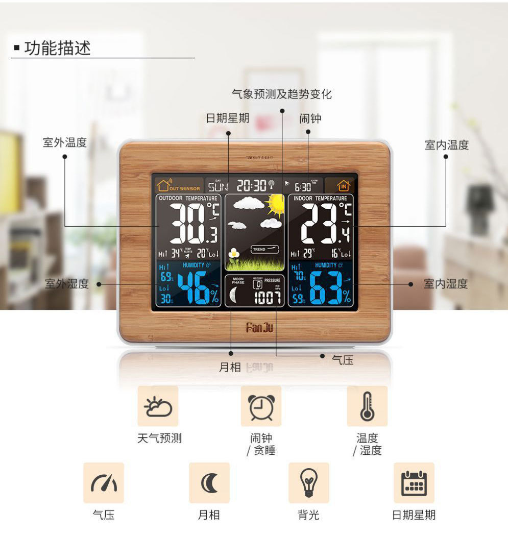 Color pantalla pronóstico del tiempo reloj 3365 negro onda eléctrica reloj despertador electrónico multifuncional RF inalámbrico reloj del tiempo calendario