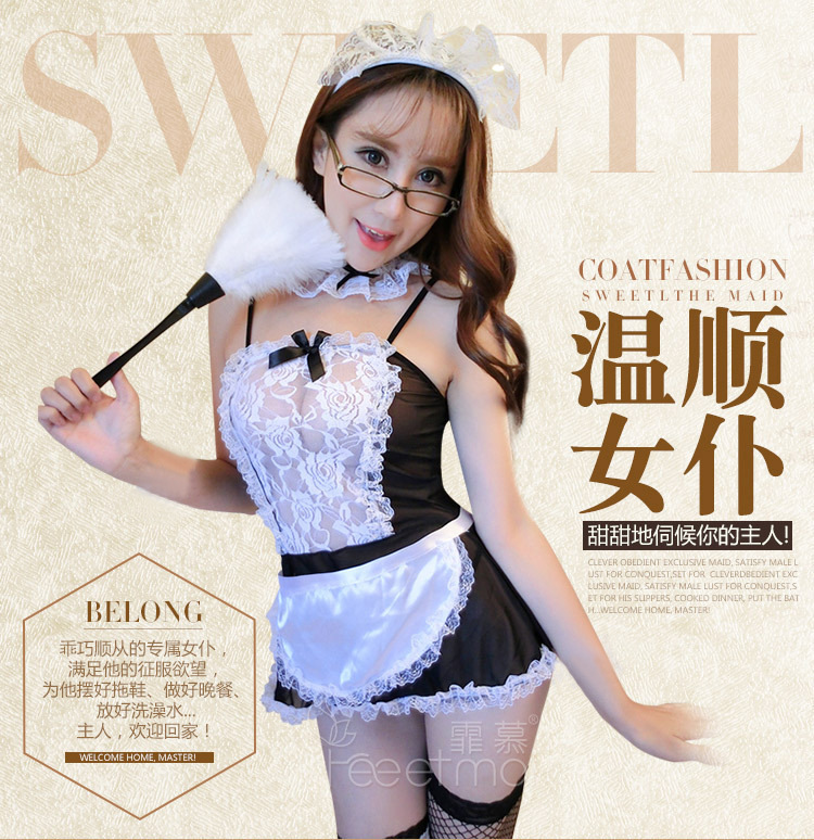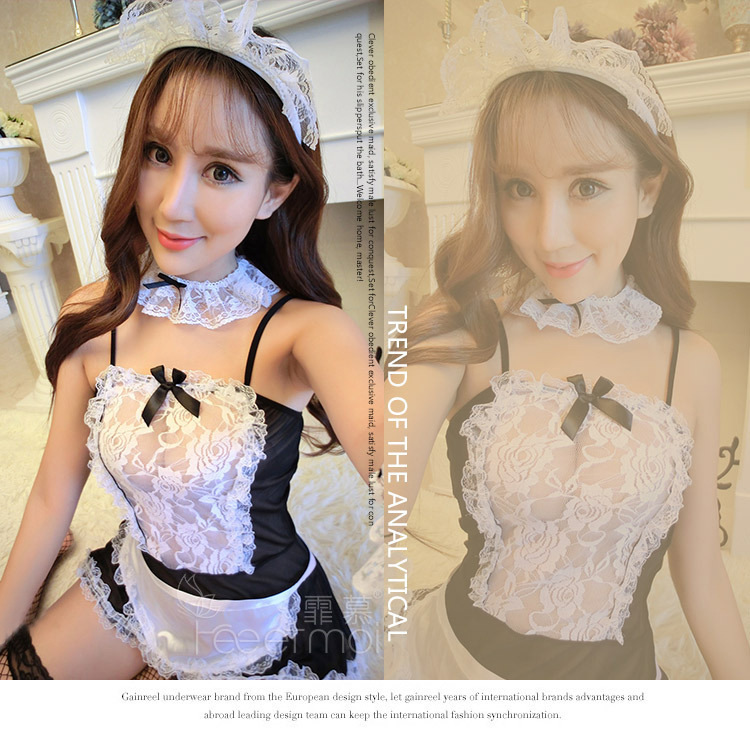 Comercio exterior europeo y americano más tamaño traje de mucama sexy Lencería traje de encaje Rocío uniforme tentación Chubby chica Pijamas
