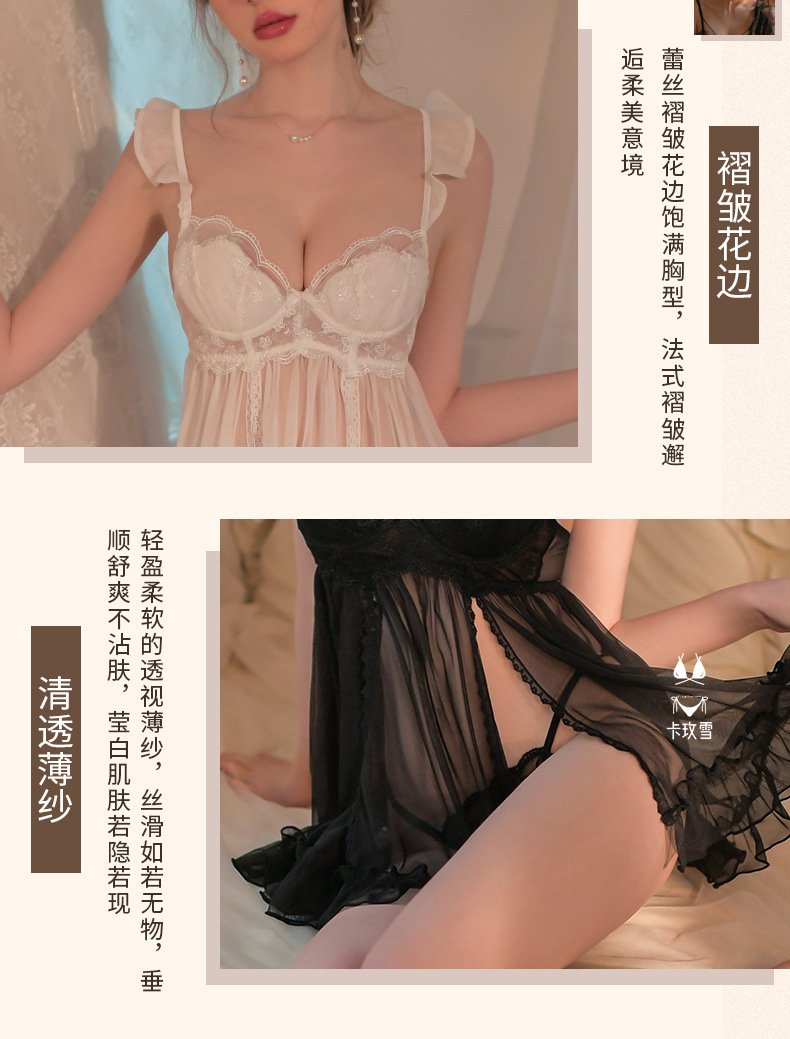 Popular pasión malla transparente encaje lencería sexy más tamaño Correa camisón europeo y americano casa exótica 1949