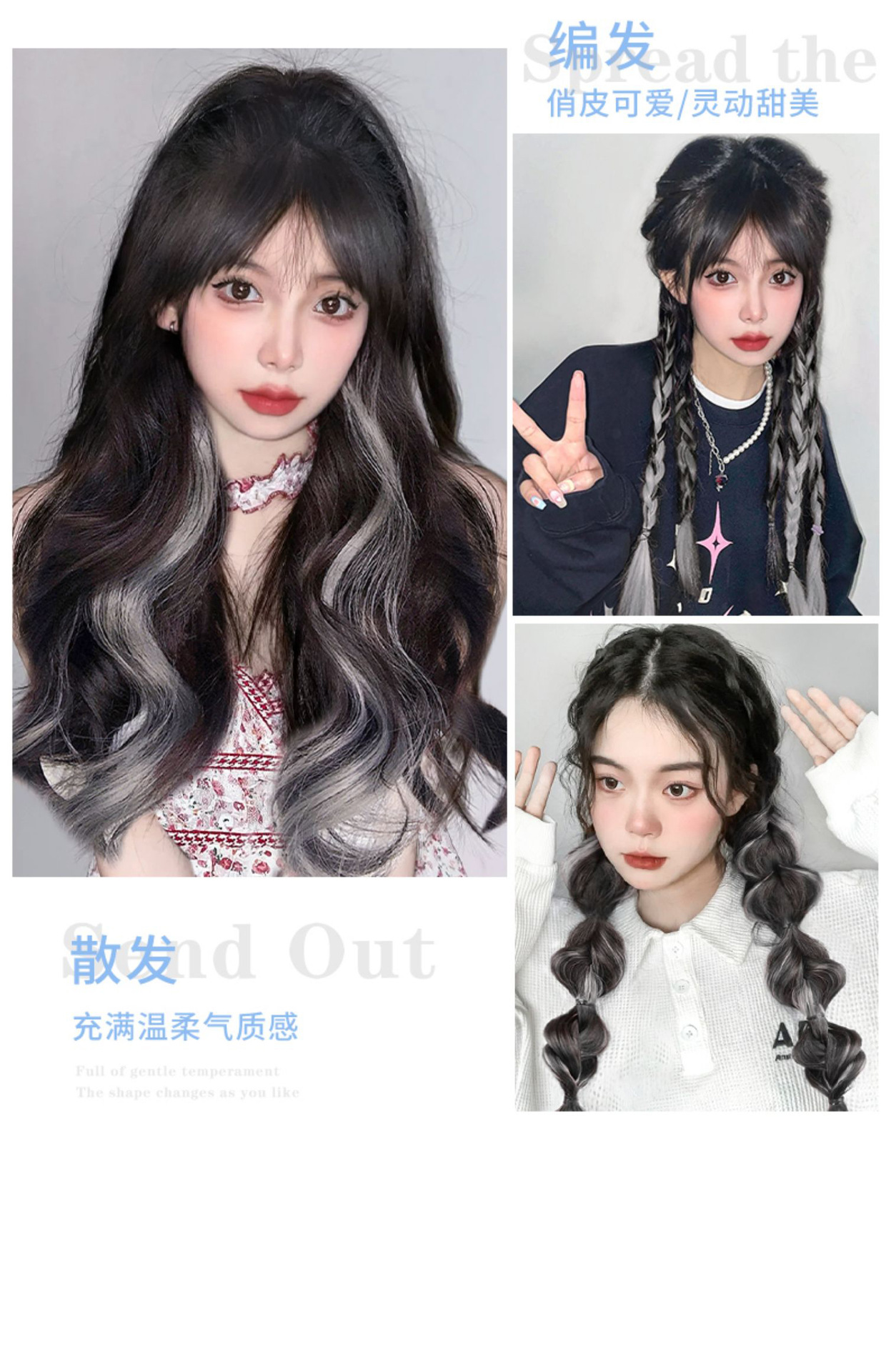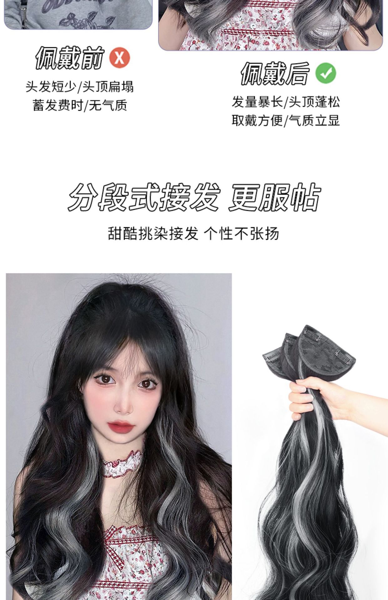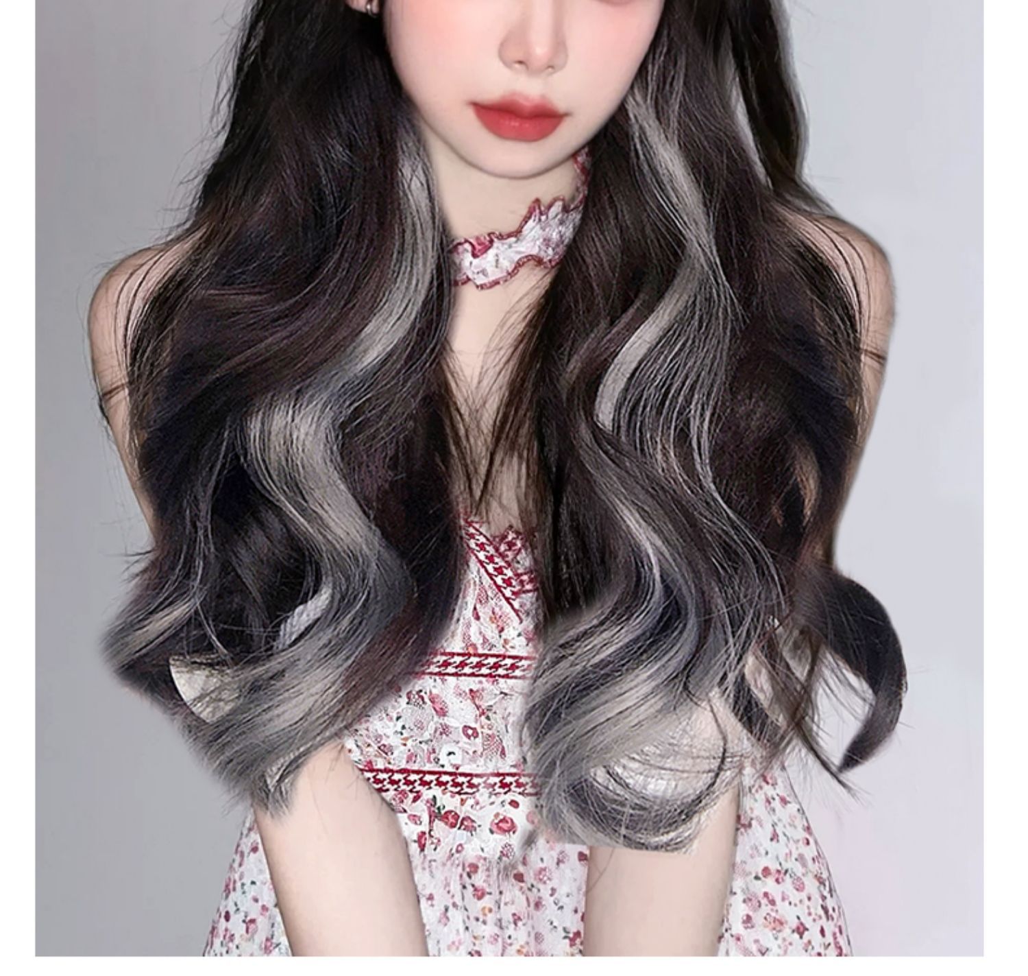 Peluca mujer elegir teñido largo cabello rizado personalidad de la moda dividir pieza de extensión de cabello esponjoso cabello natural peluca parche