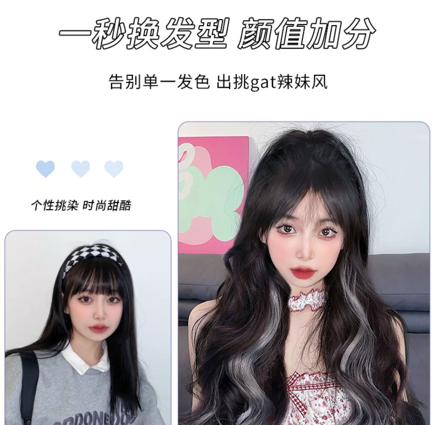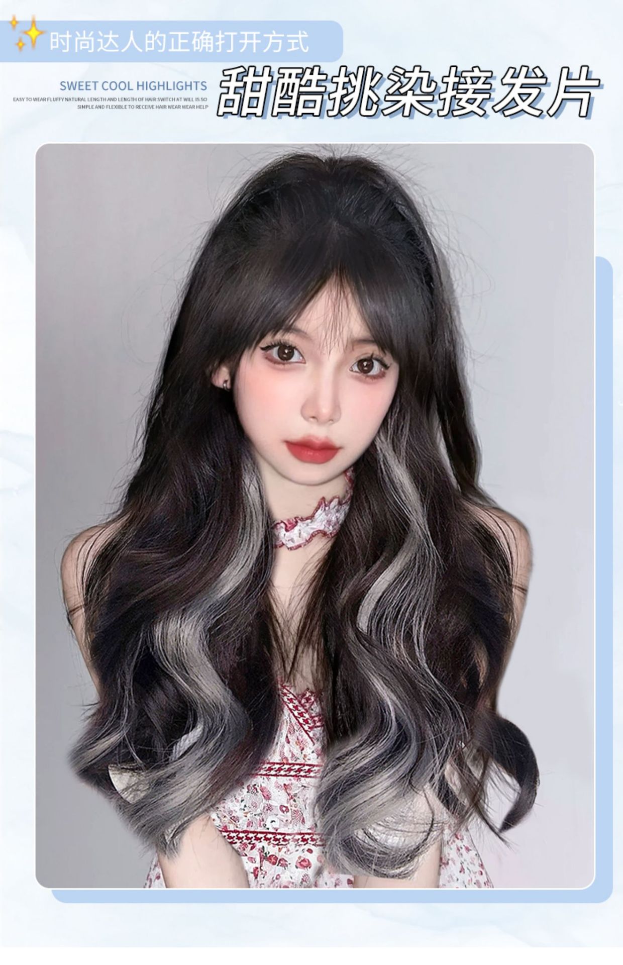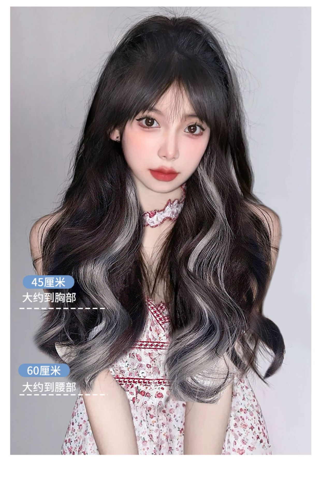 Peluca mujer elegir teñido largo cabello rizado personalidad de la moda dividir pieza de extensión de cabello esponjoso cabello natural peluca parche