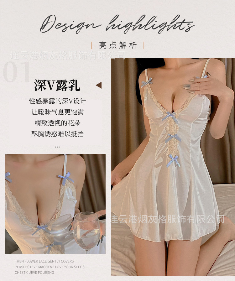Otoño chic sexy Lencería encaje ahueca hacia fuera puro deseo chica pijamas verano sala privada Correa sexy camisón de casa