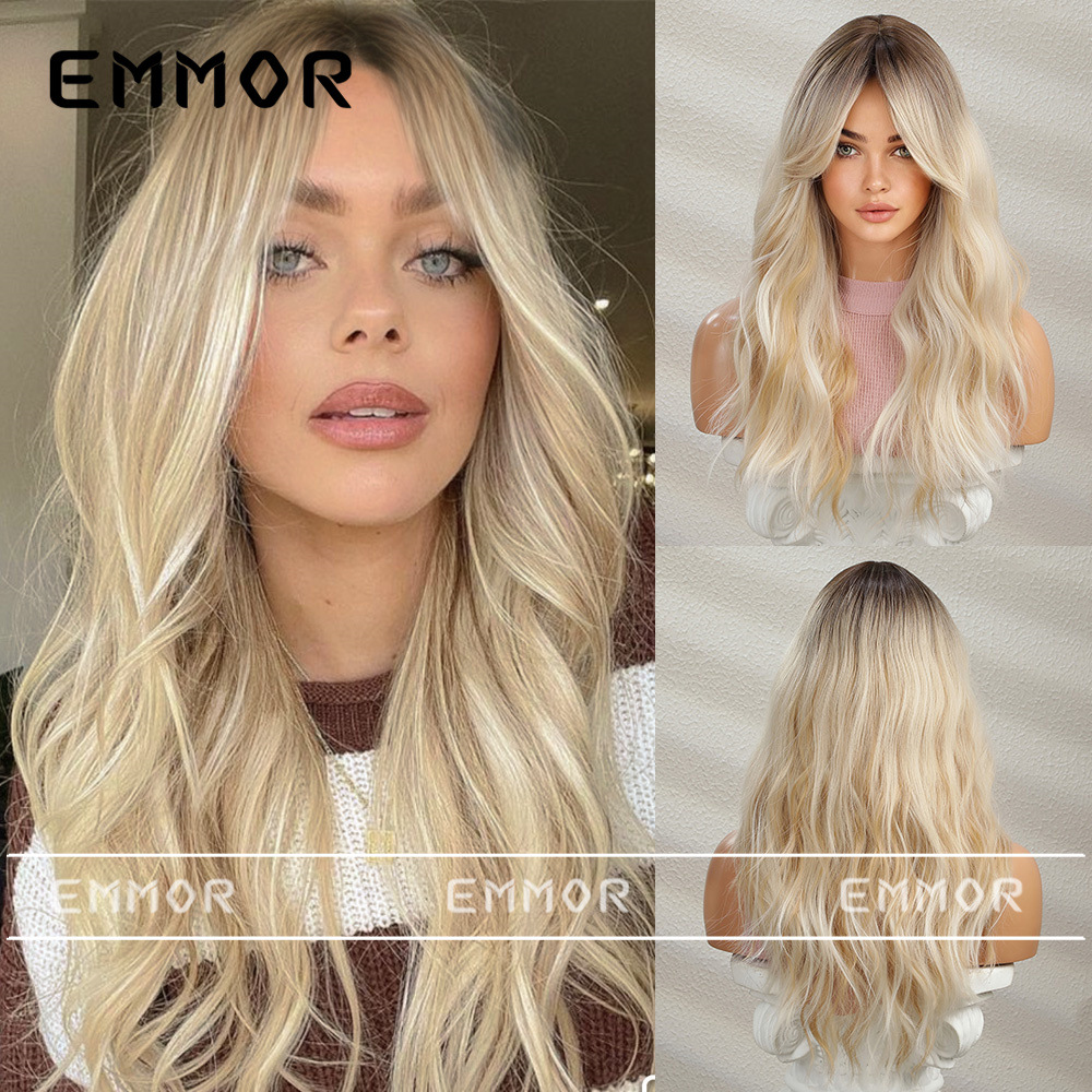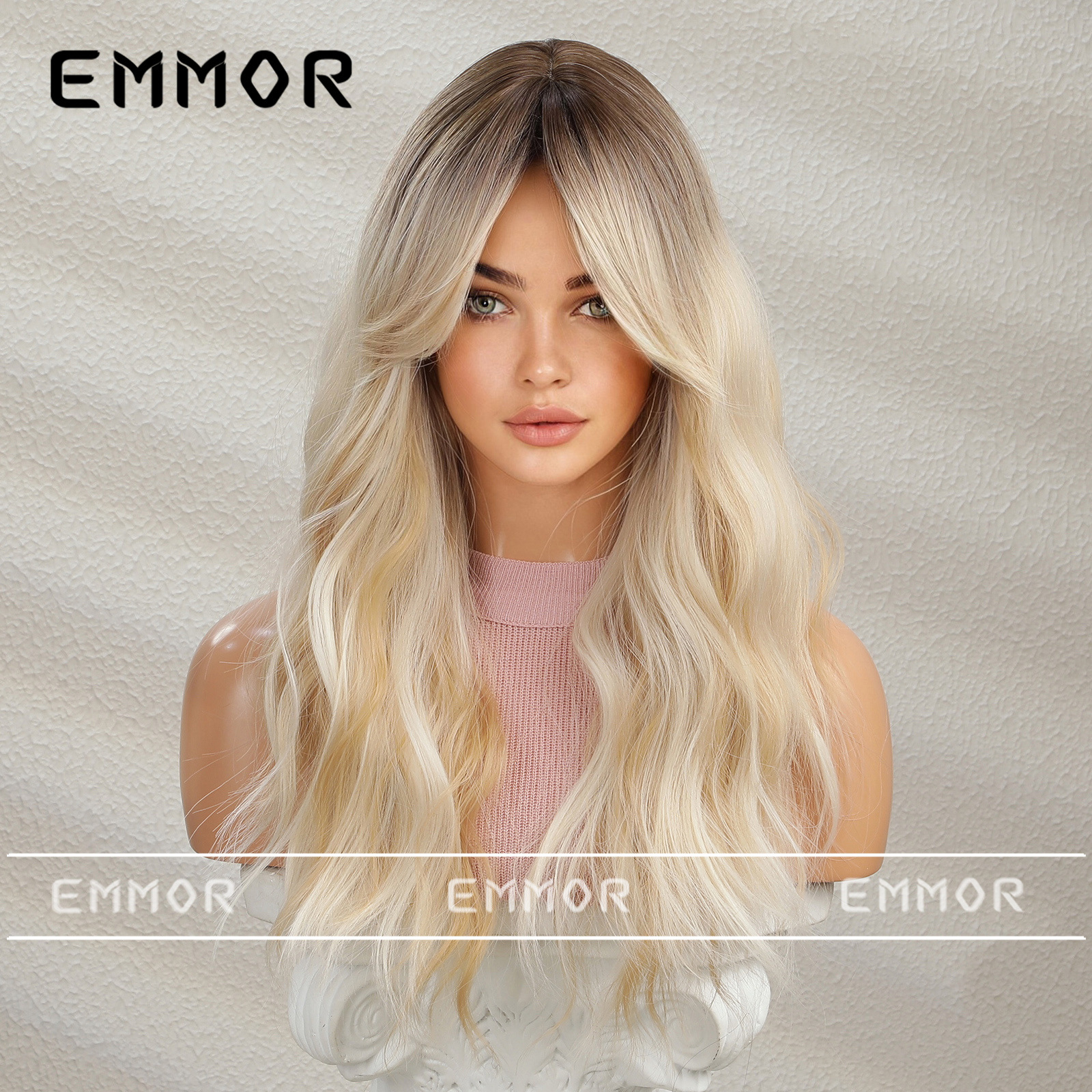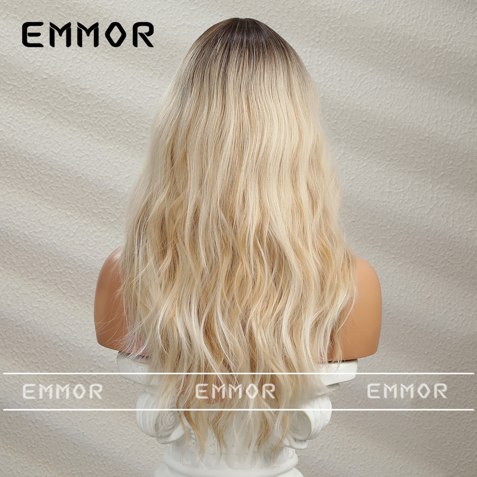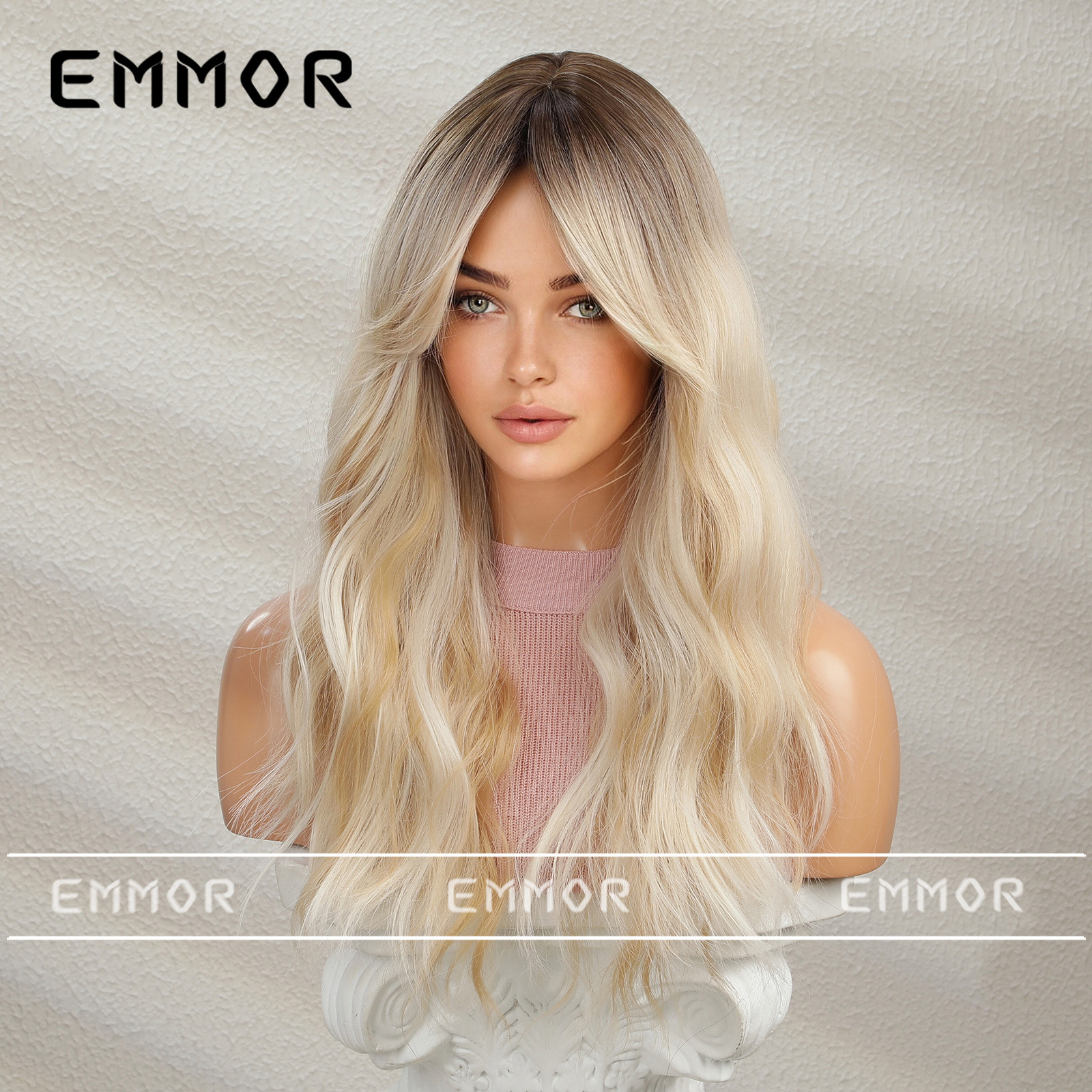 Nueva peluca transfronteriza cabello largo punto medio teñido gradiente negro temperamento dorado pequeño volumen Red de pelo rojo europeo y americano estilo peluca cubierta