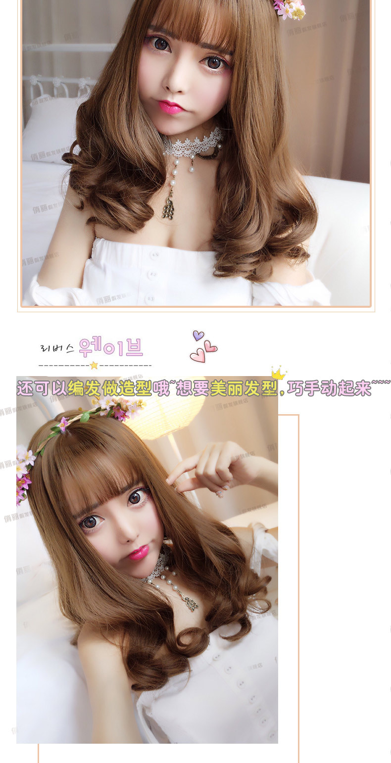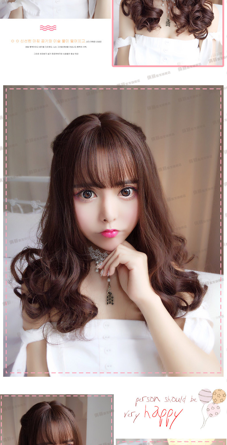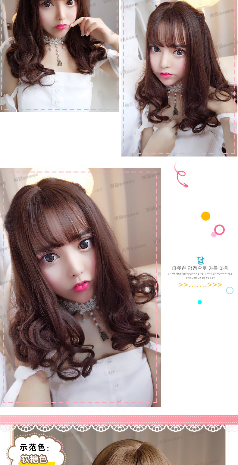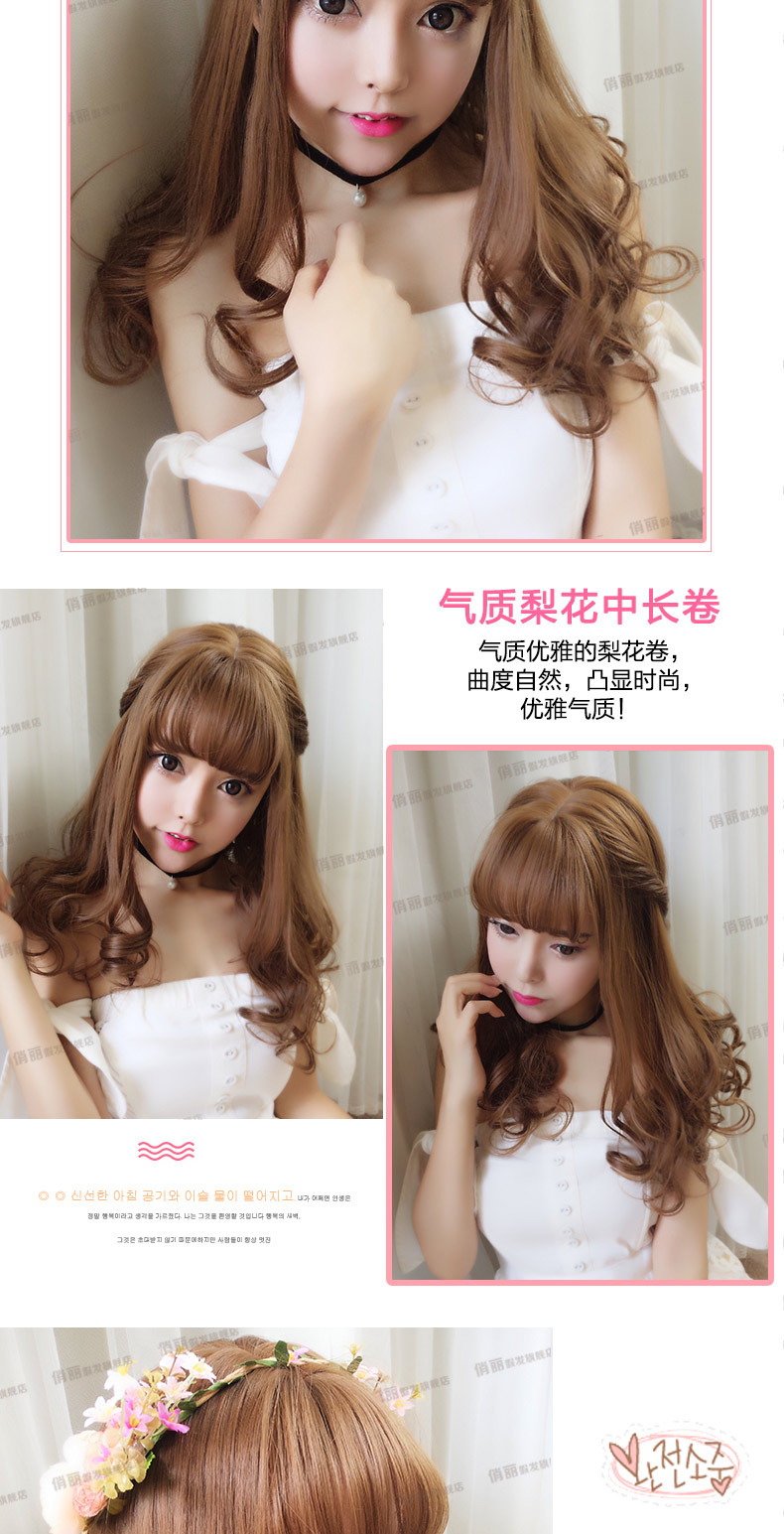 Fábrica al por mayor peluca femenina medio largo pelo rizado cara redonda aire Bangs pera flor cabeza cubierta Corea del Sur recto Bangs Pelo Rizado corto