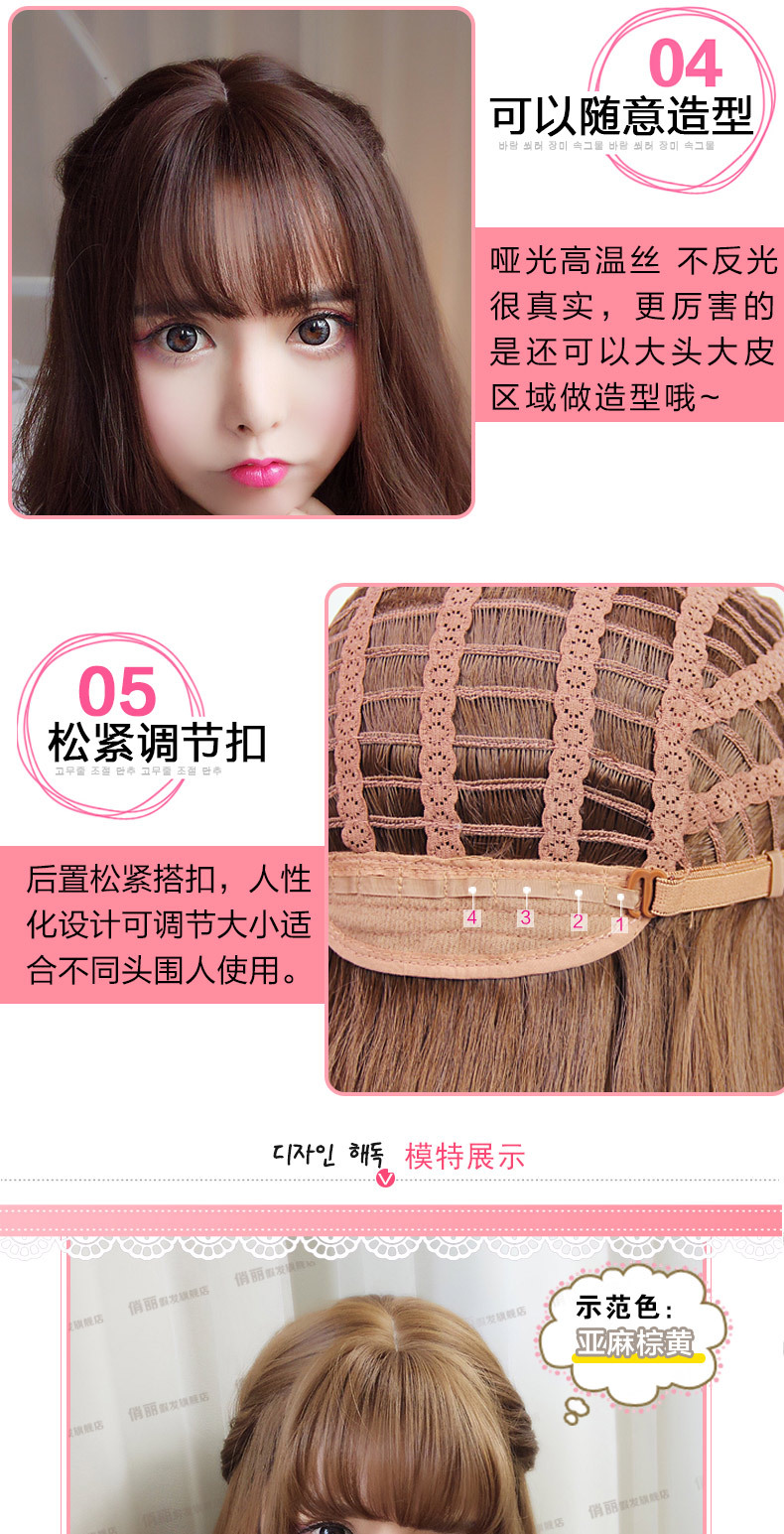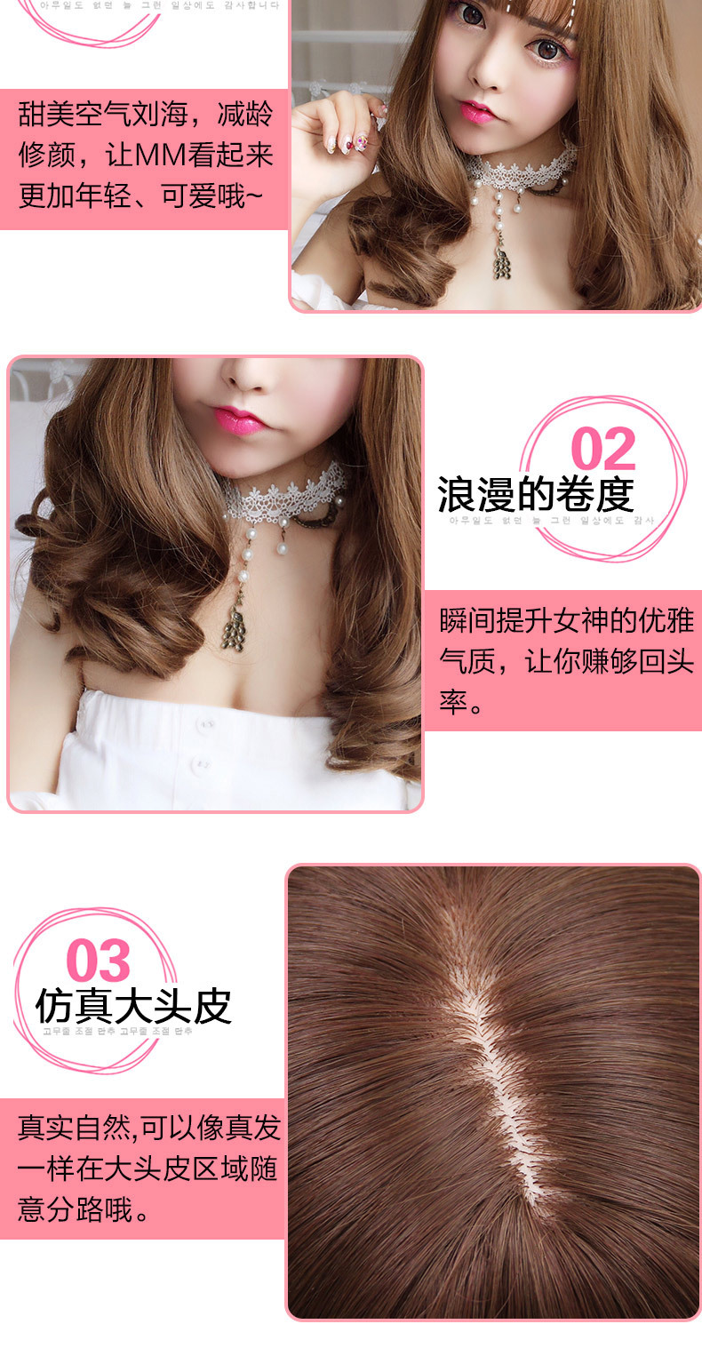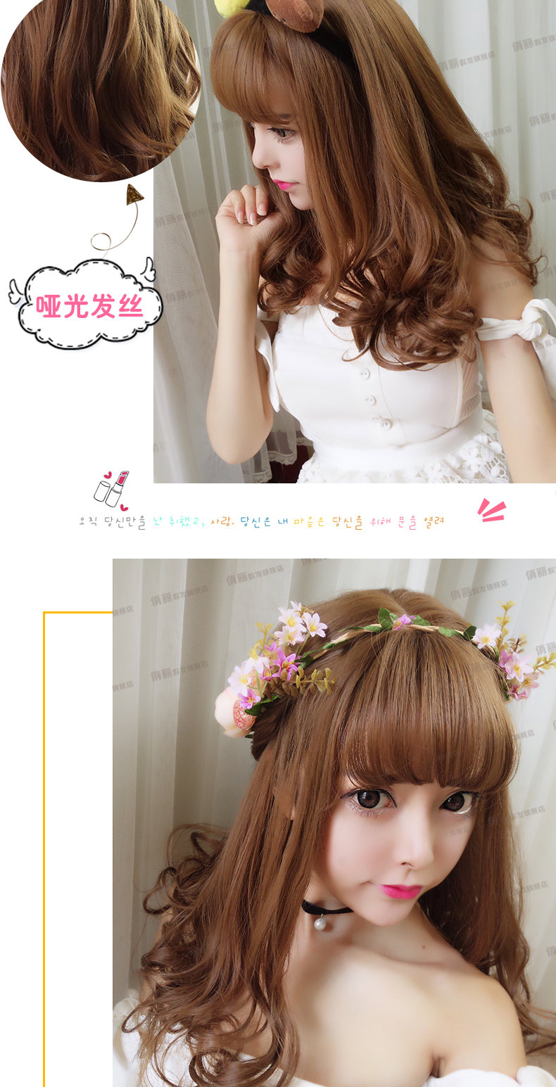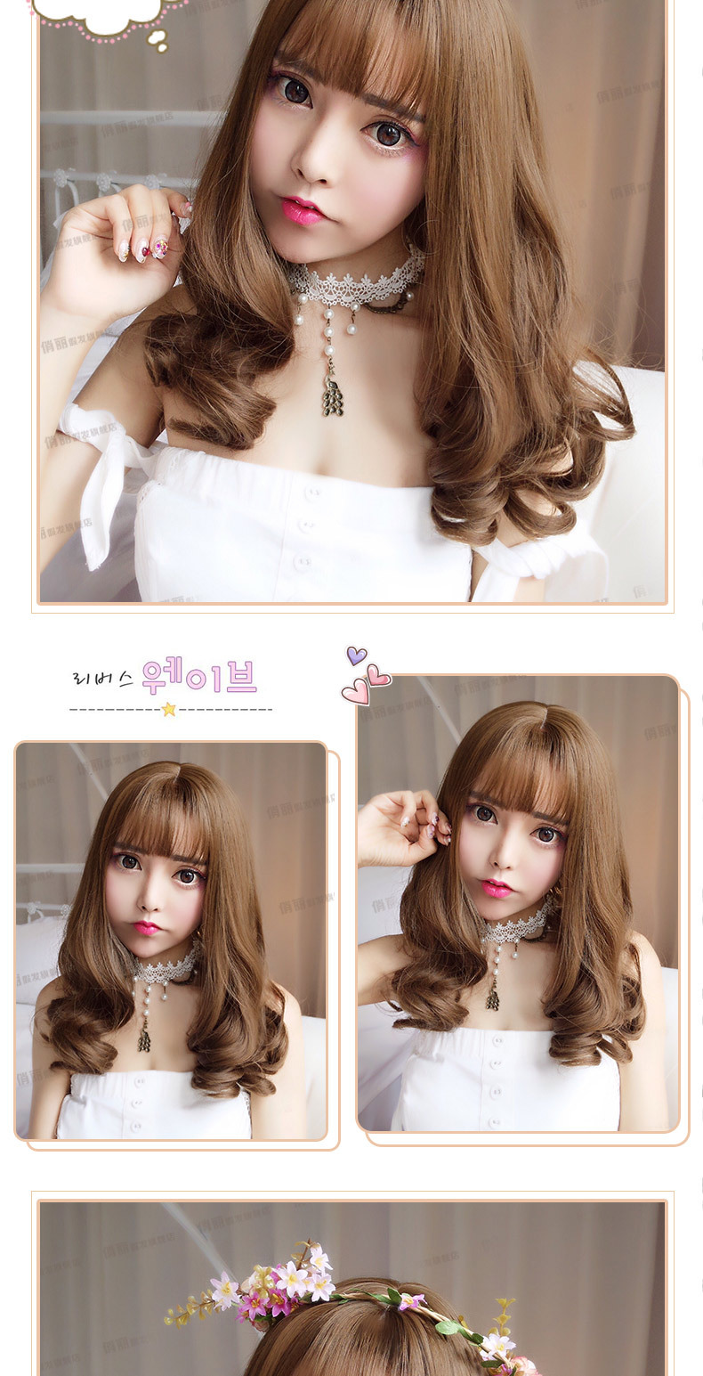 Fábrica al por mayor peluca femenina medio largo pelo rizado cara redonda aire Bangs pera flor cabeza cubierta Corea del Sur recto Bangs Pelo Rizado corto