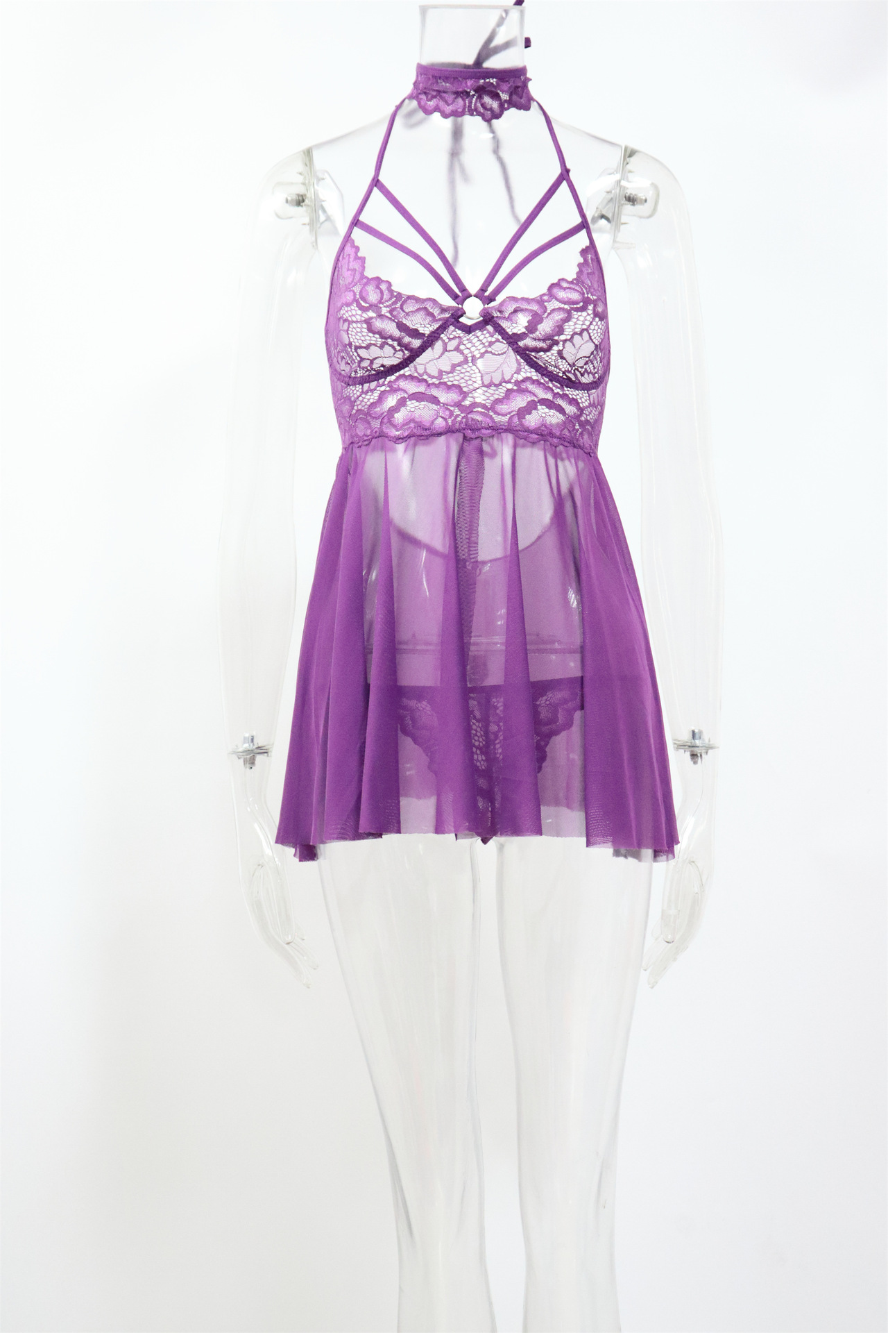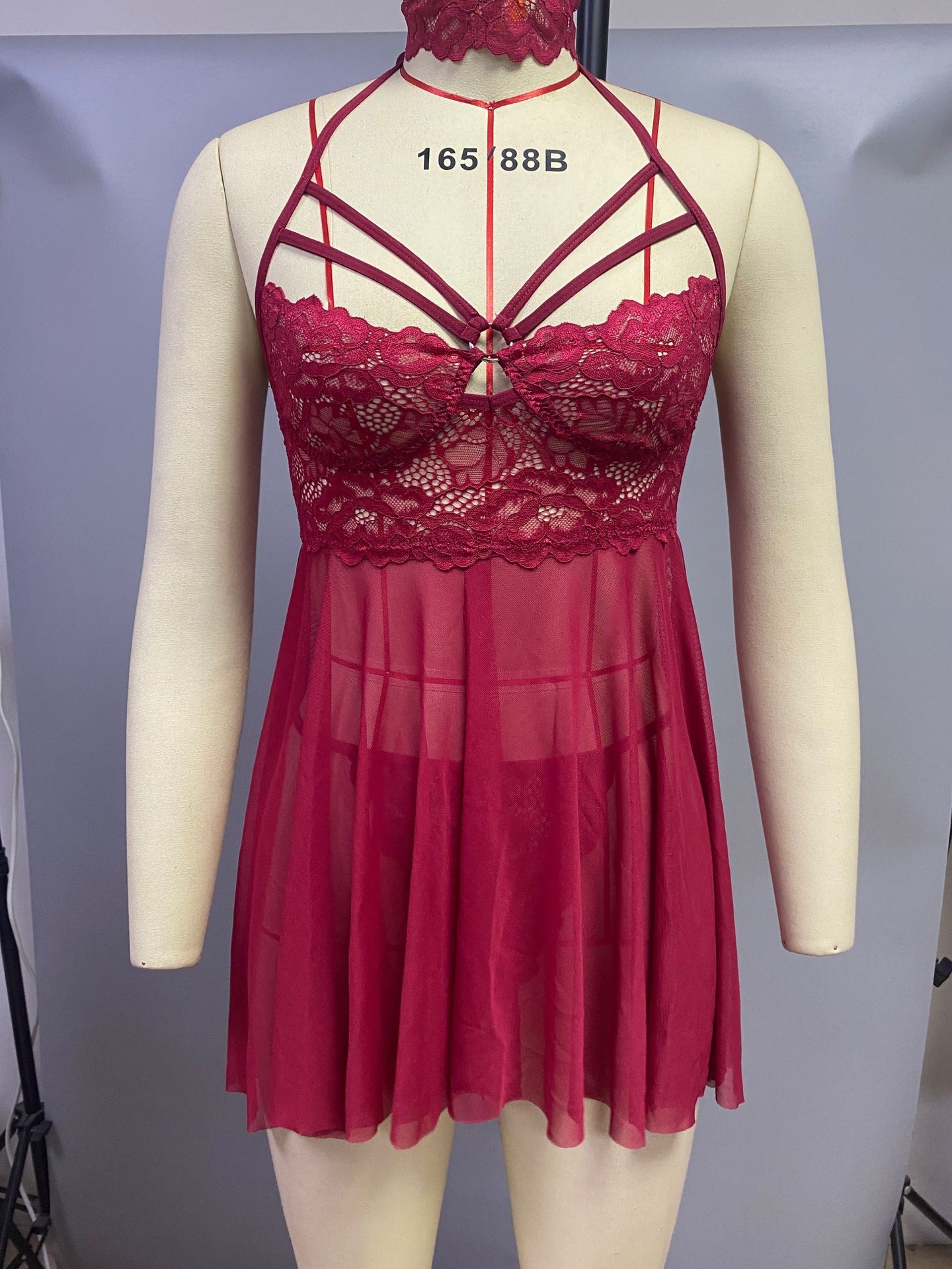 AliExpress Amazon eBay sexy Lencería Cruz correa sin respaldo ver a través de frente abierto sexy pijama chemise
