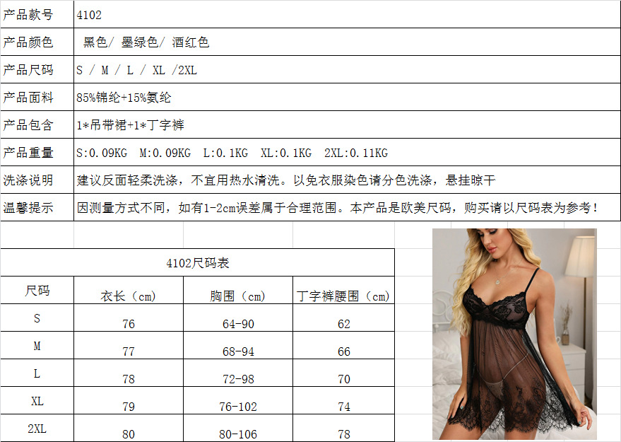 Transfronterizo de Amazon europeo y americano sexy lencería sexy con cuello en V perspectiva encaje drapeado camisón hogar desgaste al por mayor