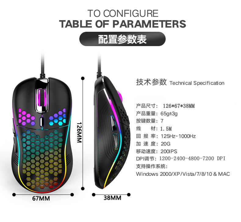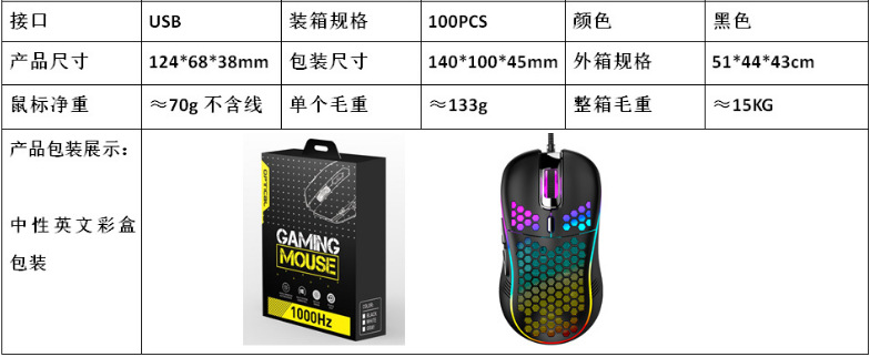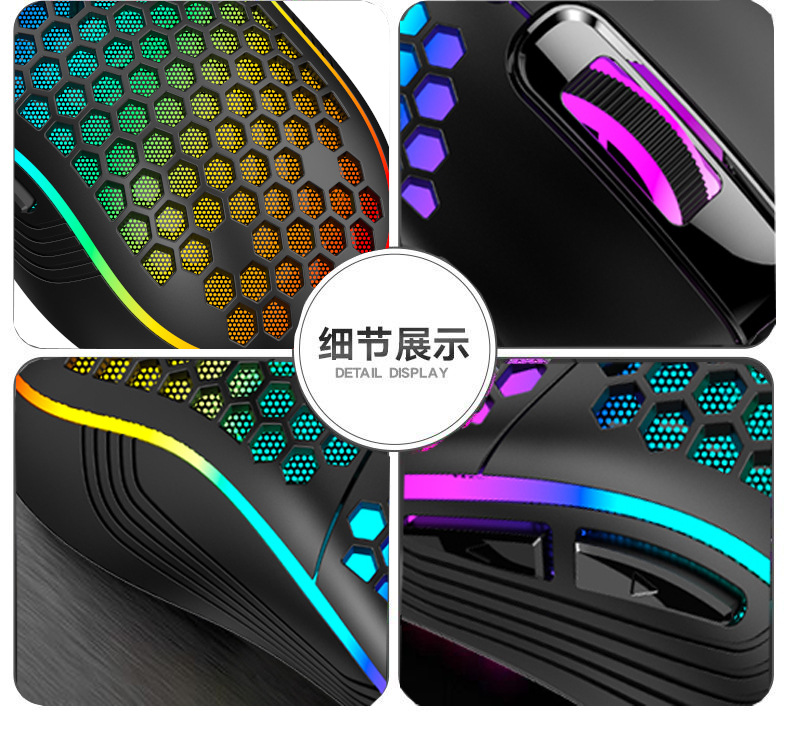 Cross-border D110 agujero ratón juego mecánico con cable luminoso hueco ligero deportes electrónicos ligero USB luminoso Amazon