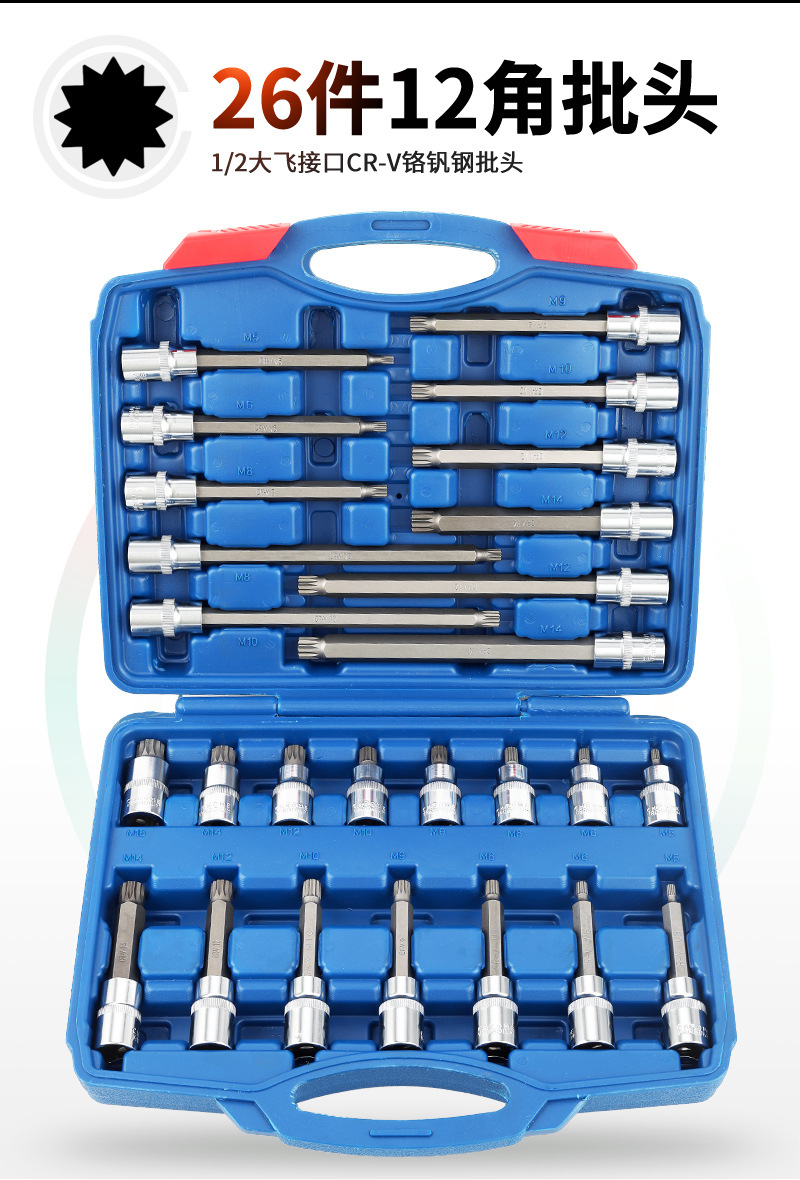 1/2 Destornillador hexagonal manga traje flor hexagonal destornillador cabeza alargada 12 ángulo de presión destornillador pullover hexagonal socket Set