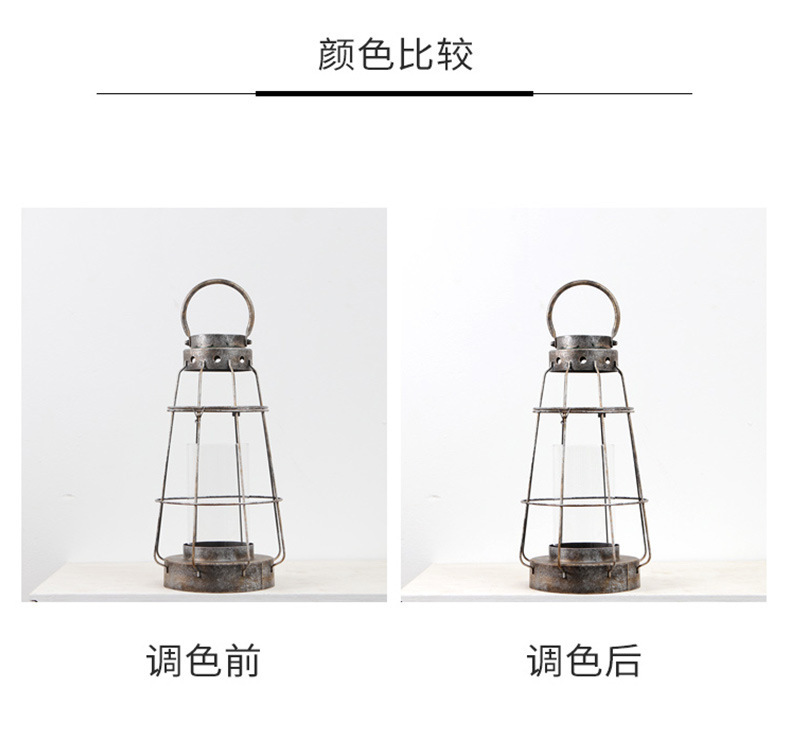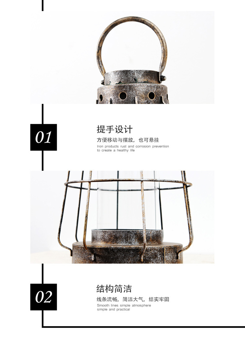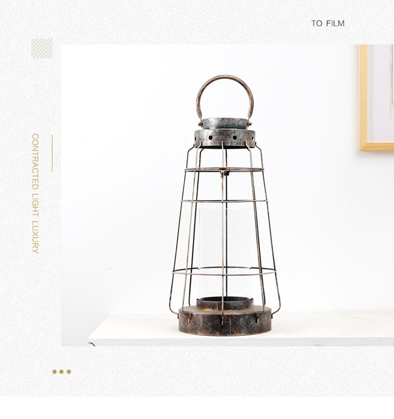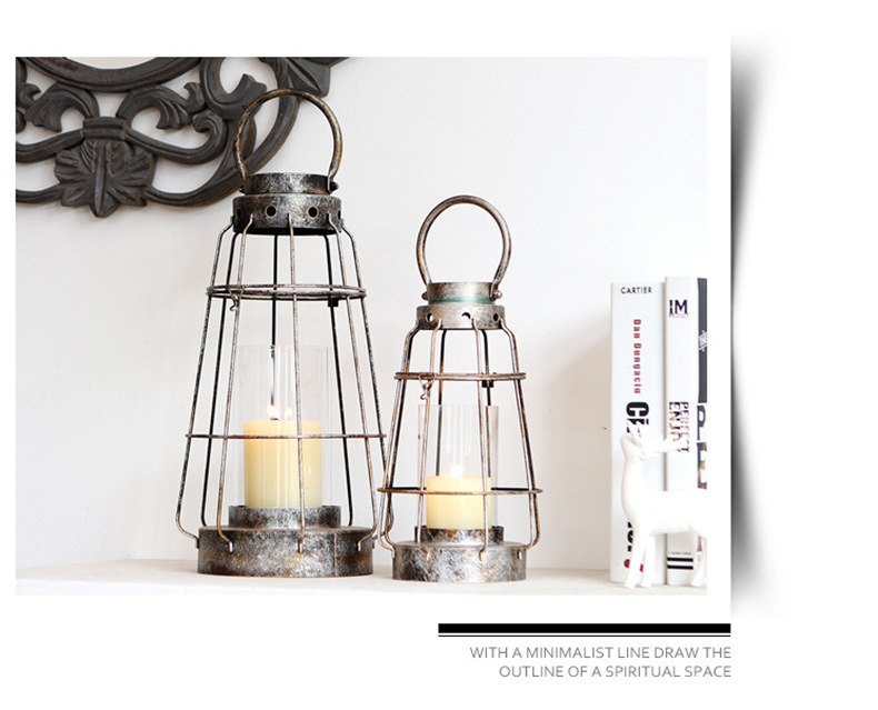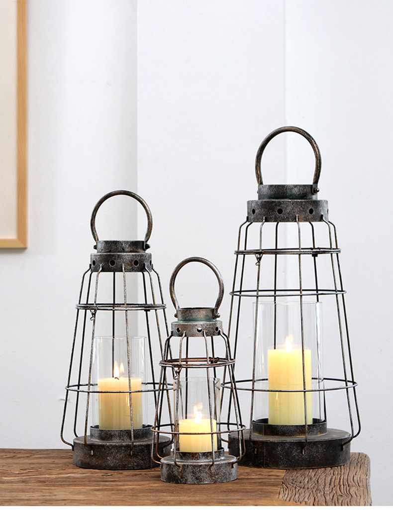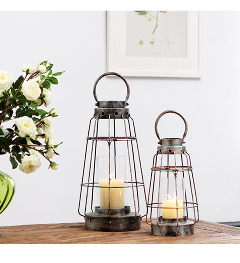 En stock al por mayor de la vendimia de hierro hueco candelabro de cristal decoración grande de vidrio recto de protección portátil candelabro lámpara de viento