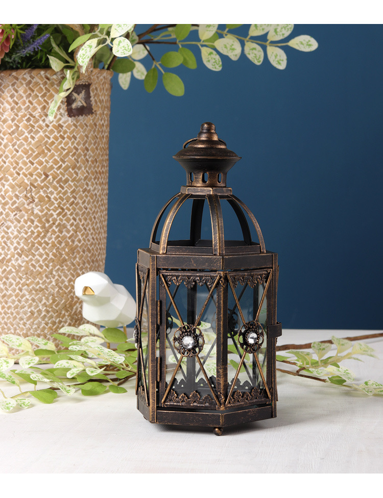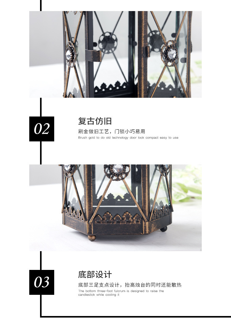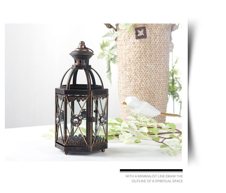 En stock al por mayor de la vendimia candelabro vidrio viento lámpara patio modelo decoración escritorio vela titular