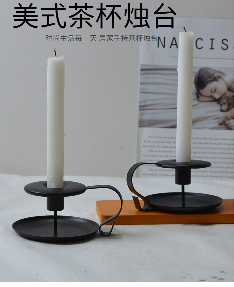Retro estilo Europeo de mano Candelabro de la boda decoración taza de té titular de la vela de hierro negro candelabro artesanías fábrica al por mayor