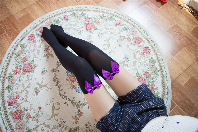 Medias de terciopelo arco tentación medias sexy de mujer Calcetines japoneses lindos sobre la rodilla al por mayor