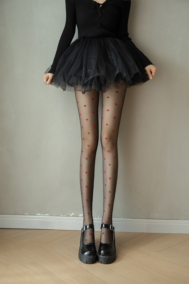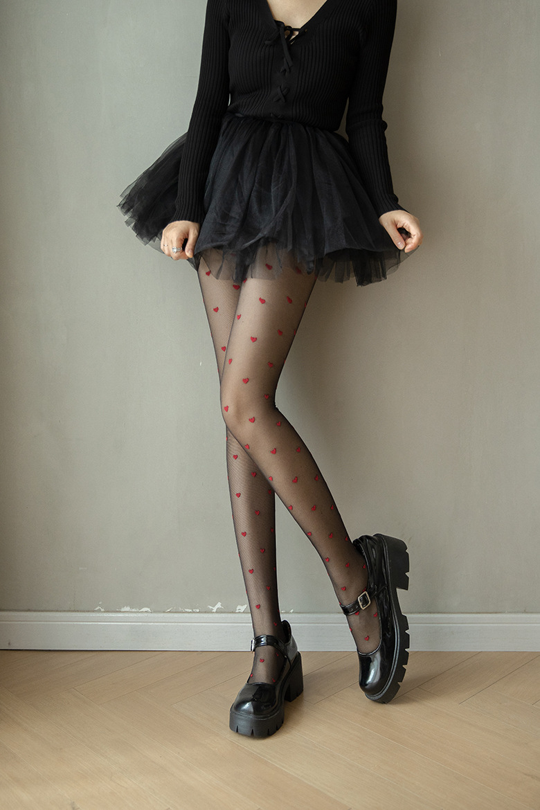 2022 Venta caliente rojo pequeño amor jacquard corazón envuelto medias sexy pierna adelgazante transparente negro pantimedias