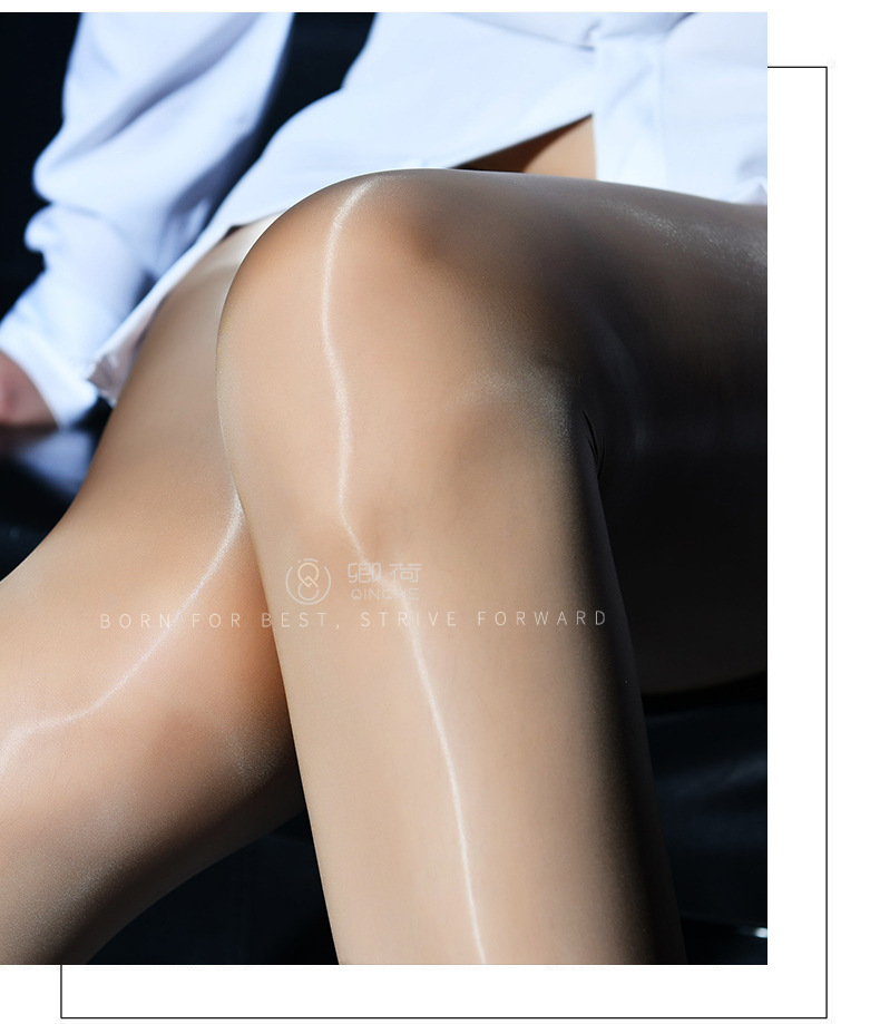 Qinghe sola entrepierna pantimedias aceitosas calcetines de aceite de caballo sexy medias pierna ligera apretada entrepierna abierta femenina negro seda