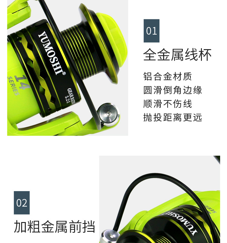 YUMOSHI rueda giratoria taza de alambre de metal rueda de pesca luya rueda de pesca de tiro largo traje de rueda de pesca mar varilla roca caña de pescar carrete