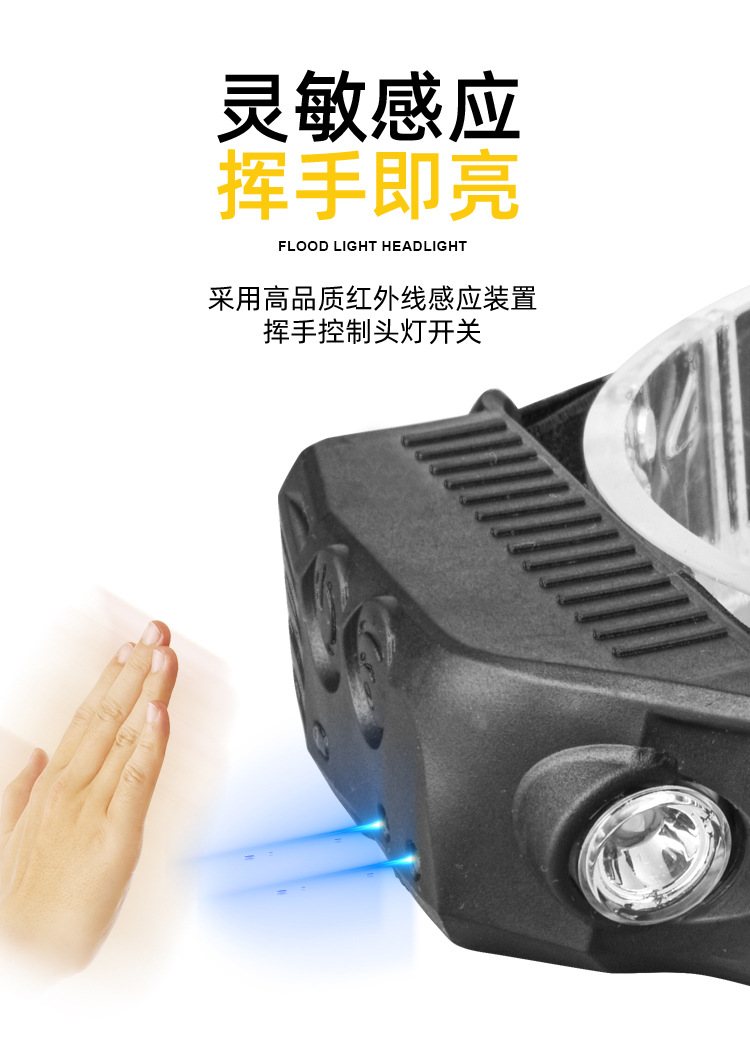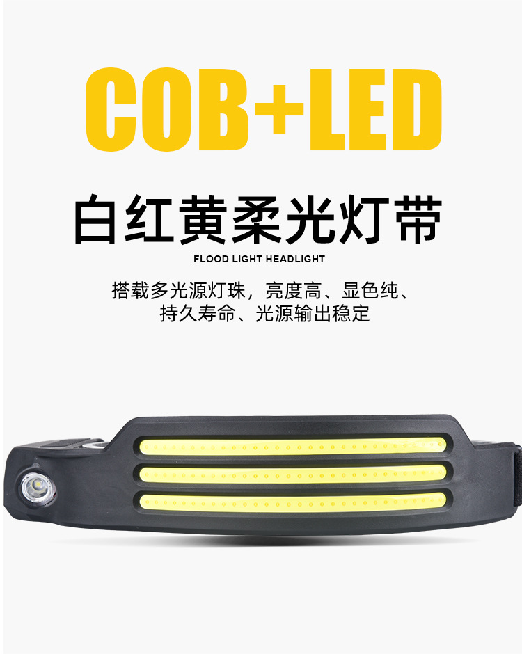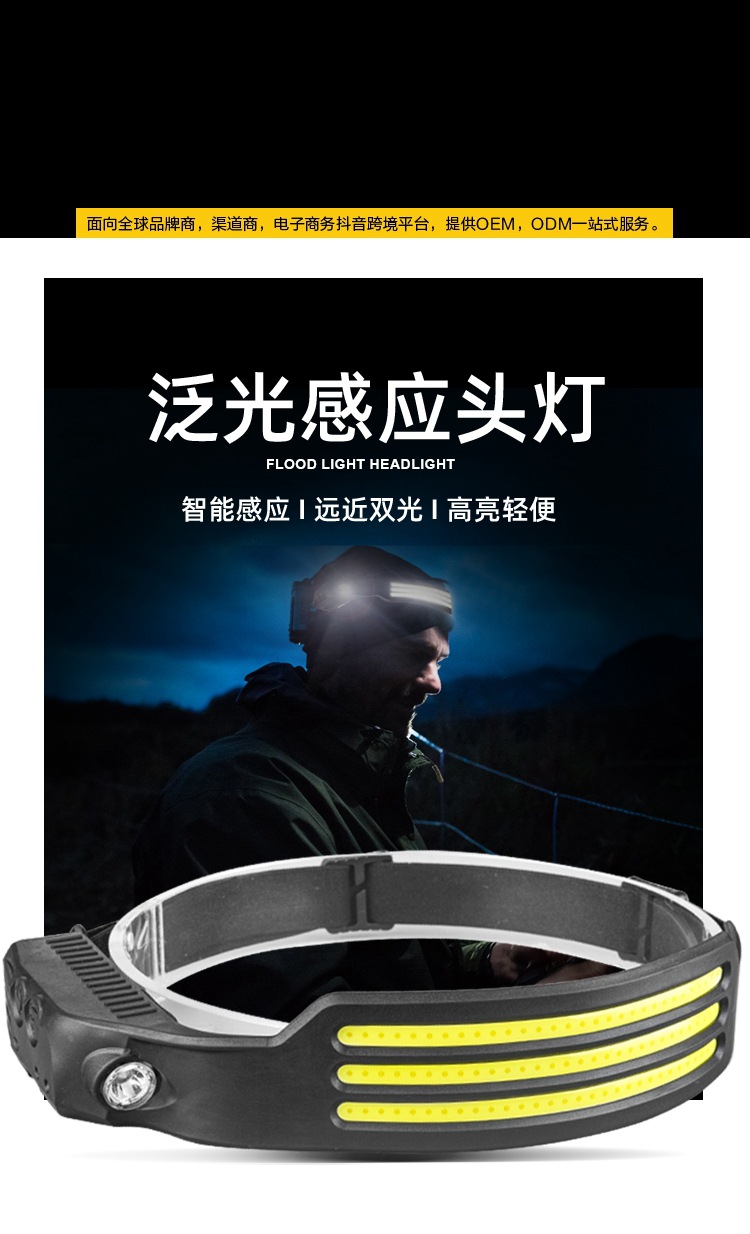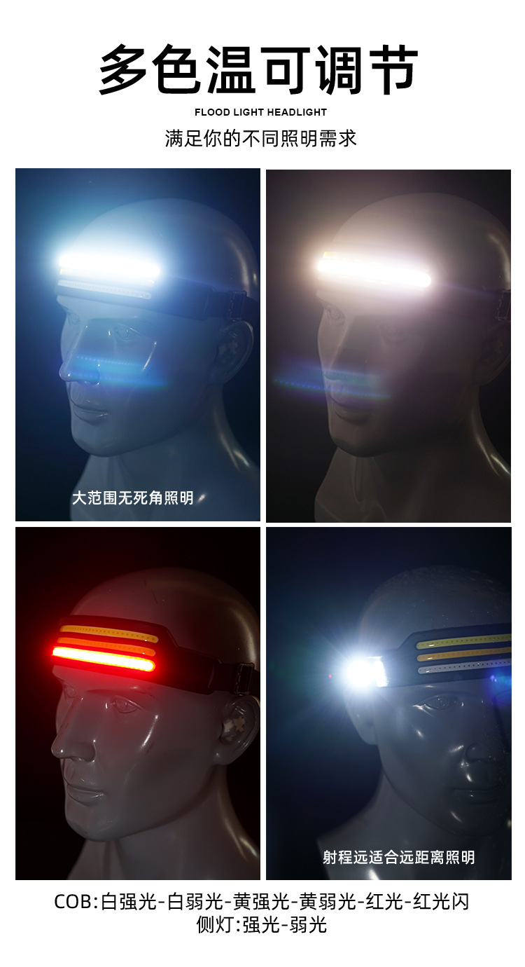 2023 onda transfronteriza inducción COB faro luz de conducción al aire libre USB carga noche luz fuerte luz Faro de silicona