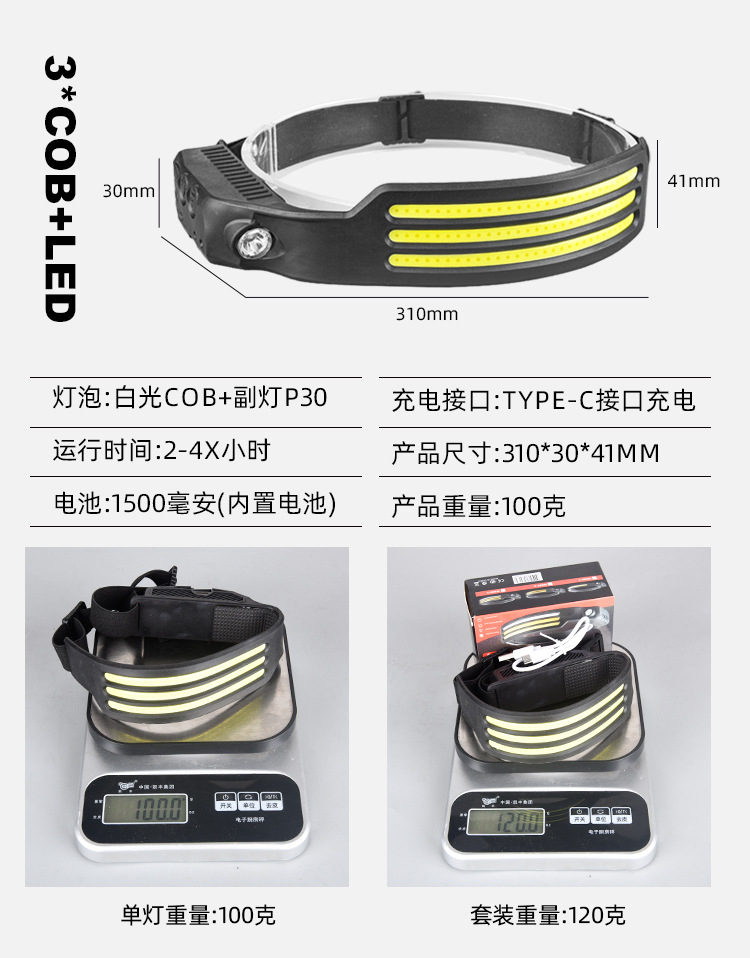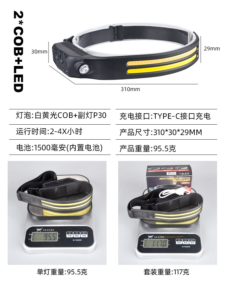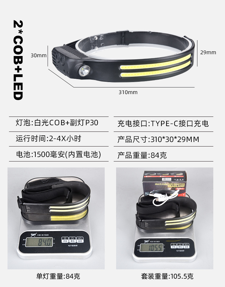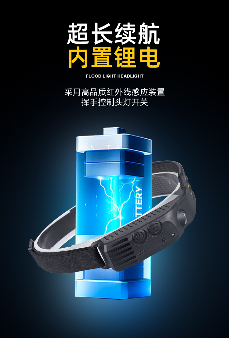 2023 onda transfronteriza inducción COB faro luz de conducción al aire libre USB carga noche luz fuerte luz Faro de silicona