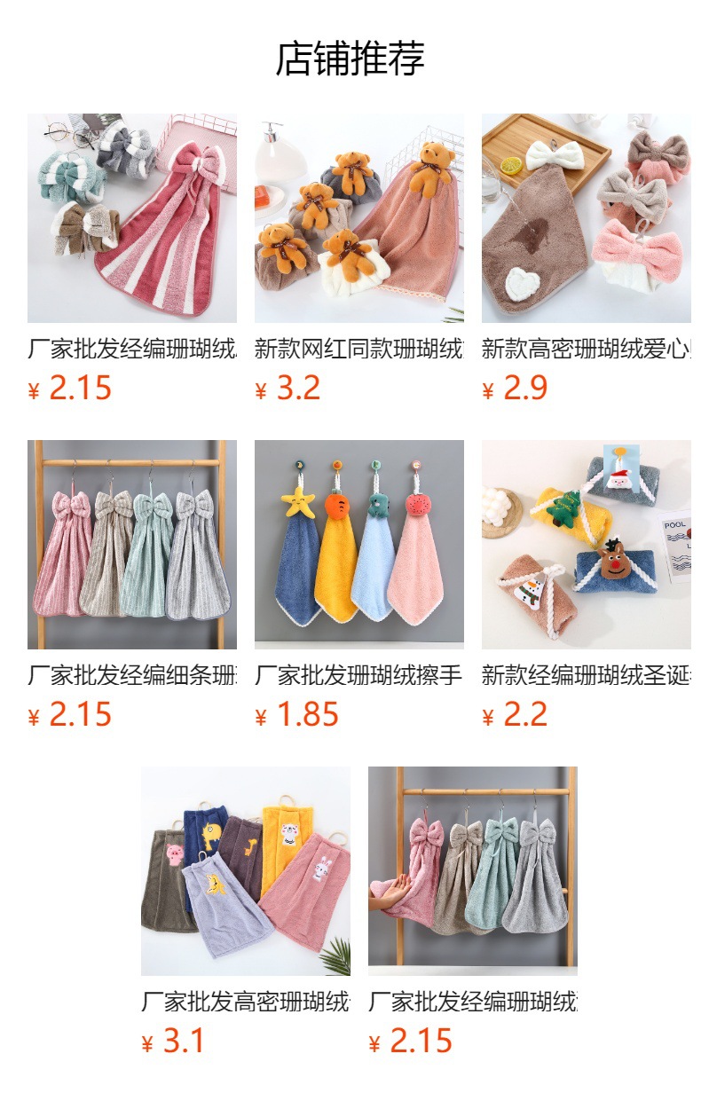 Fábrica al por mayor de alta densidad de terciopelo de coral arco lindo toalla colgante absorbente cocina baño toalla colgante