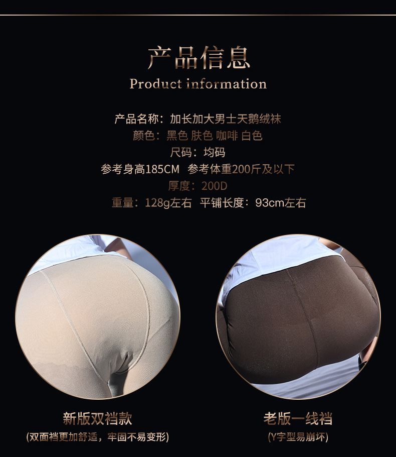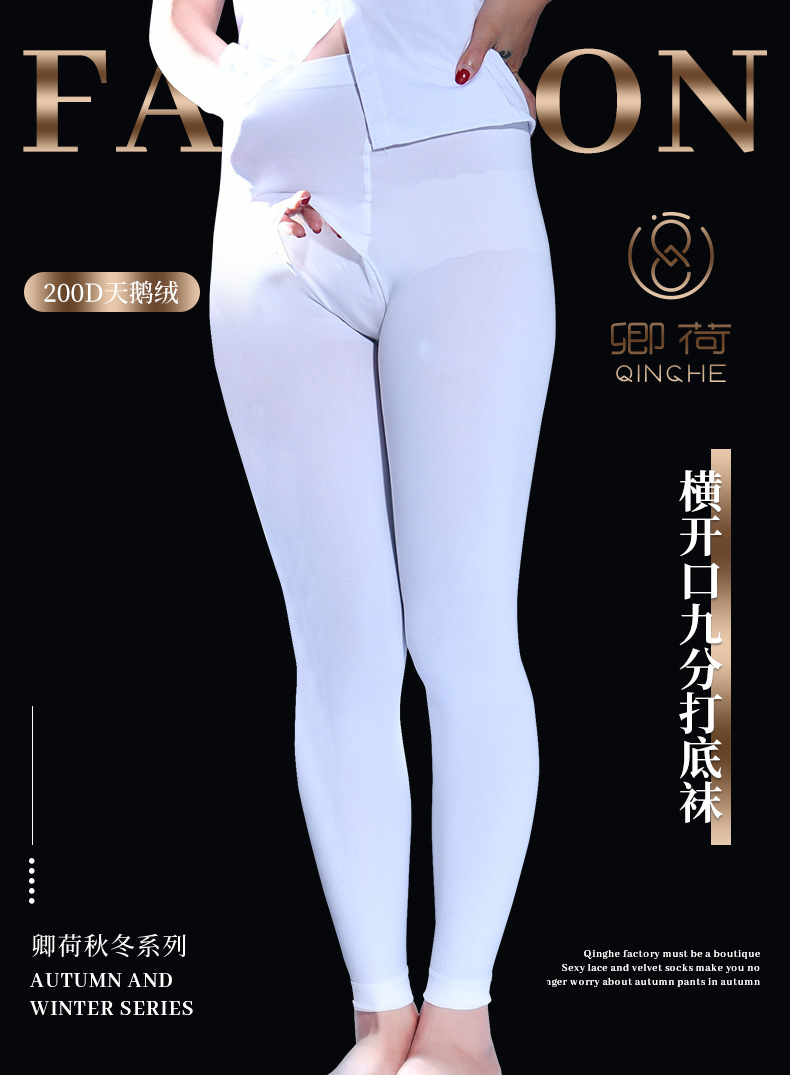 Qing He recientemente actualizado pantimedias de fondo para hombres apertura horizontal doble entrepierna más tamaño 200D terciopelo Otoño e Invierno medias japonesas
