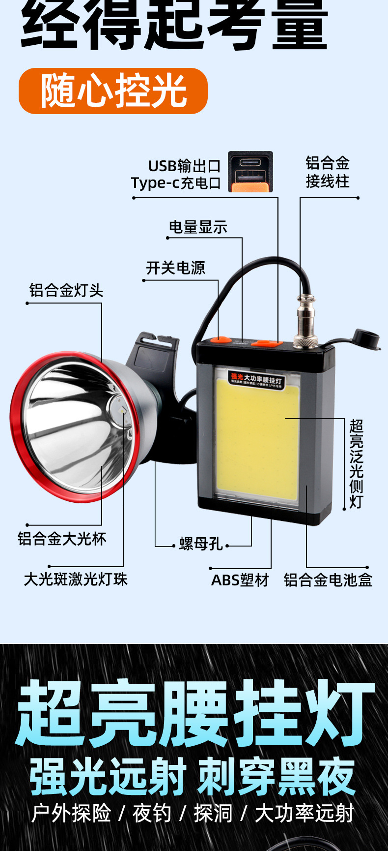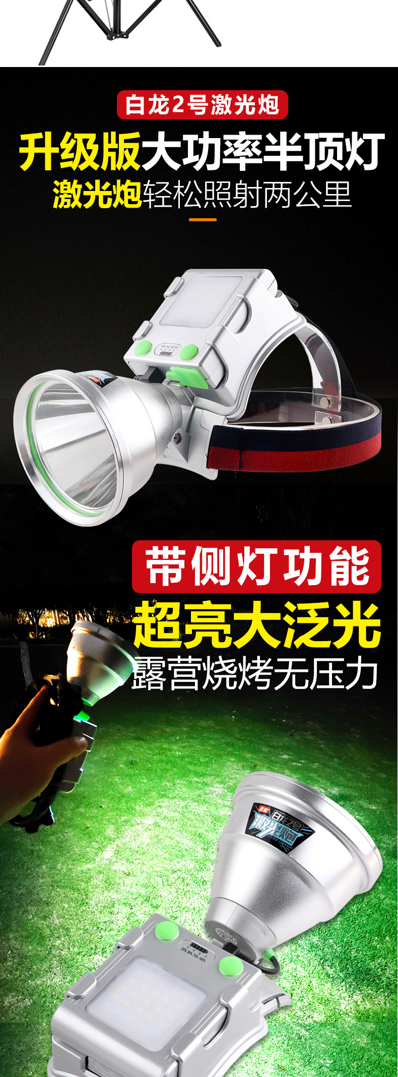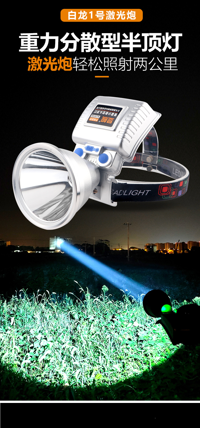Cañón láser Luz de pesca nocturna Faros de alta potencia Luz fuerte Carga al aire libre Ultra brillante Linterna de largo alcance Lámpara de minero de batería de litio