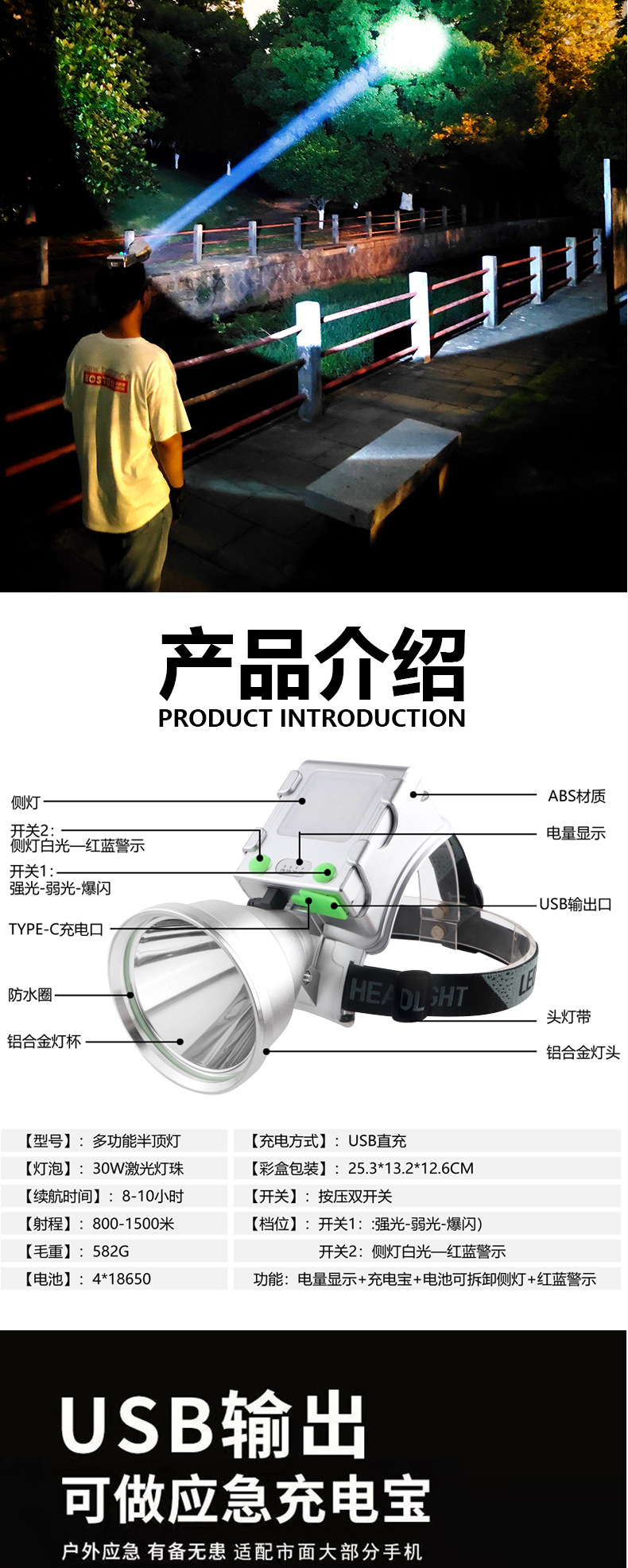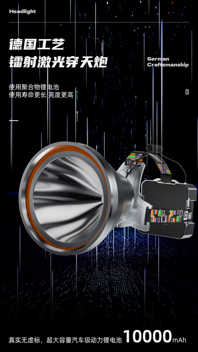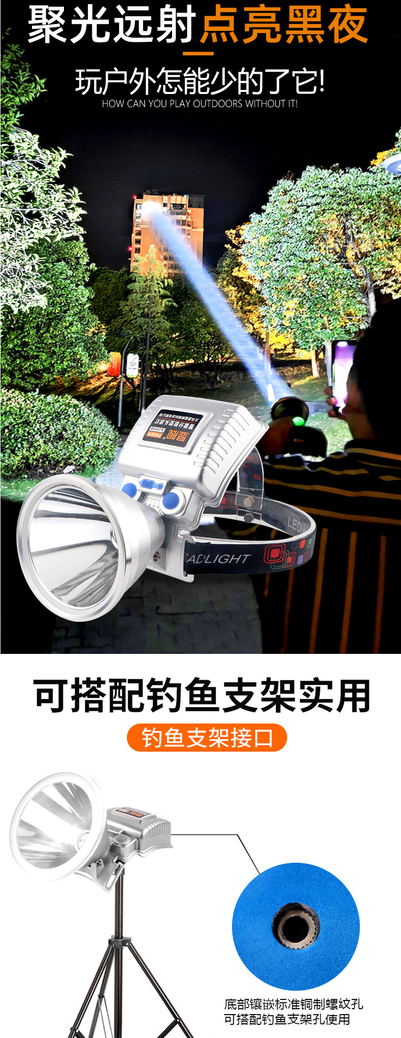 Cañón láser Luz de pesca nocturna Faros de alta potencia Luz fuerte Carga al aire libre Ultra brillante Linterna de largo alcance Lámpara de minero de batería de litio