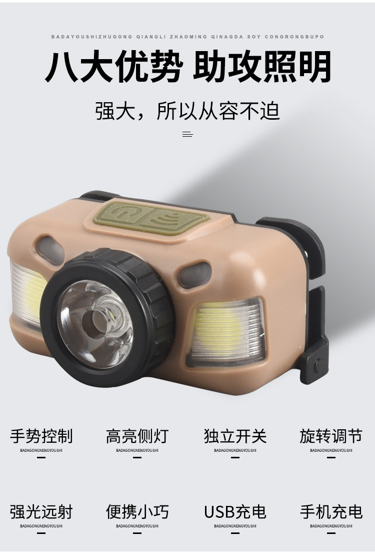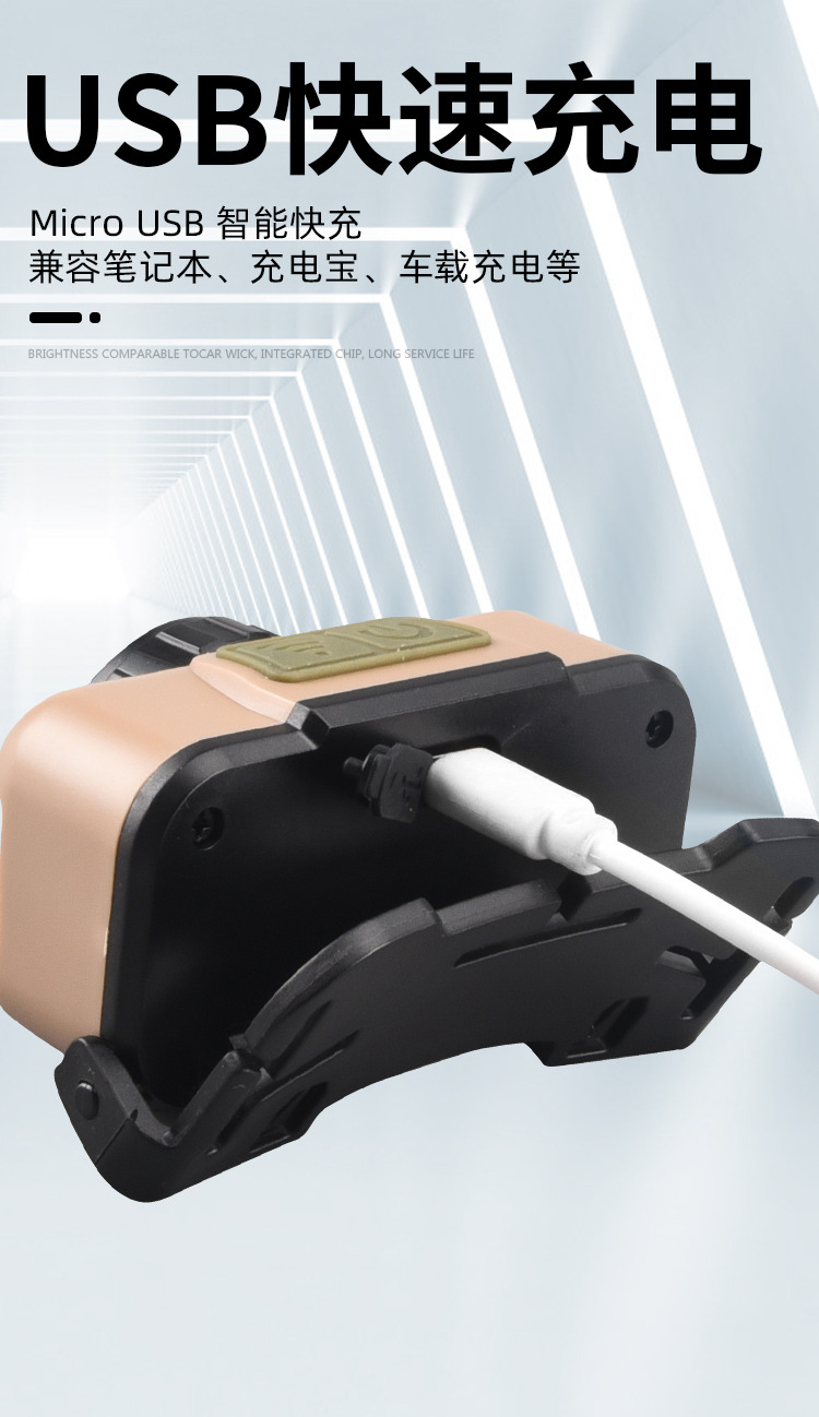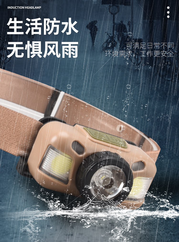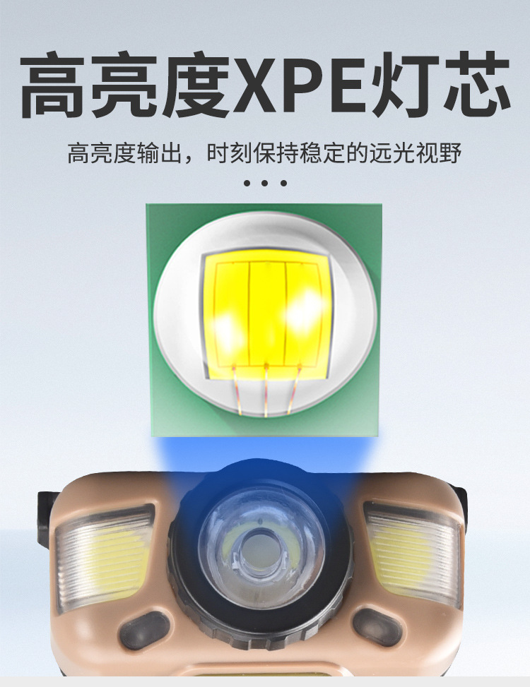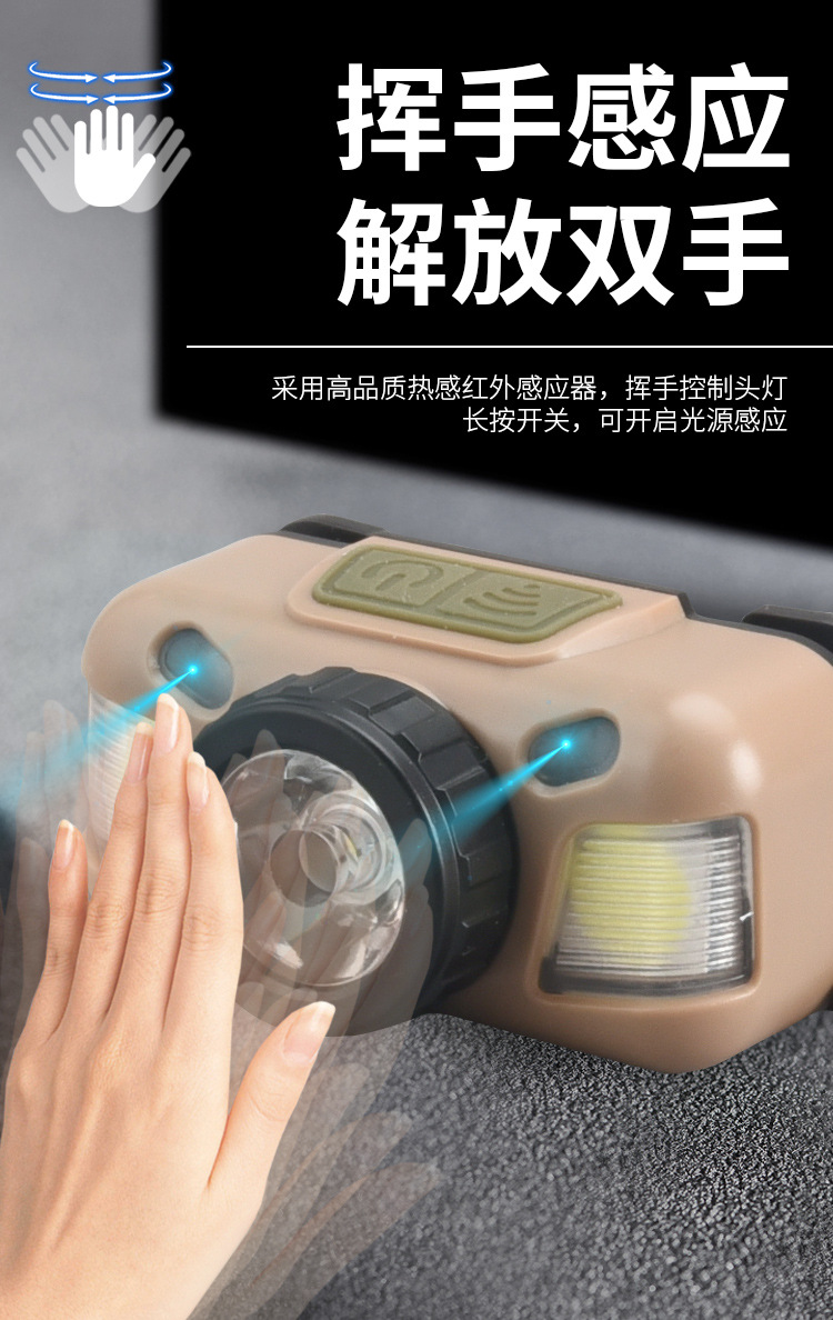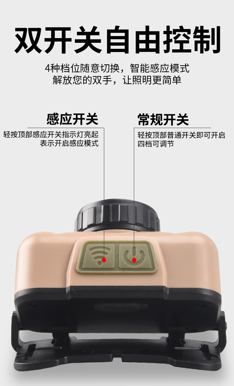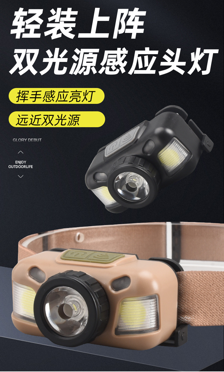 Faro de luz fuerte transfronterizo LED lámpara de pesca montada en la cabeza recargable impermeable para acampar al aire libre fuente de luz doble inducción lámpara de minero pequeño