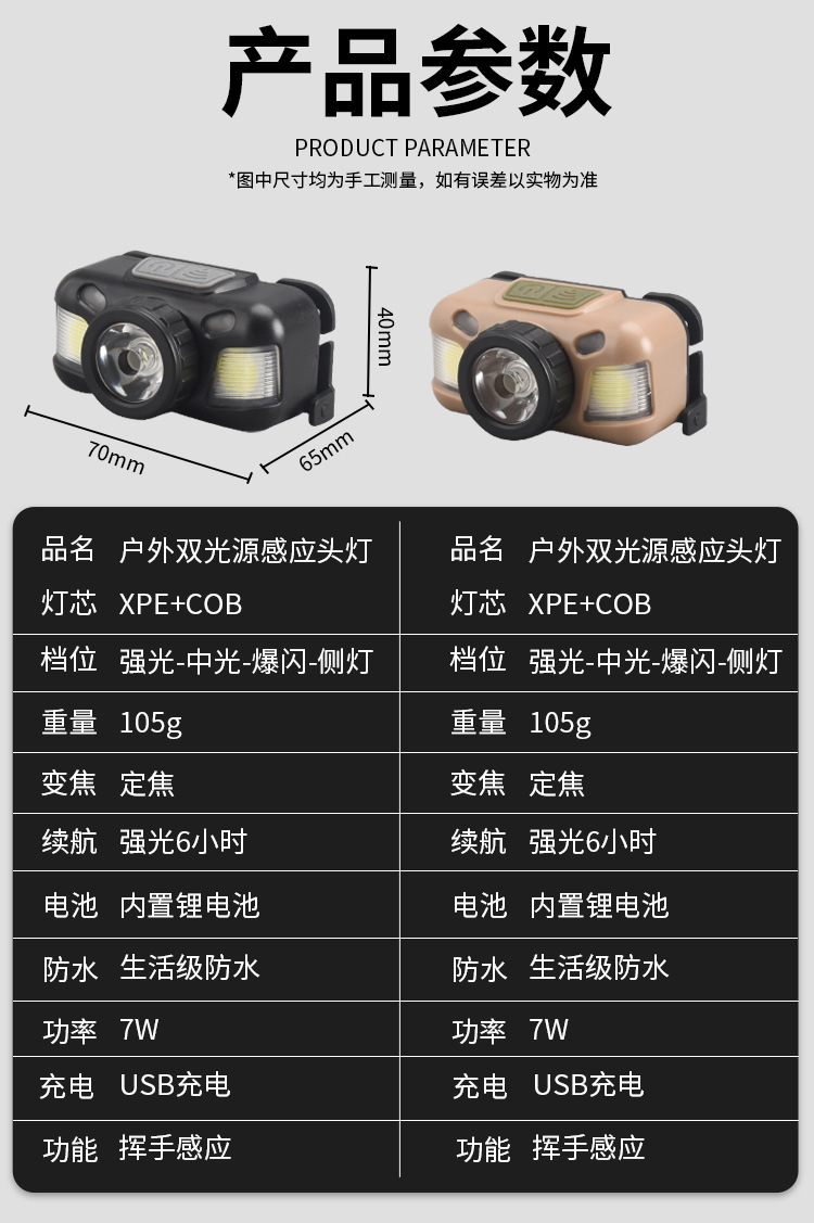 | Color | Fuente de luz dual HL-01 de Brown XPE + COB/foco fijo 7W,HL-01 negro XPE + COB fuente de luz dual/foco fijo 7W |