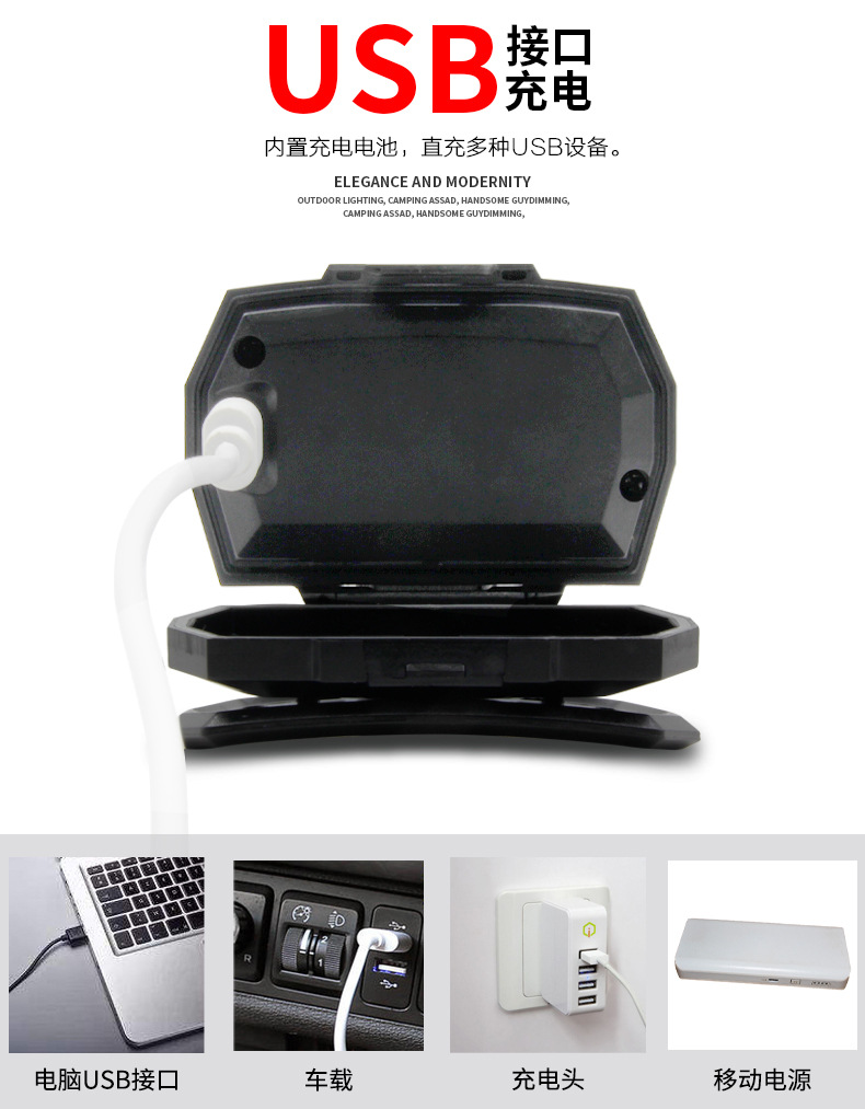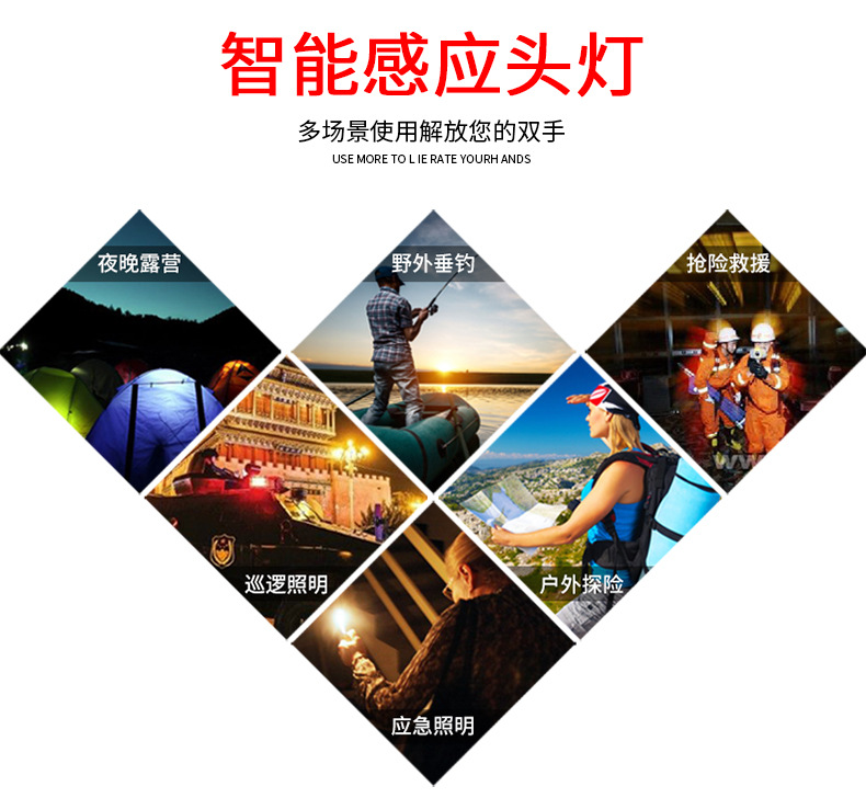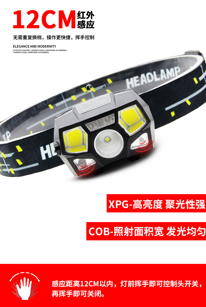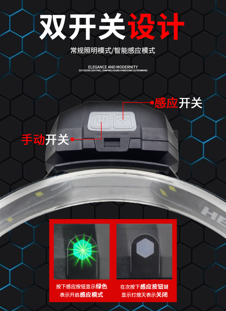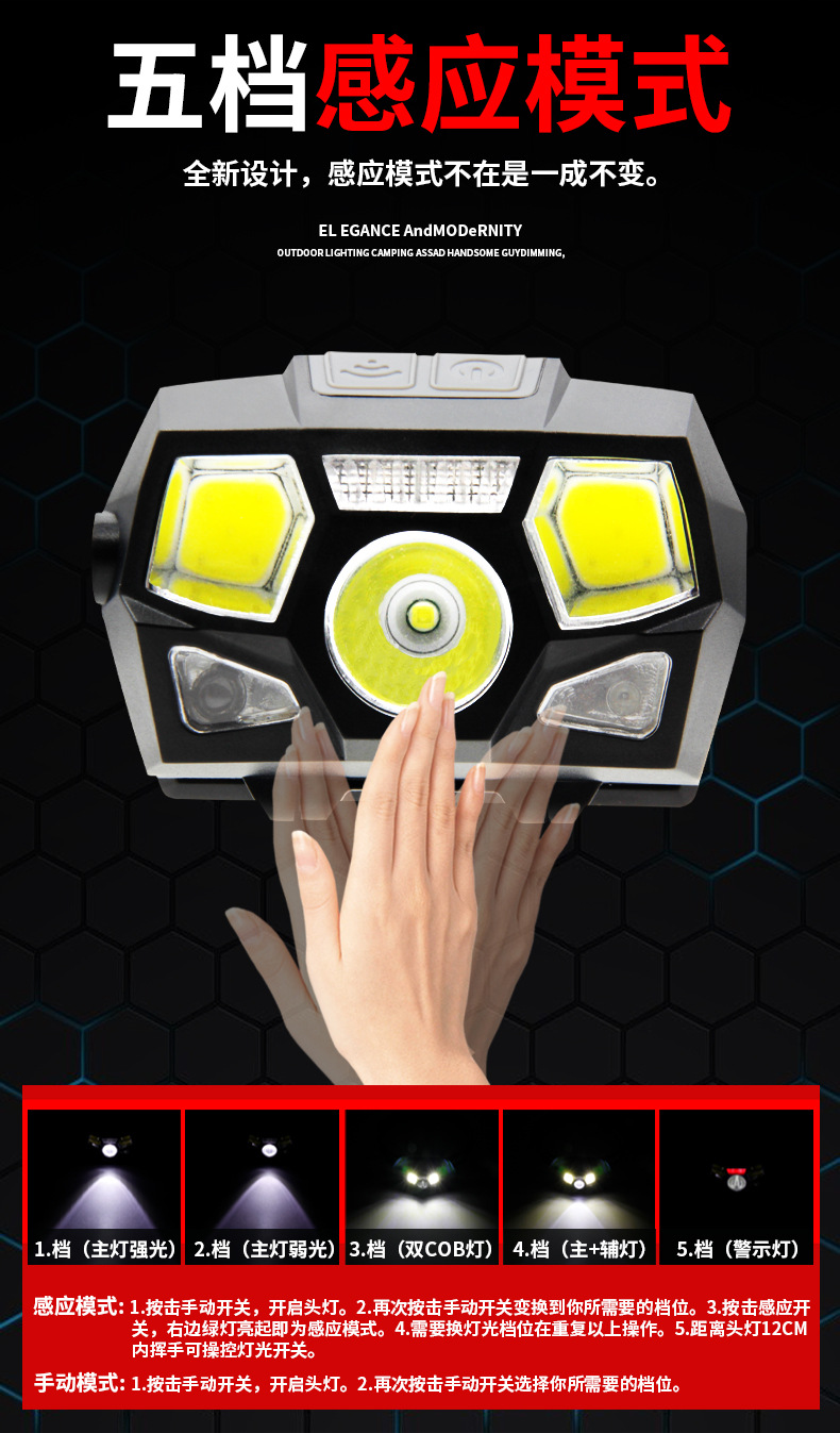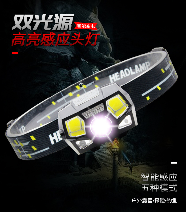 Nuevo USB recargable fuerte luz LED impermeable inducción faro automático inducción carga lámpara de pesca
