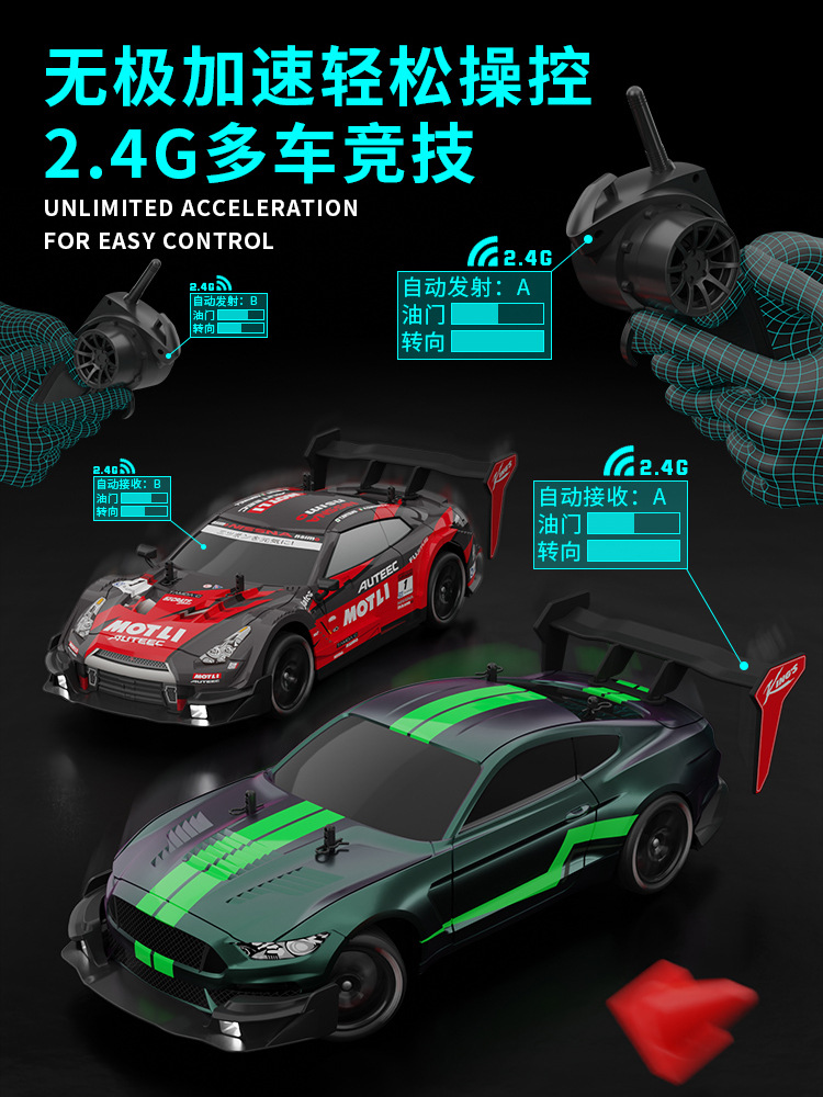 Coche de Carreras de Alta Velocidad con Control Remoto X, Tracción en las Cuatro Ruedas, Derrape, Recargable, Eléctrico, Modelo de Coche de Carreras 2.4g, Juguete para Niños, GTR