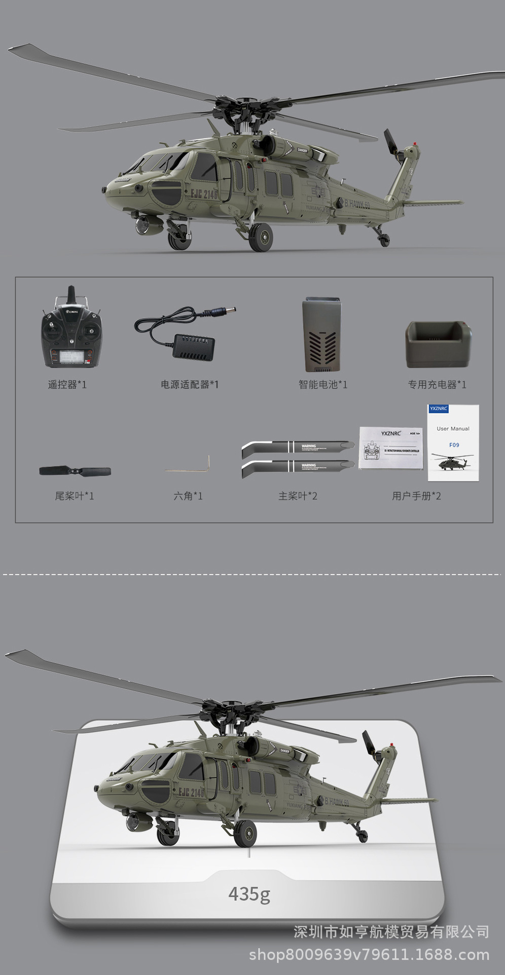 Yuxiang F09 Negro Águila UH60 de seis canales 3D truco de control remoto armado modelo de helicóptero no tripulado simulación de aviones de combate