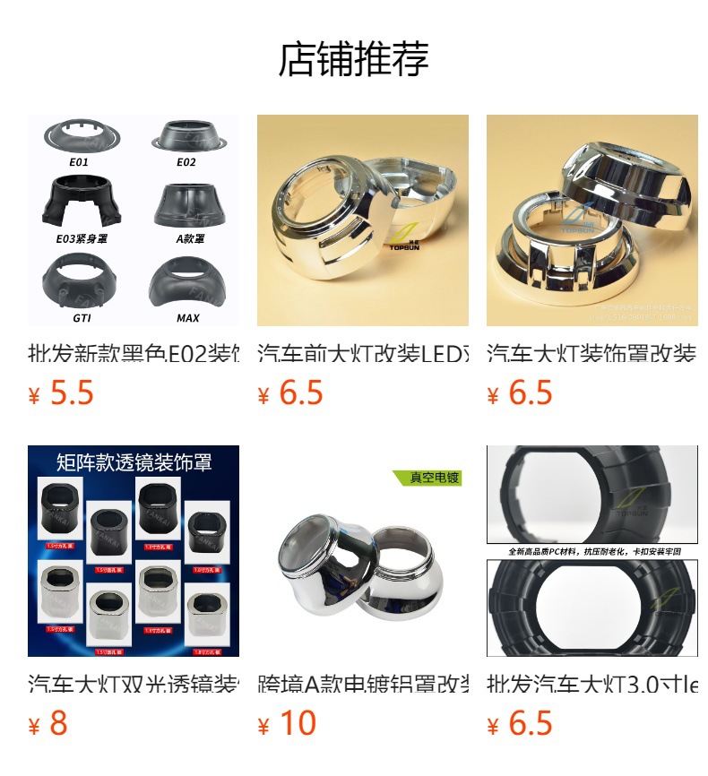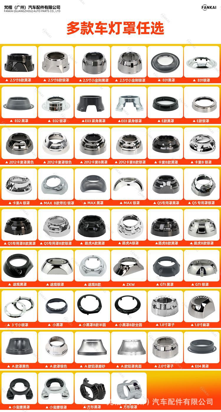 Venta al por mayor nuevo negro E02 cubierta decorativa coche faro modificado 3.0-pulgadas Q5 mar 5LED faro lente capucha