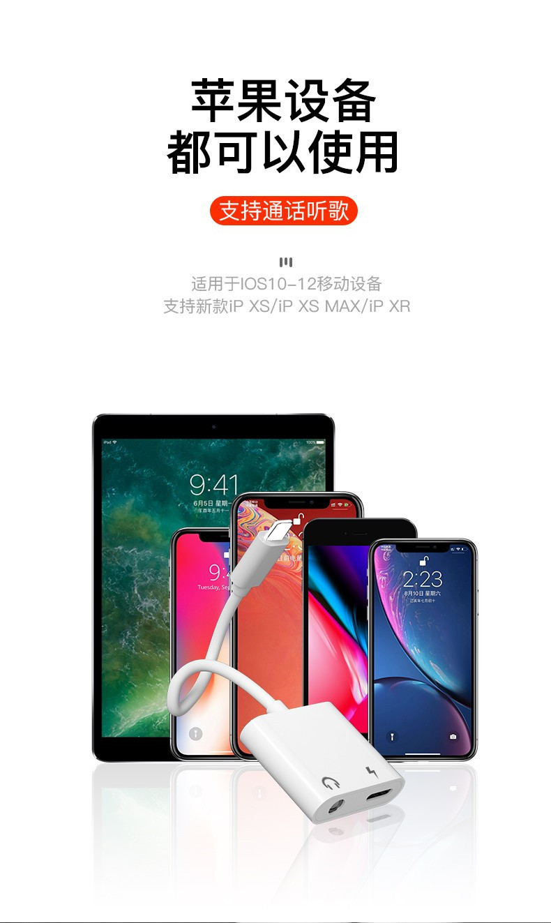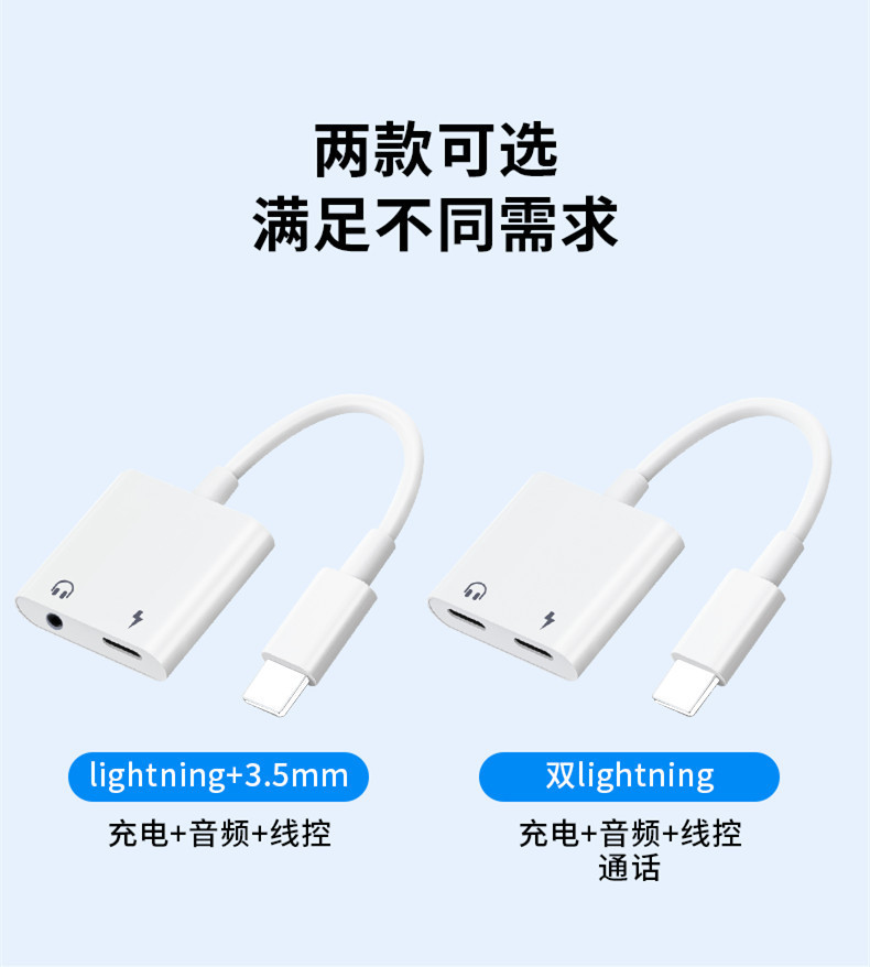 Aplicable al adaptador de auriculares Apple dos en uno convertidor de carga de iluminación al adaptador de audio de 3,5mm