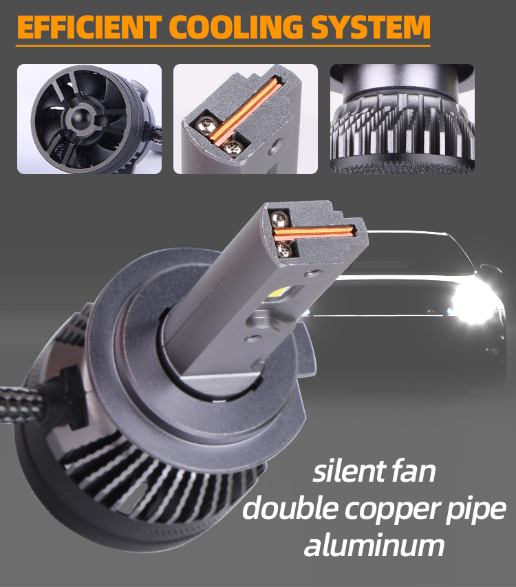 Bombilla LED T50 para faros delanteros de coche, H7 súper brillante, tubo de cobre dual, H11 modificado, luz blanca de 6000K, luz de coche integrada de haz alto y bajo H4