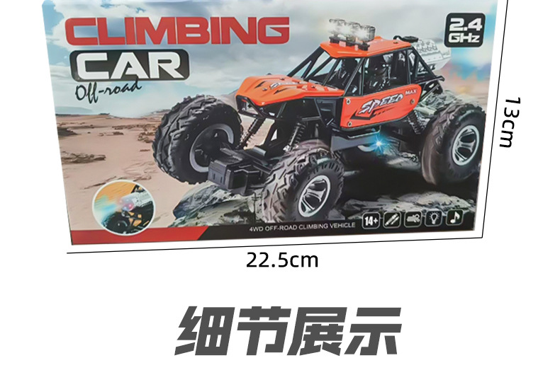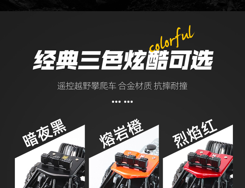 | Colores | Coche de escalada de aleación ordinaria (naranja),Camión de escalada de aleación en aerosol (naranja),Coche de escalada de aleación ordinaria (negro),Camión de escalada de aleación en aerosol (negro),Coche de escalada de aleación ordinario (rojo),Camión de escalada de aleación en aerosol (rojo),Coche de escalada con absorción de impactos (rojo),Coche de escalada con absorción de impactos (azul),Coche de escalada con absorción de impactos (verde) |