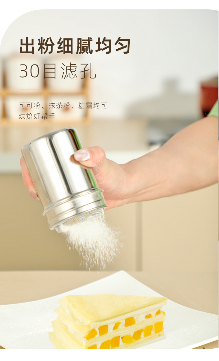 304 polvo de azúcar de acero inoxidable tamiz Matcha polvo de cacao polvo de café puede harina tamiz cocina pastel hornear herramienta