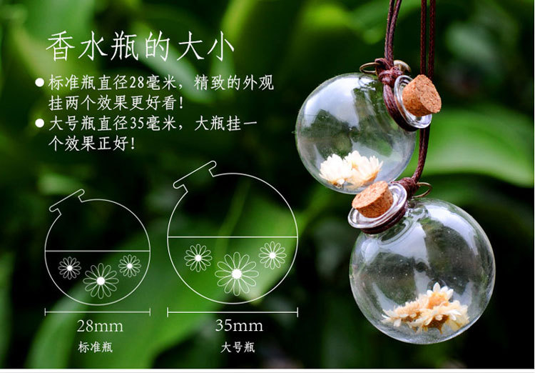 Creativo montado en el automóvil Eternal Flower botella de perfume botella vacía perfume colgante artístico fresco flor seca colgando botella decorativa